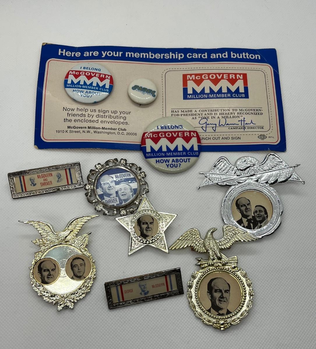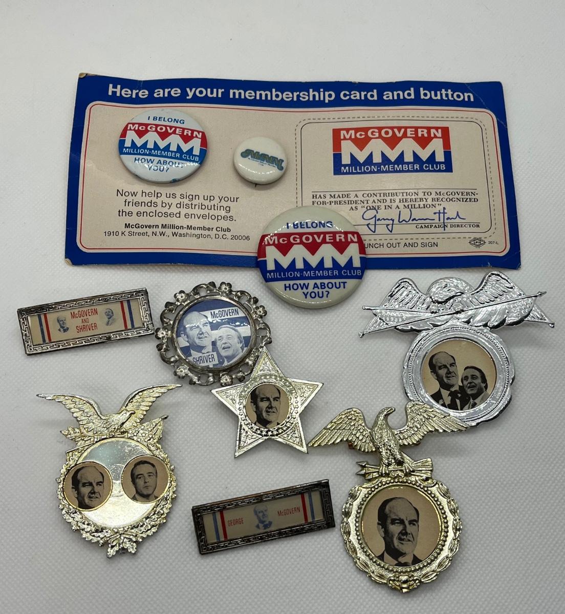 LOT 1: George McGovern Presidential Race 1972 Political Pins, Badges