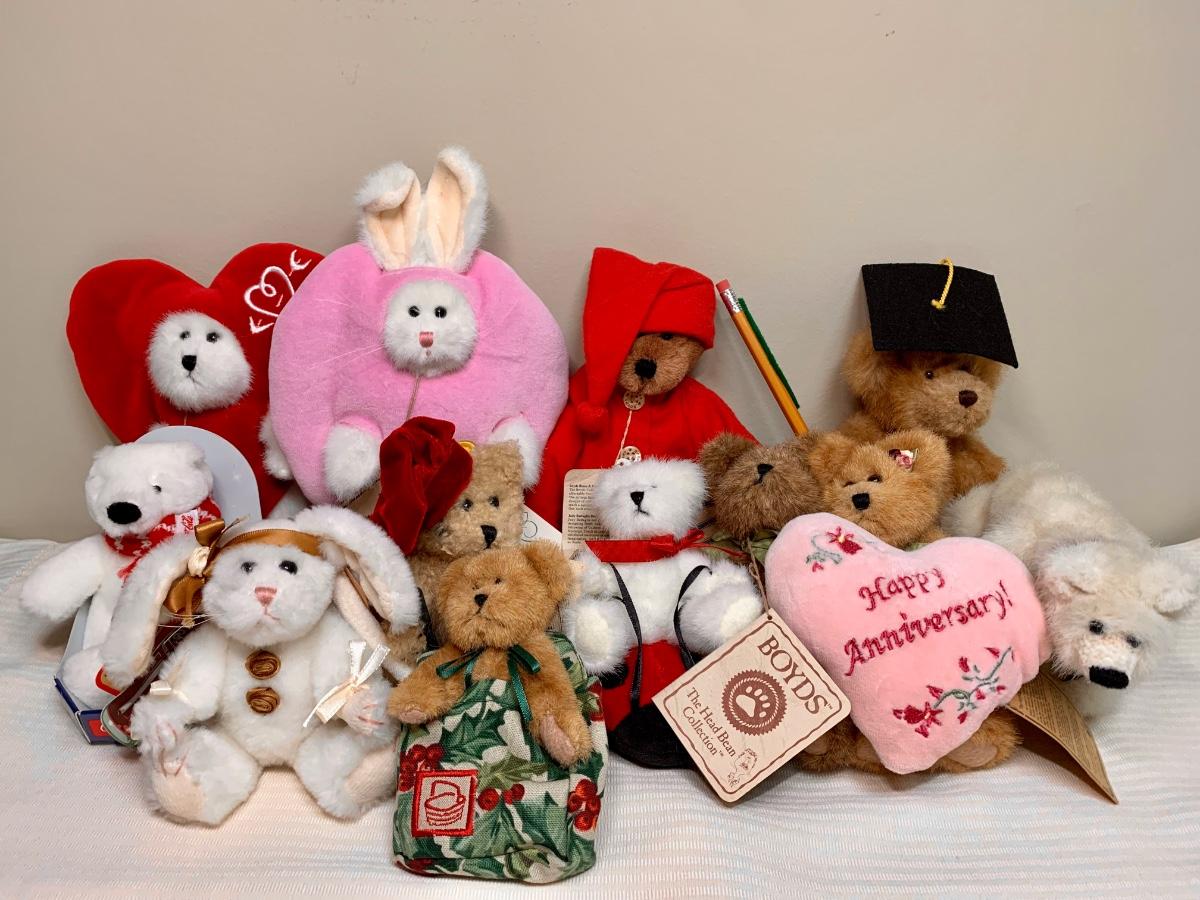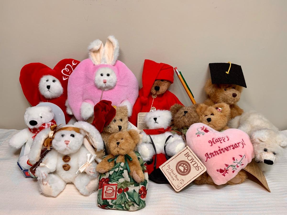 Nice lot of pre-owned Boyd's plush animals. Please see all pictures as they are the best representation of the items. The pictures show condition, measurements if taken, and what is included in the lot. Due to the large amount that we photograph and the time frame, we are not always able to take measurements. All items unless noted, are pre-owned and have been used. If you purchased furniture, you must bring help. We do not allow one person to carry large furniture out on their own. Bring help, tools and a truck for the safety of our client’s homes, and your personal safety. Any damages that result to the property including walls, and floors due to moving of the furniture will be charged to the buyer. Company policy. Thank you.