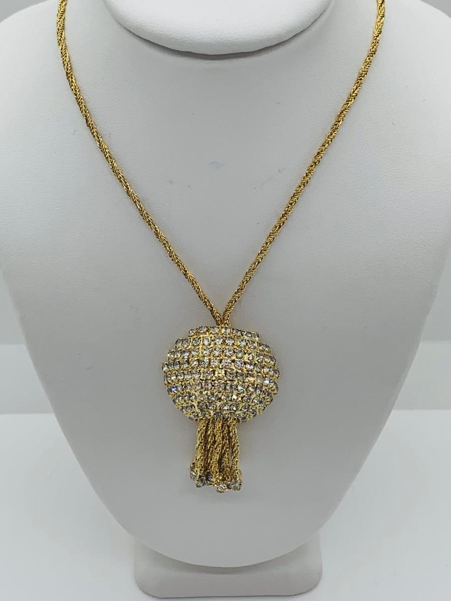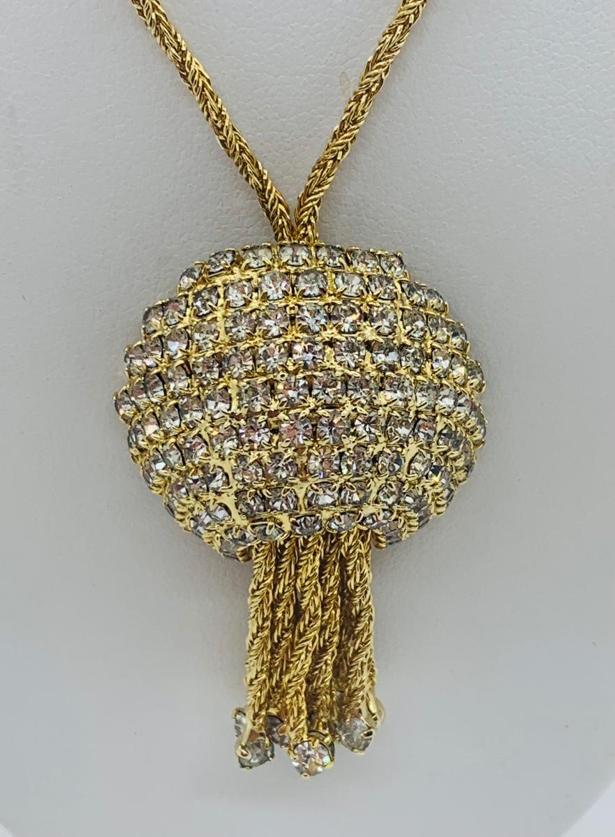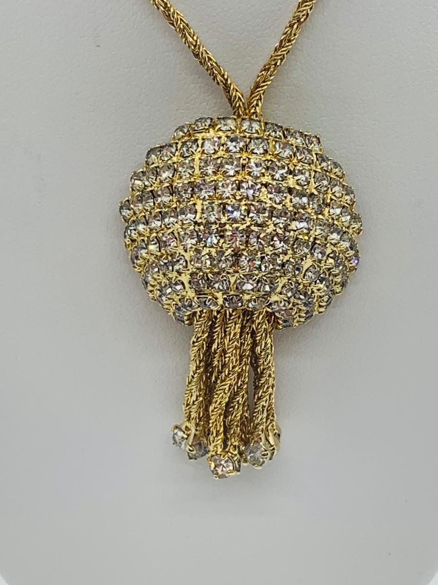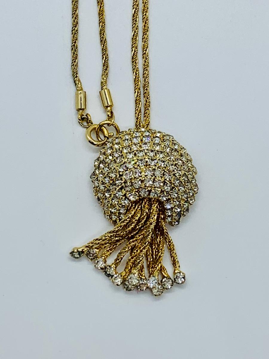 LOT J1R: Vintage Goldtone & Rhinestone Tassel Brooch & Chain Necklace