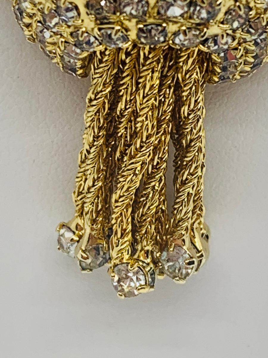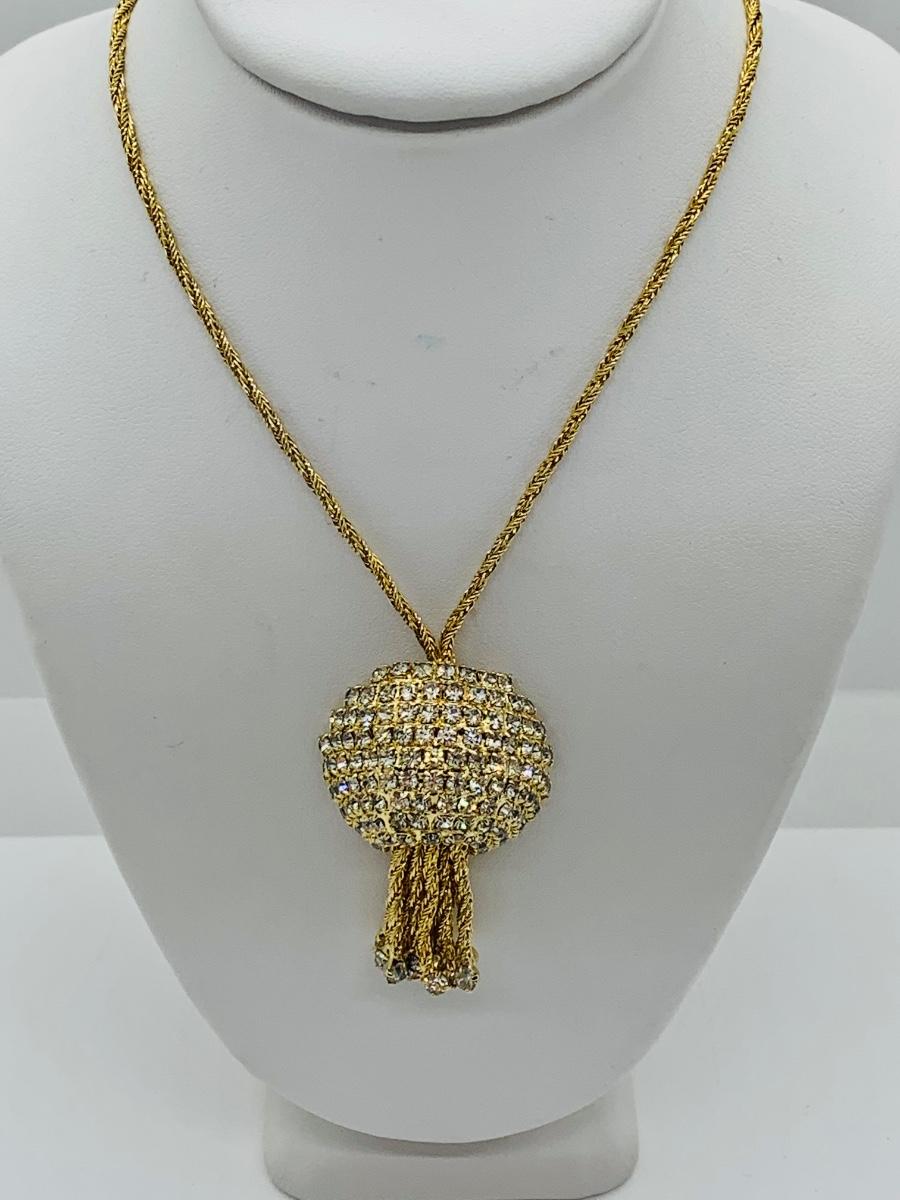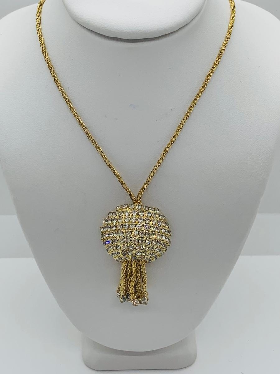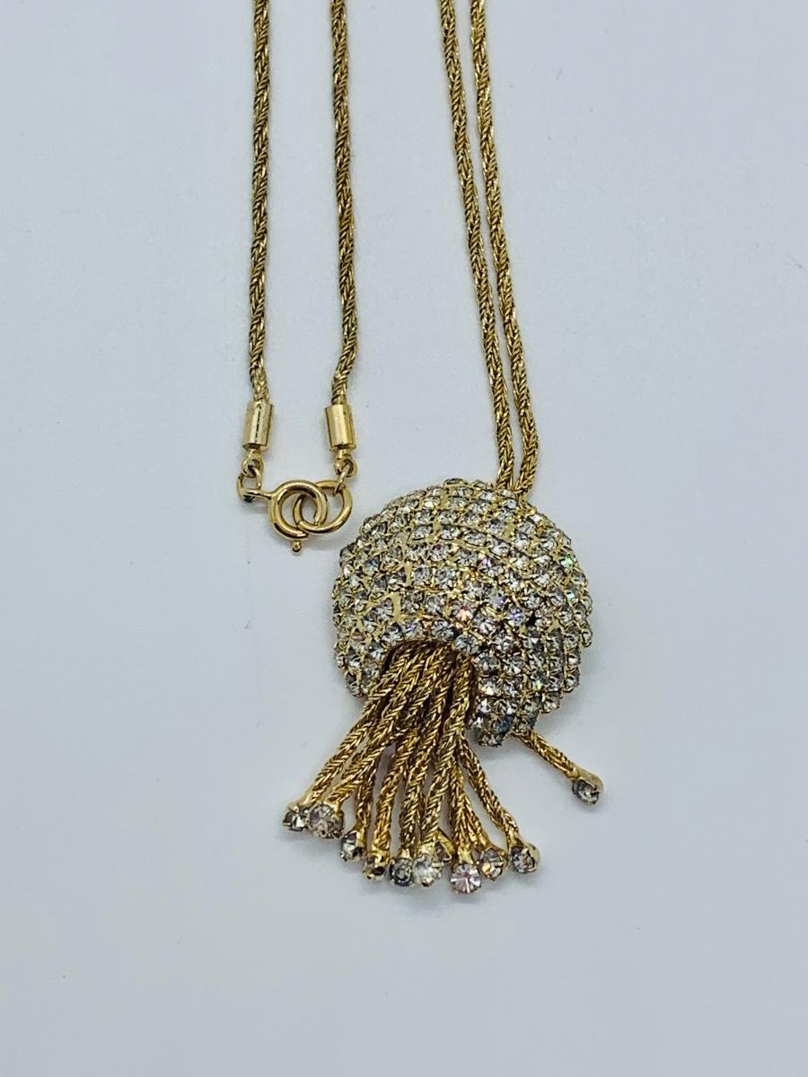 LOT J1R: Vintage Goldtone & Rhinestone Tassel Brooch & Chain Necklace