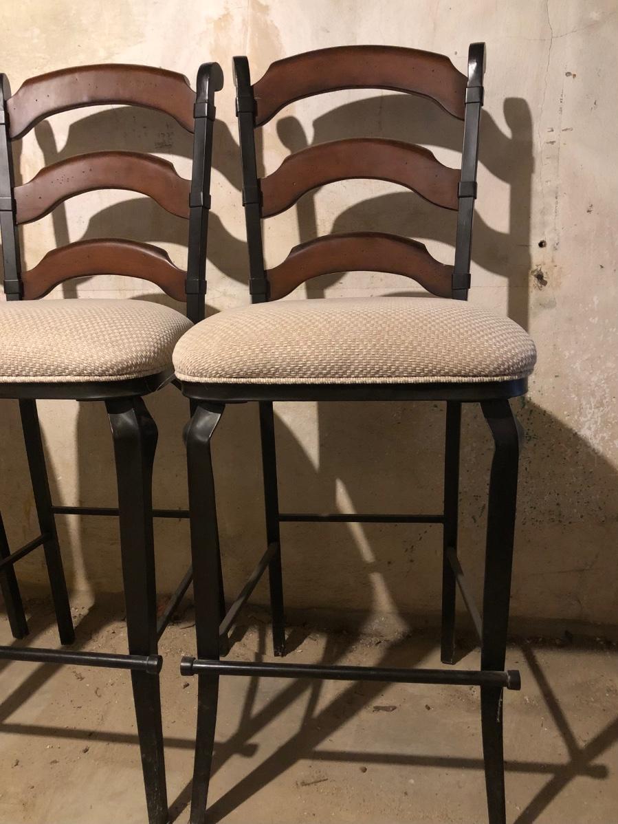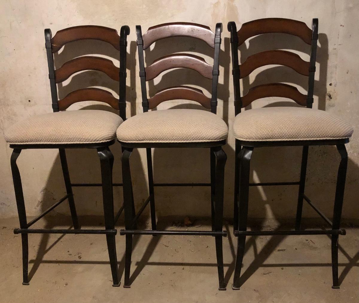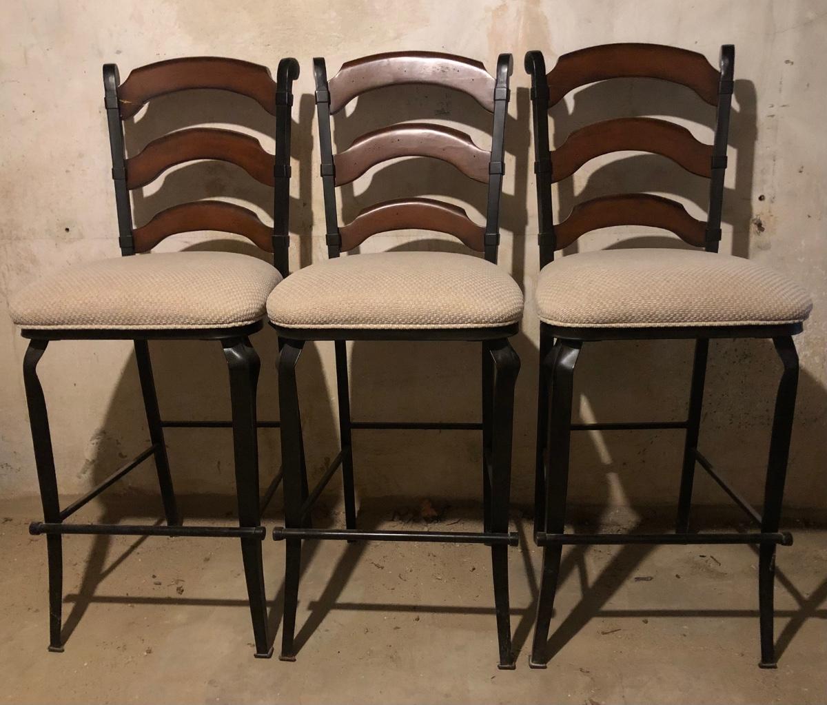 Three matching bar stools. Condition is used with some marks (see photos). Each measure 18W x 19D x 47H.