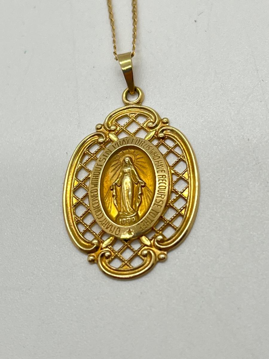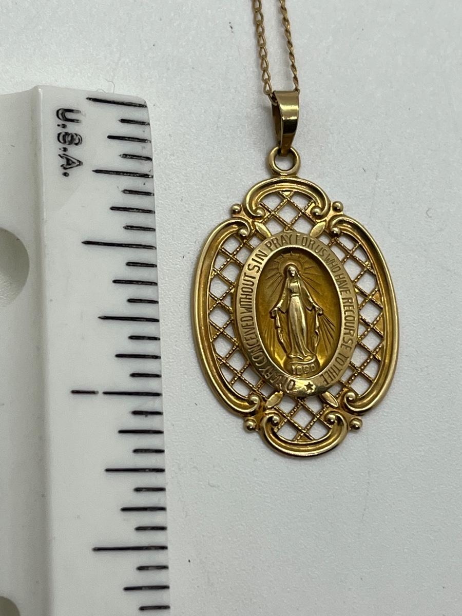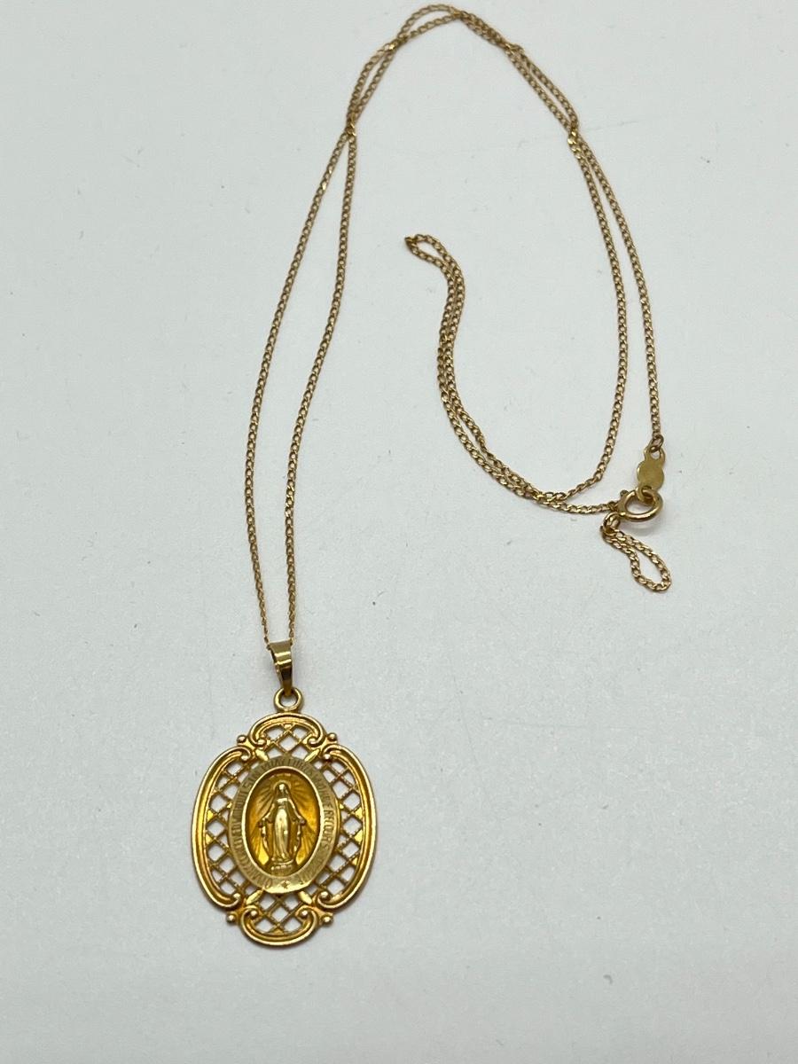 LOT1: 3.0g 14k Virgin Mary Pendant with 14K 19" chain SYLKAY