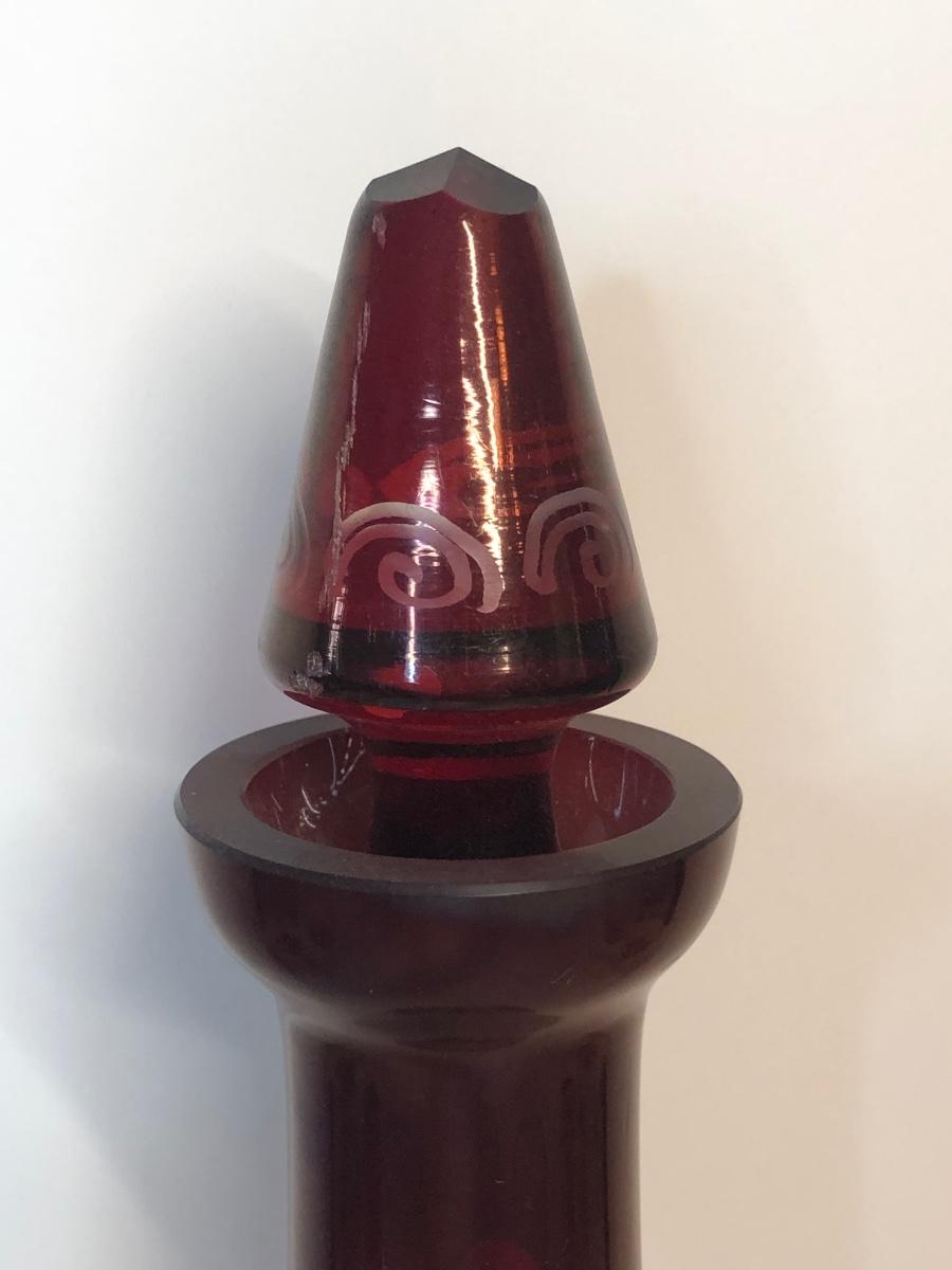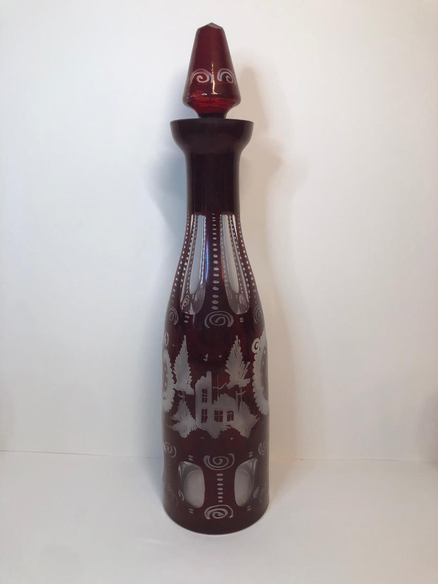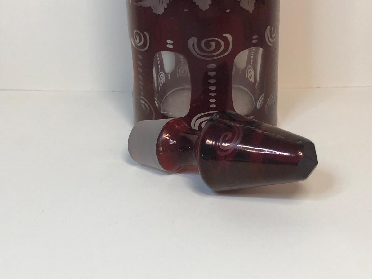 LOT 1M: Bohemian Ruby Cut to Clear Decanter & Ruby Cameo Stem Glasses