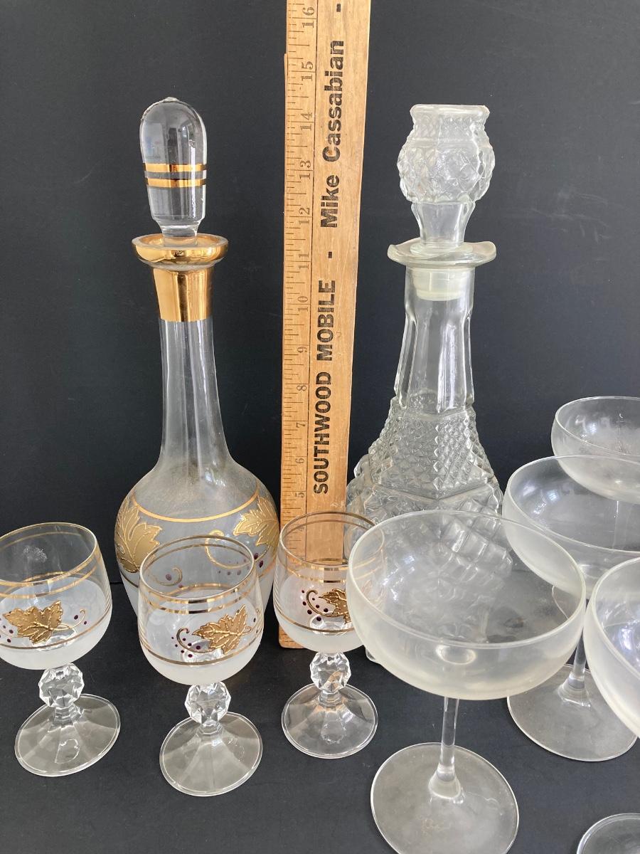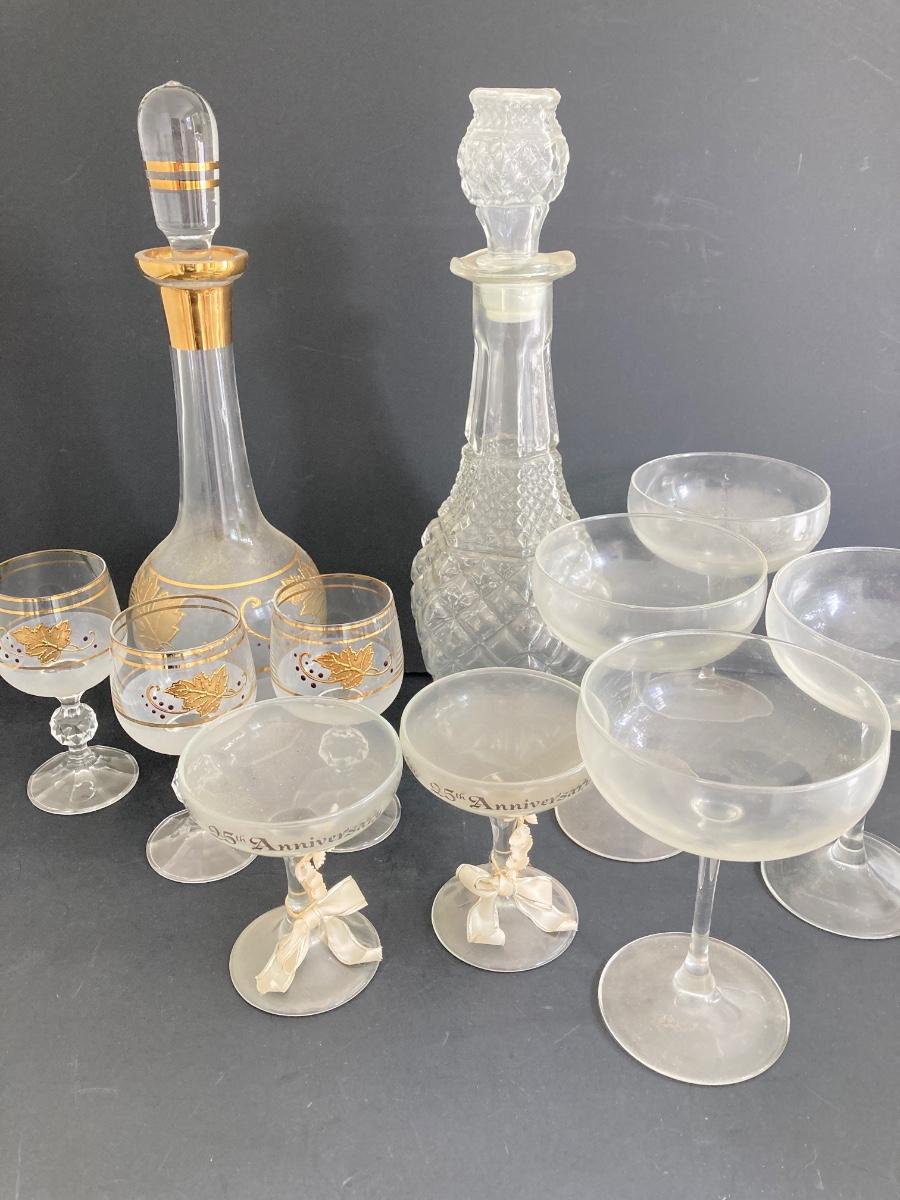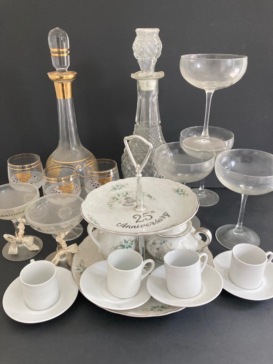 LOT 1D: MCM Gold Leaf Decanter Set, 25th Anniversary, Lefton and More