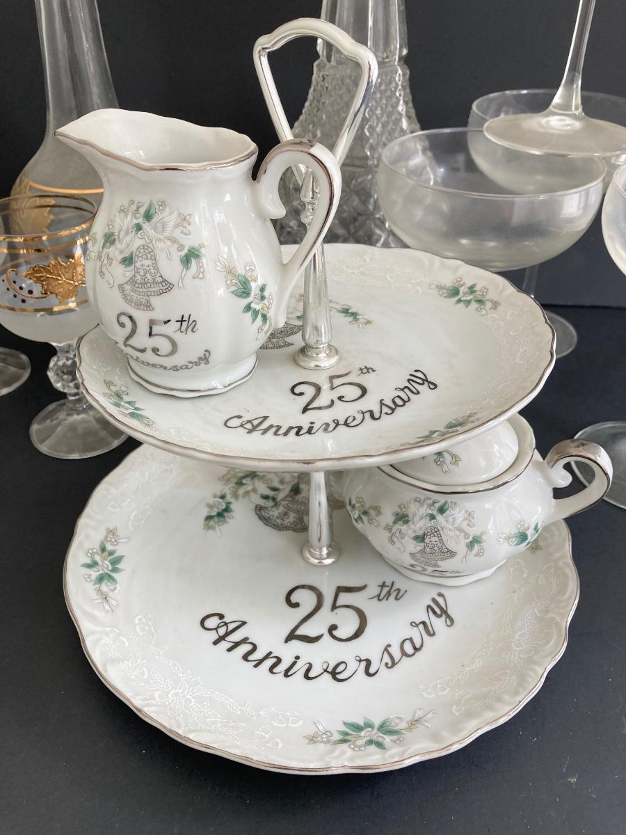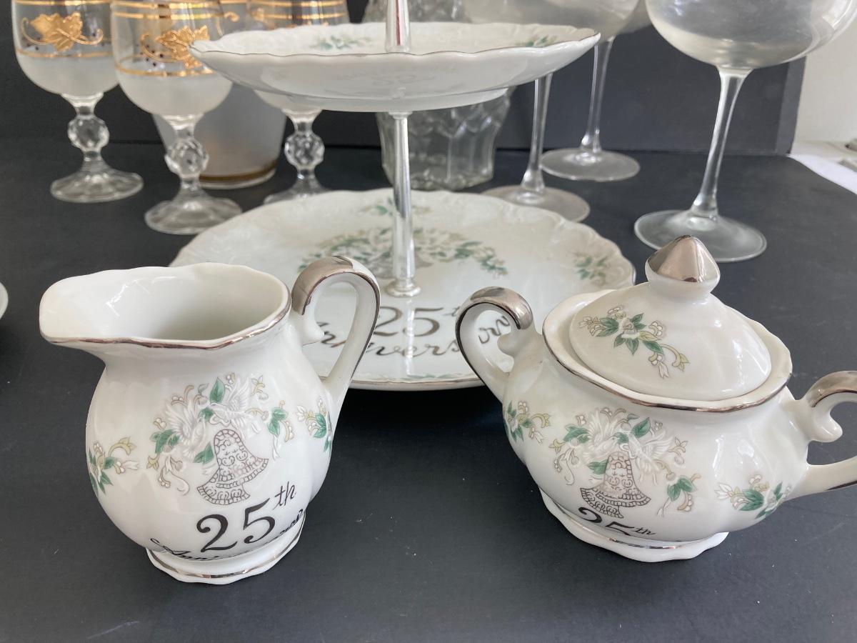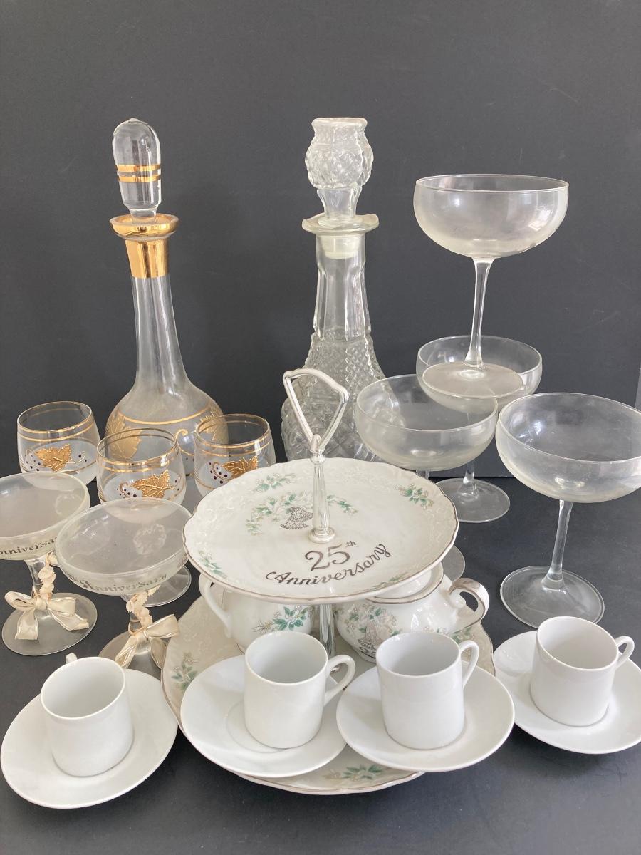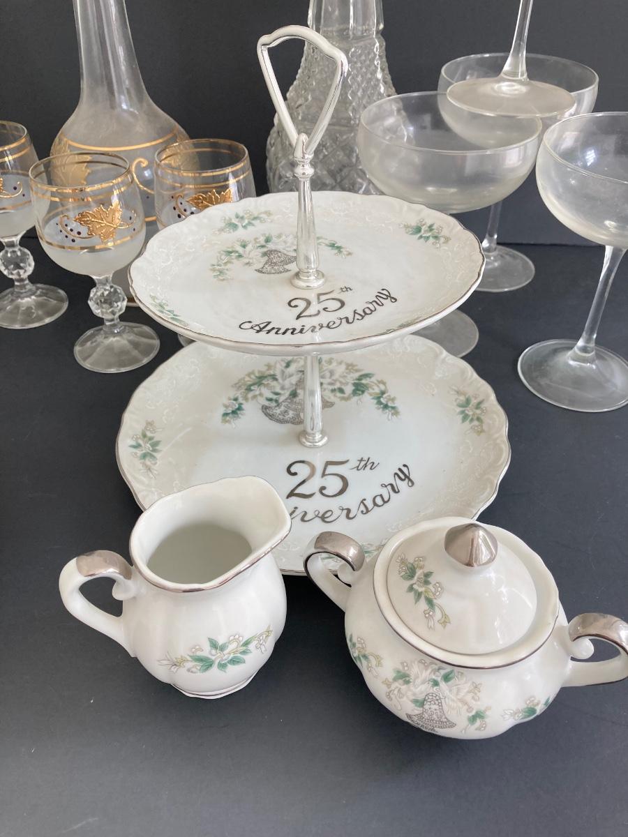 LOT 1D: MCM Gold Leaf Decanter Set, 25th Anniversary, Lefton and More