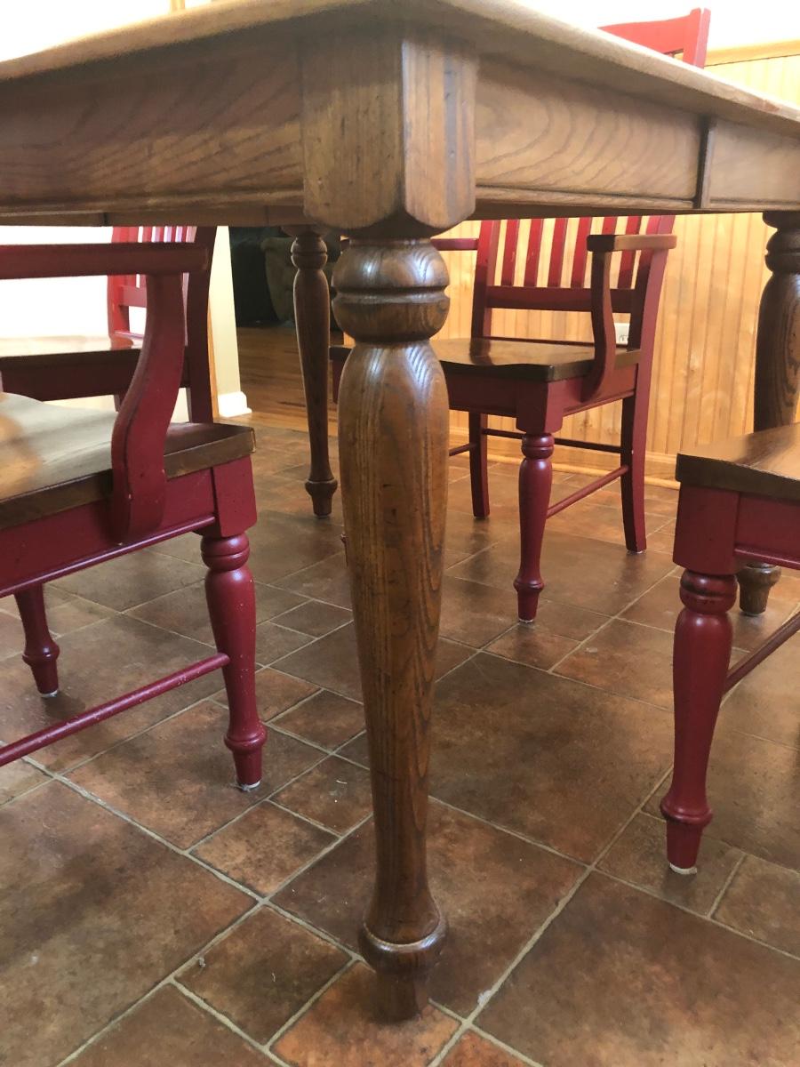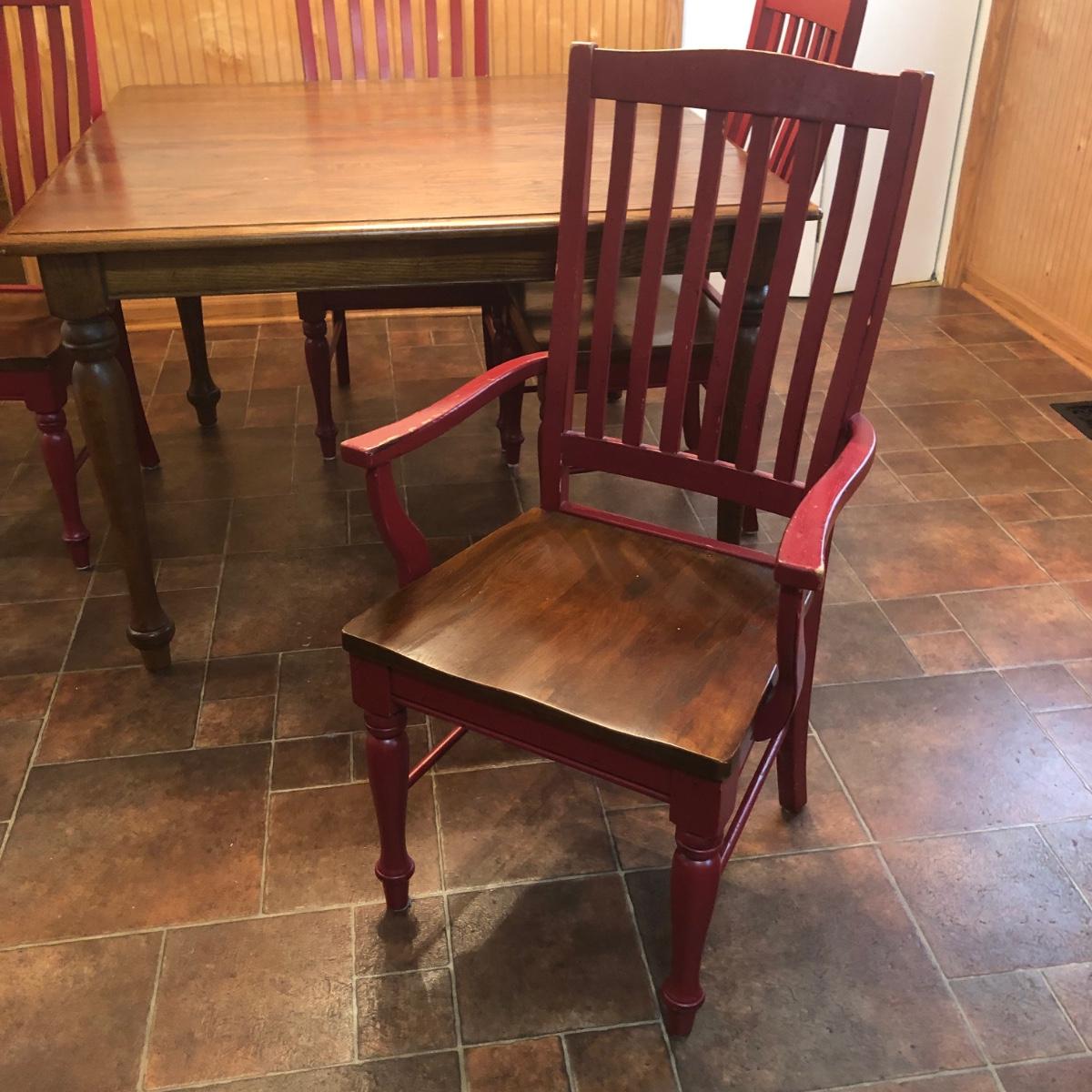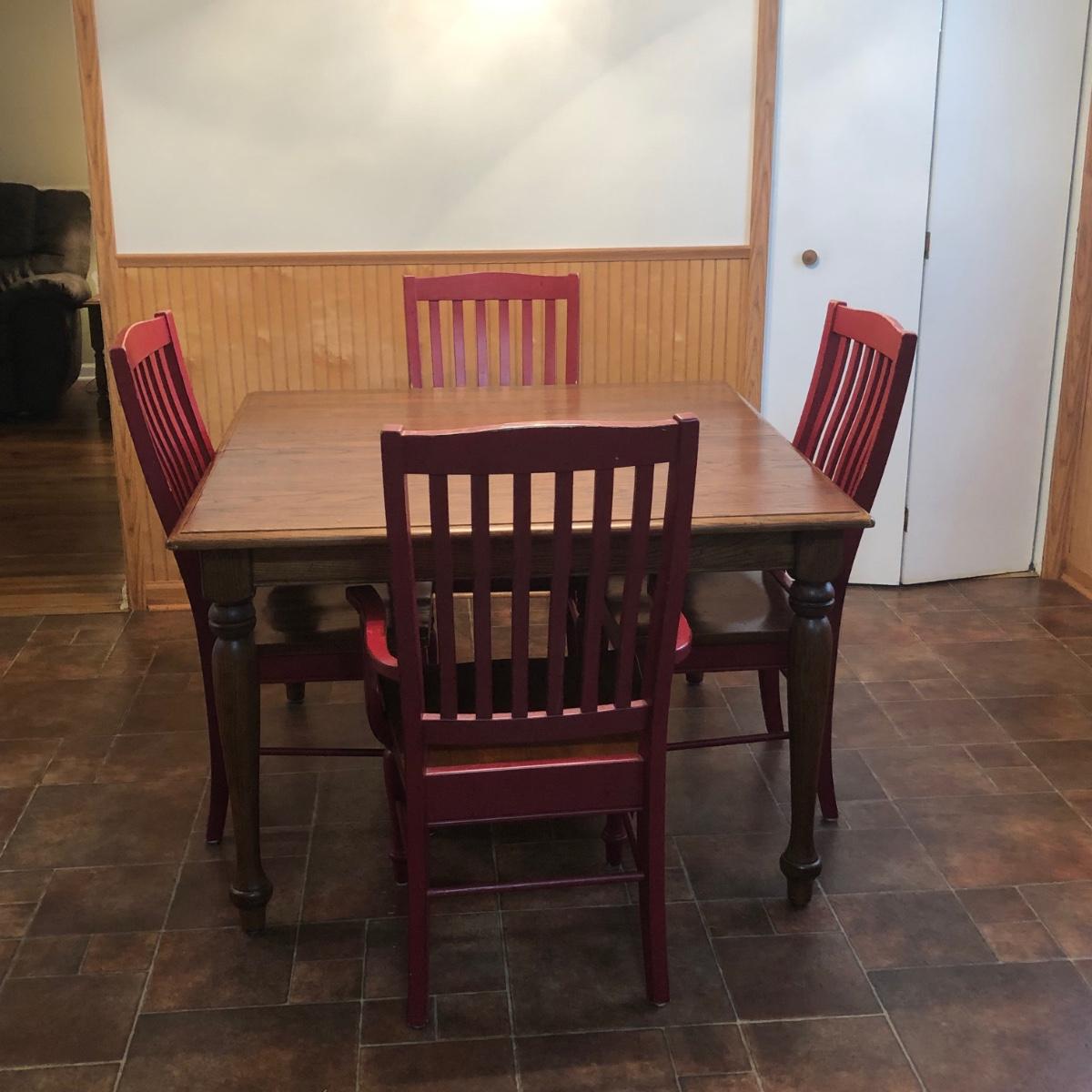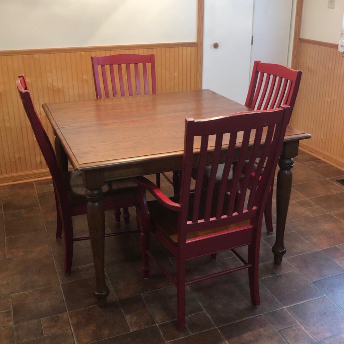 LOT 1M: Cochrane Furniture Design & Dine Collection Tavern Leg Table w/ 18" :Leaf & 4 Red Chairs