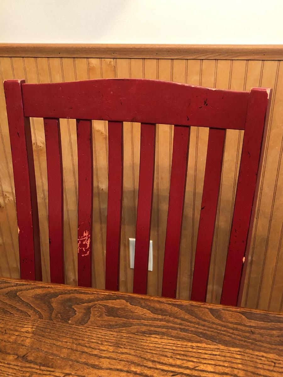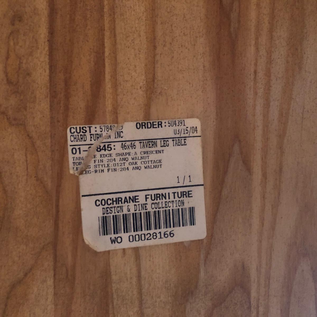 Chairs have slight superficial wear and measure 23W x 18D x 40H. Table measures 46W x 46D x 30H and includes an 18" x 46" leaf.