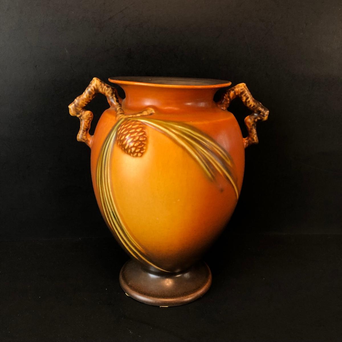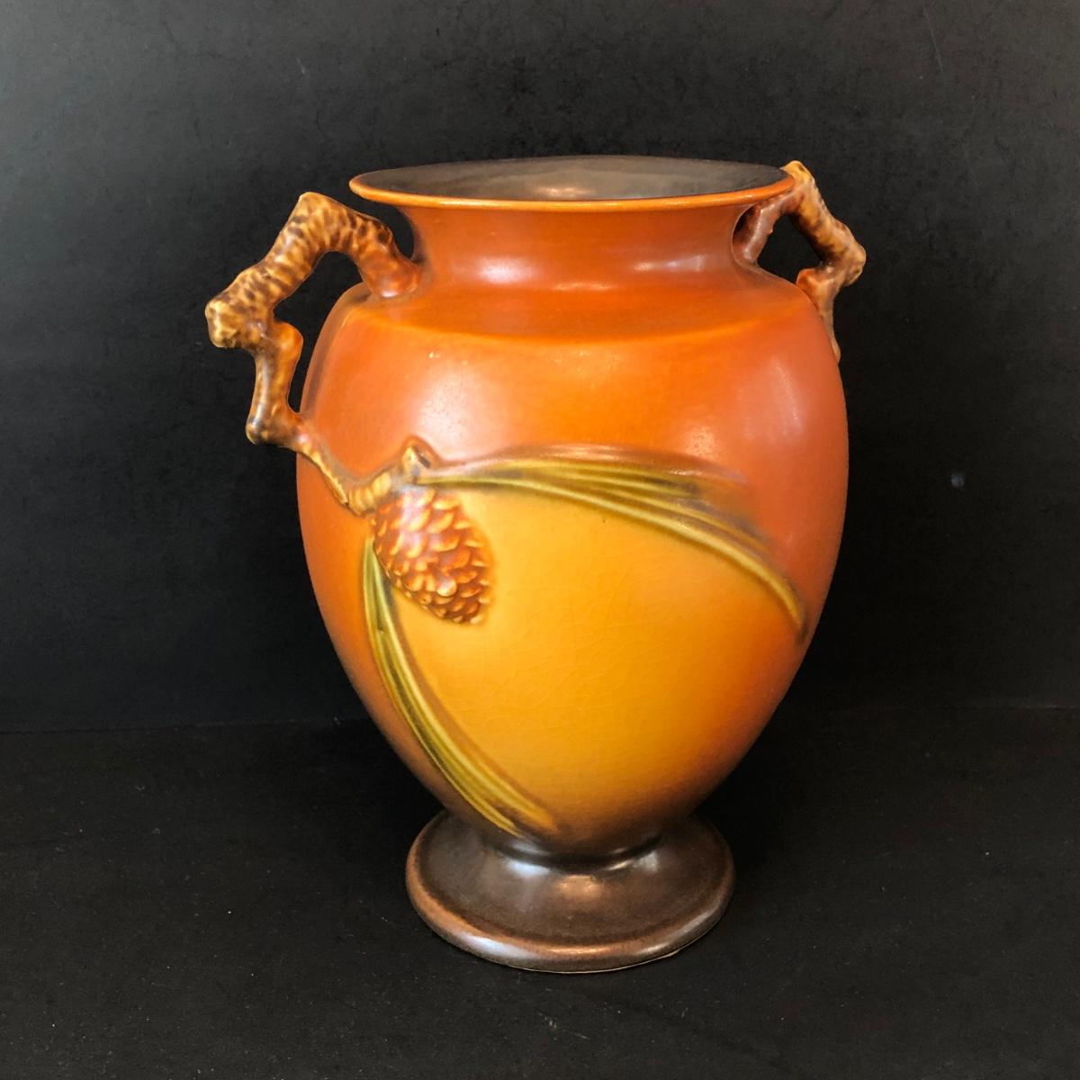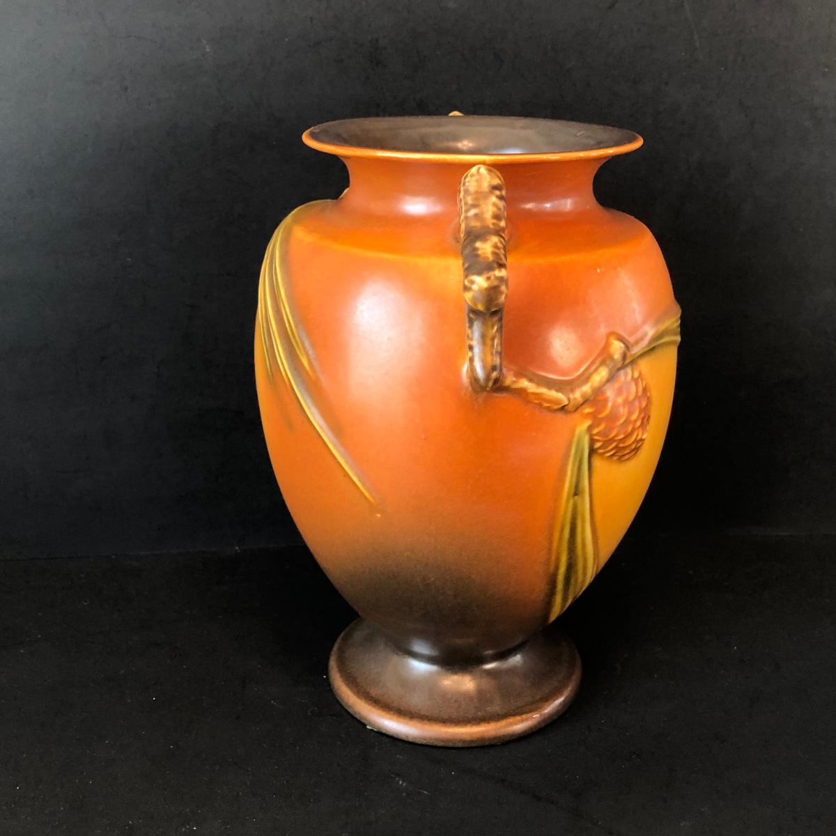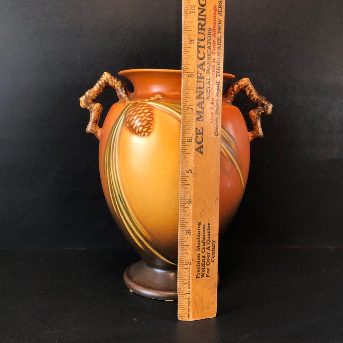 LOT 1M: Vintage 1936 Roseville Brown Pine Cone Art Pottery Vase (844-8")