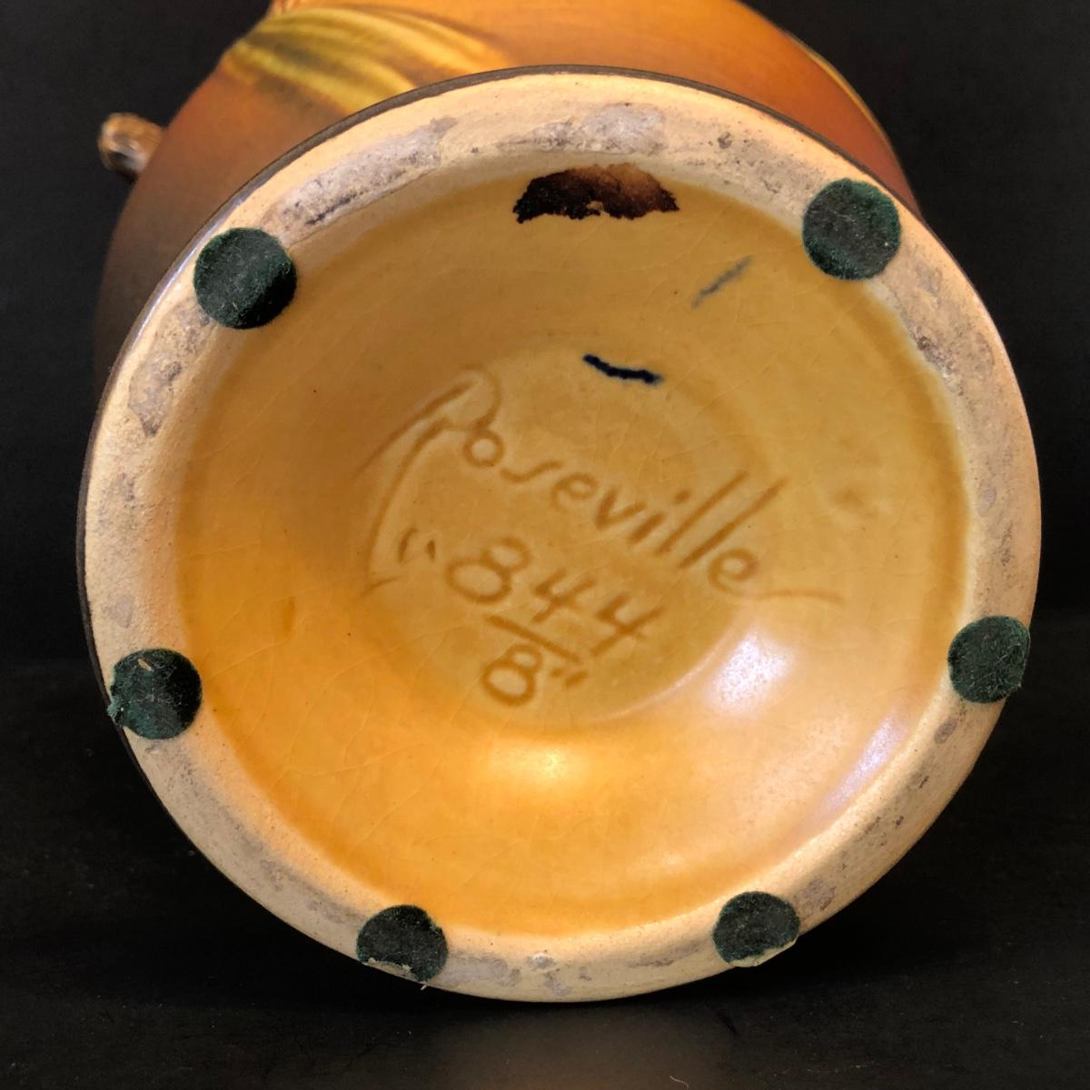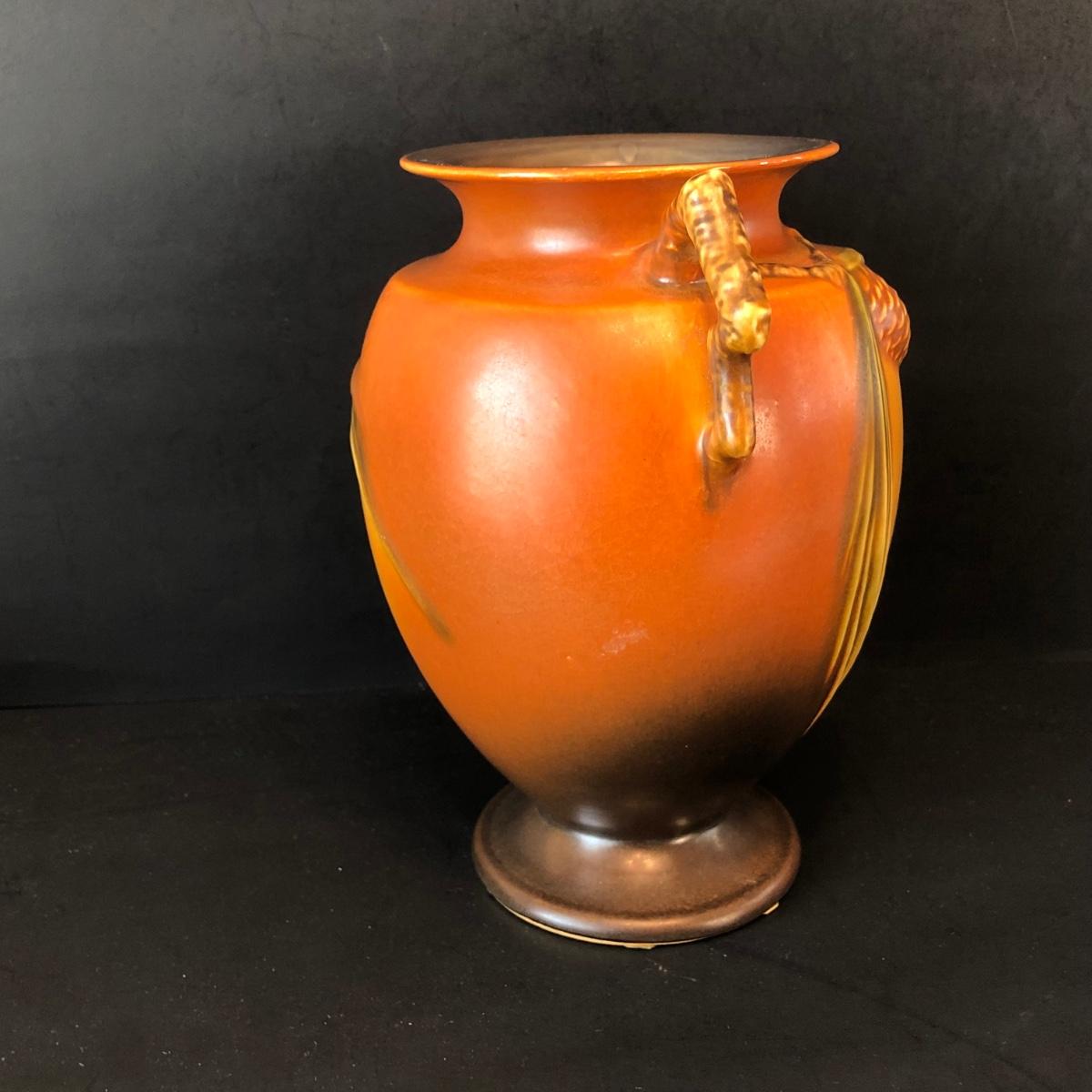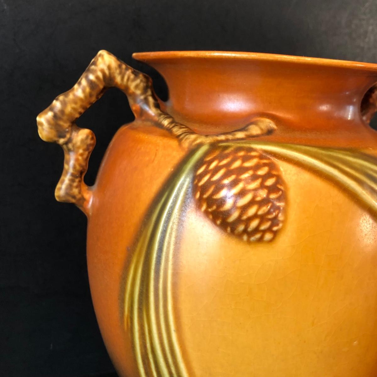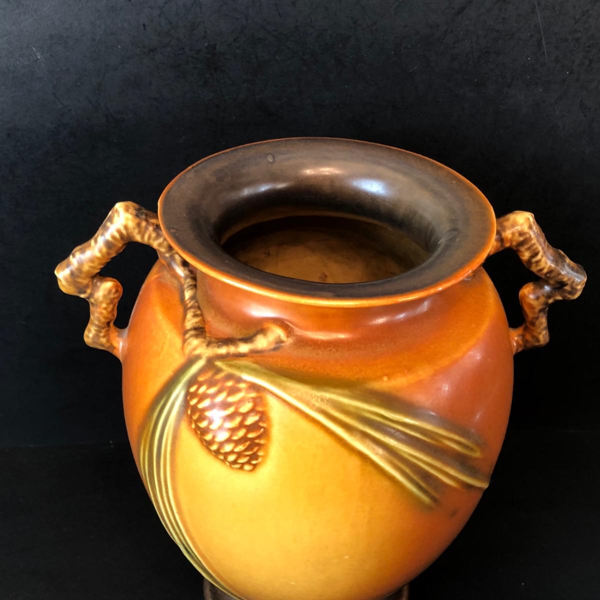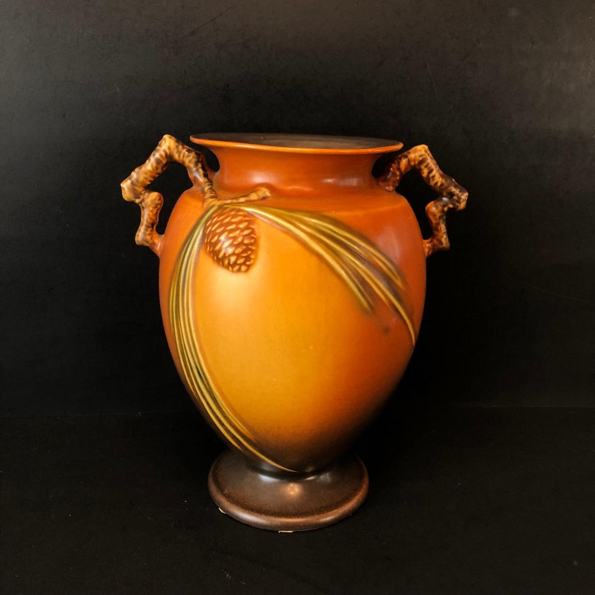 LOT 1M: Vintage 1936 Roseville Brown Pine Cone Art Pottery Vase (844-8")