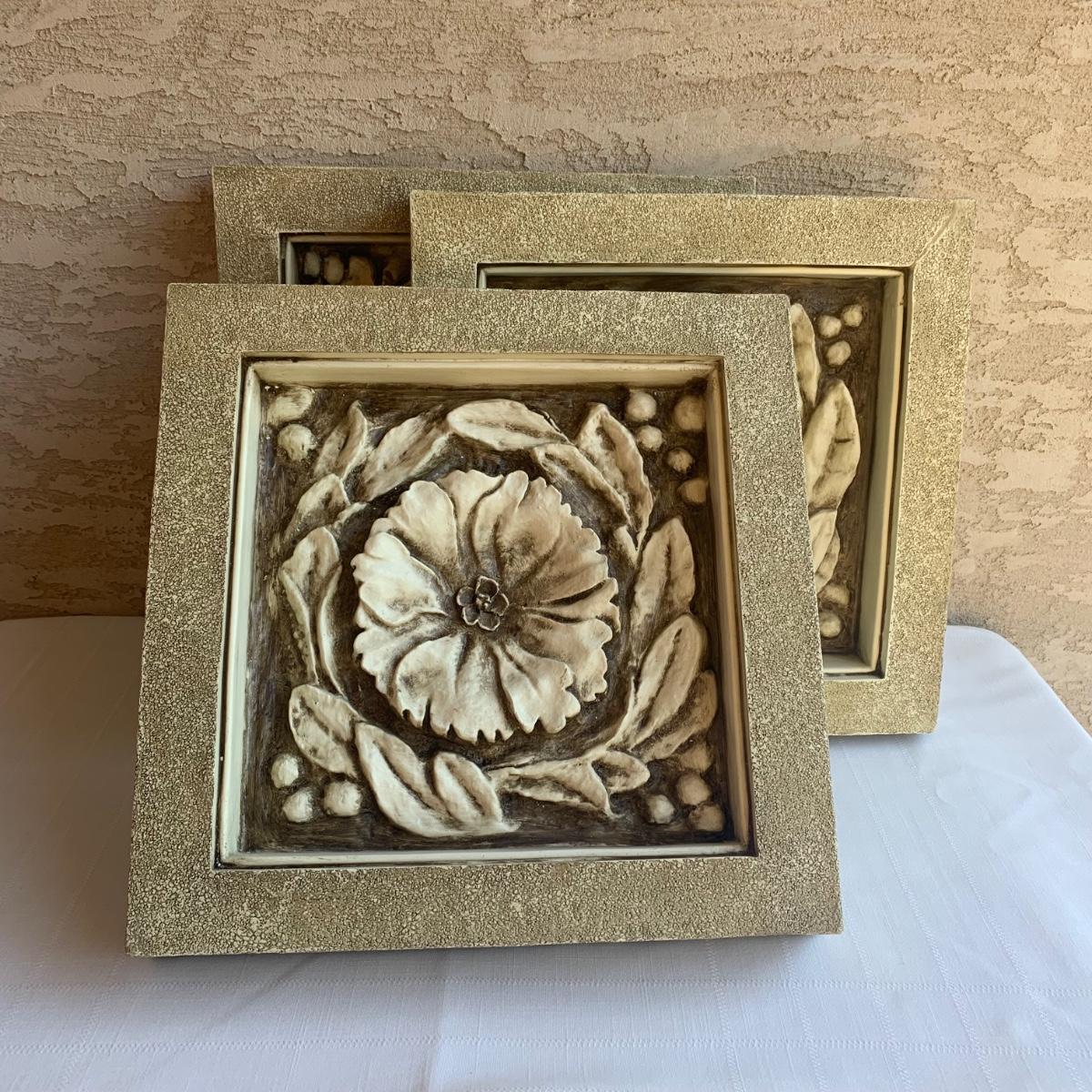 LOT 1R:  Home Decor Floral Resin Wall Tiles