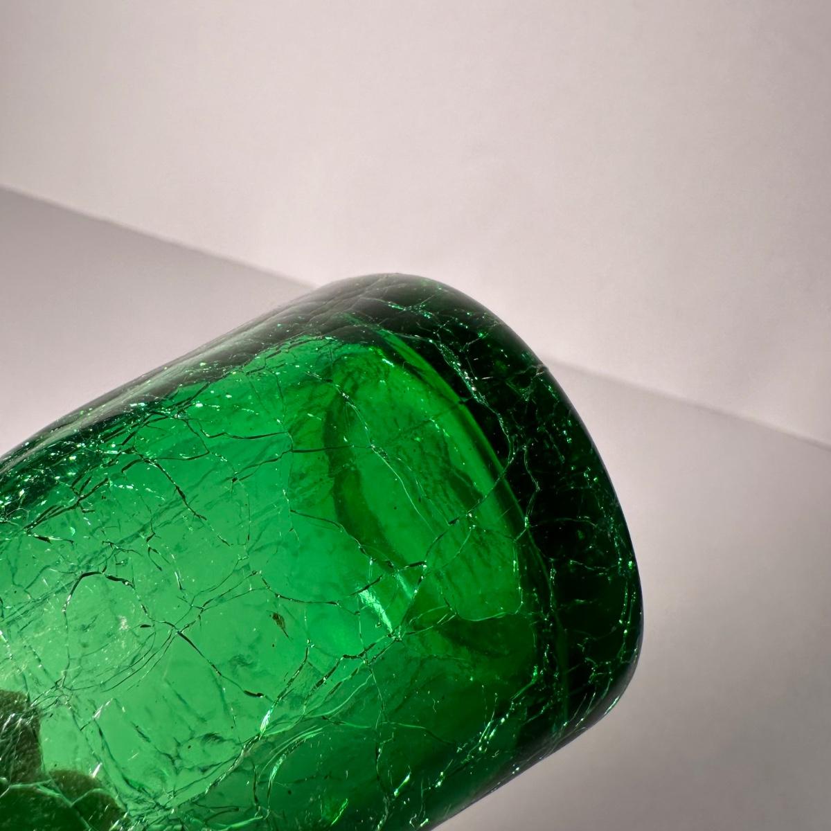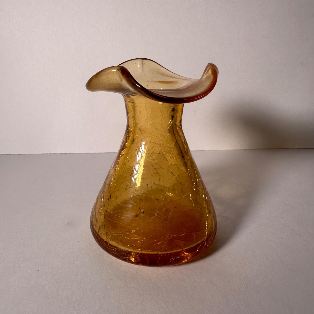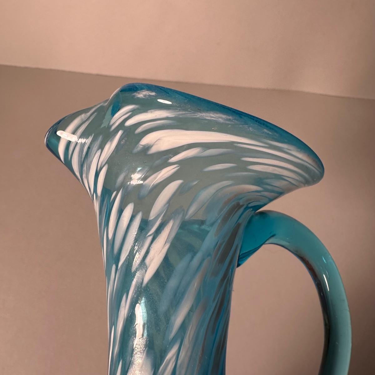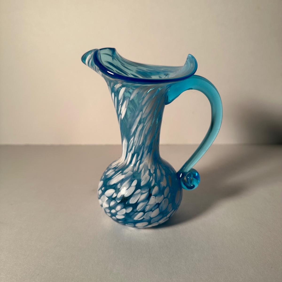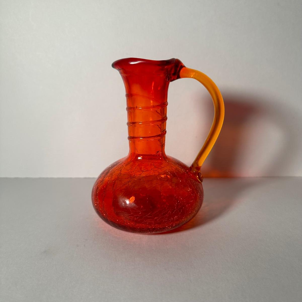 LOT 1F: Vintage Colored Crackle Glass & Hand Blown Rainbow Glass Pitchers