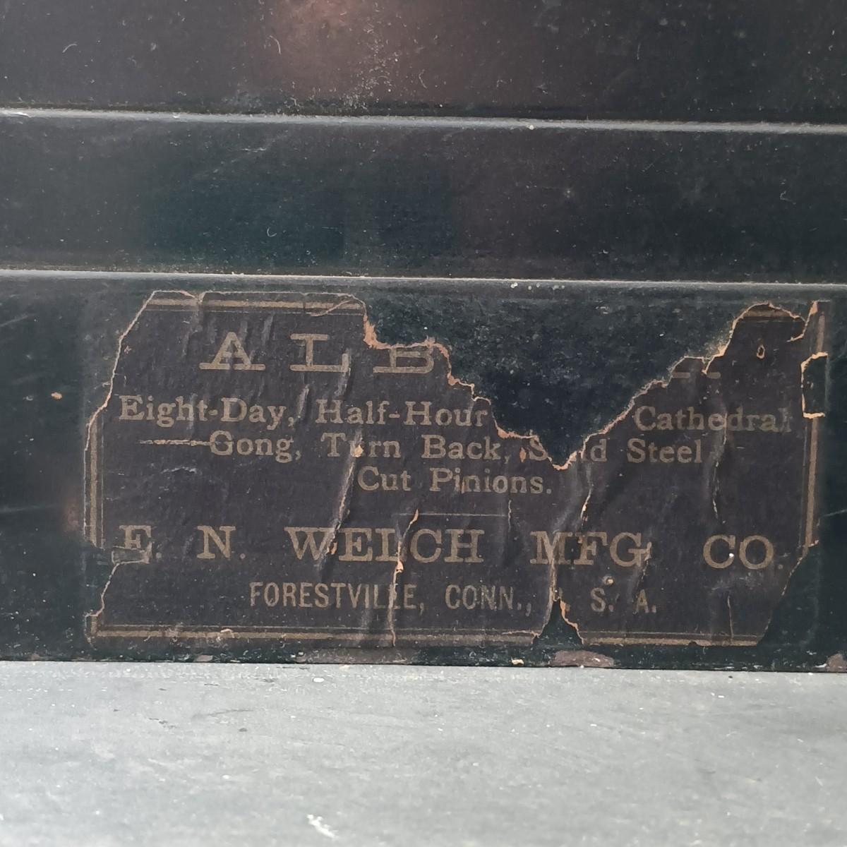 LOT 1: Antique E. N. Welch Eight Day Mantle Clock - Half Hour Strike, Cathedral Gong