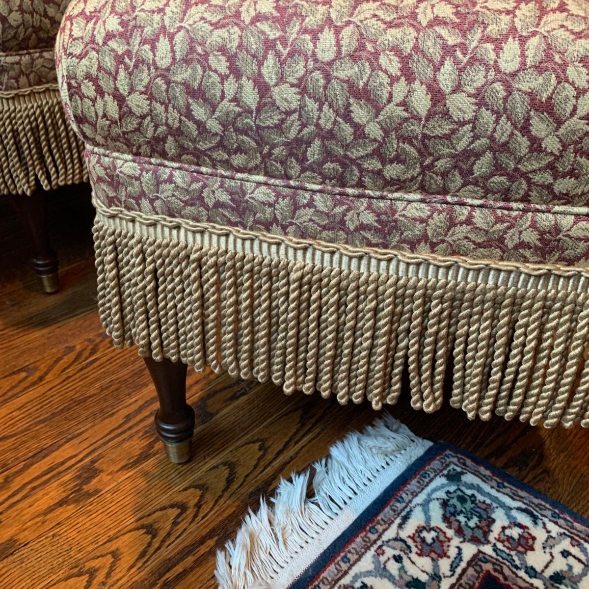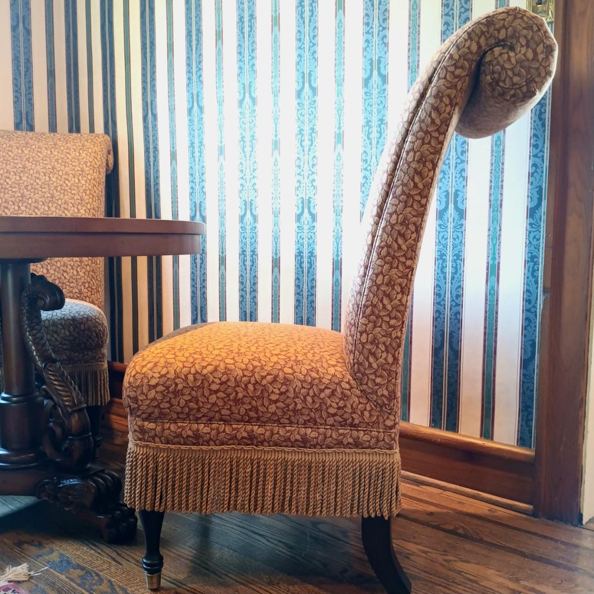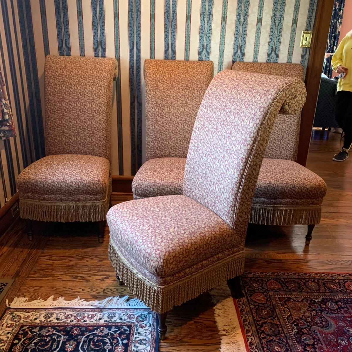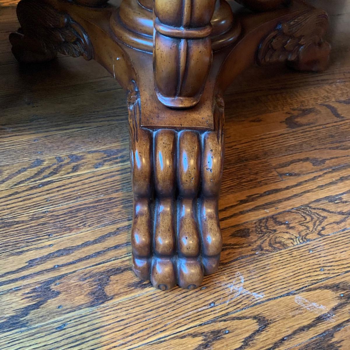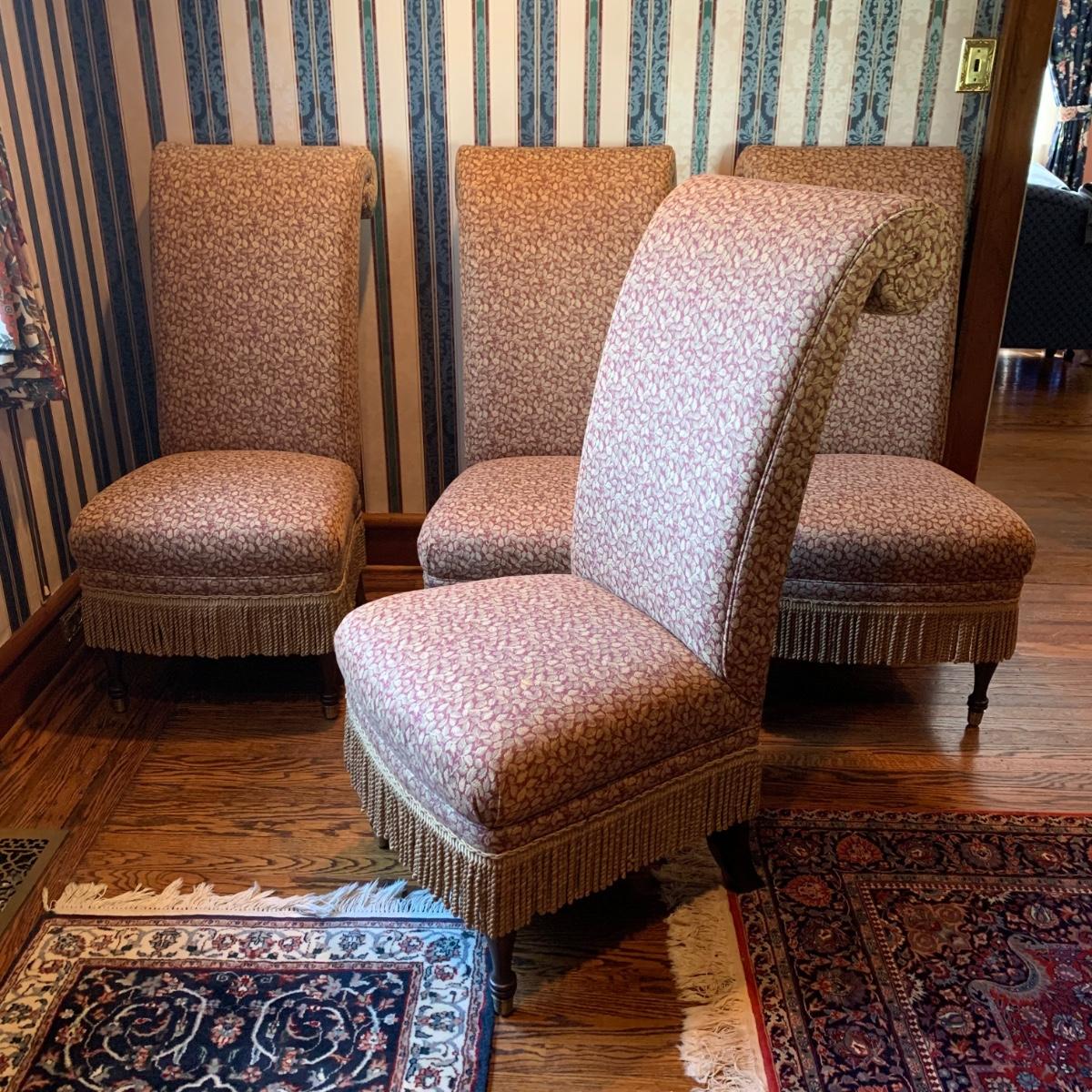 LOT 1: Lillian August Collection Upholstered Chairs & Round Pedestal Table w/Faux Inlaid Feature