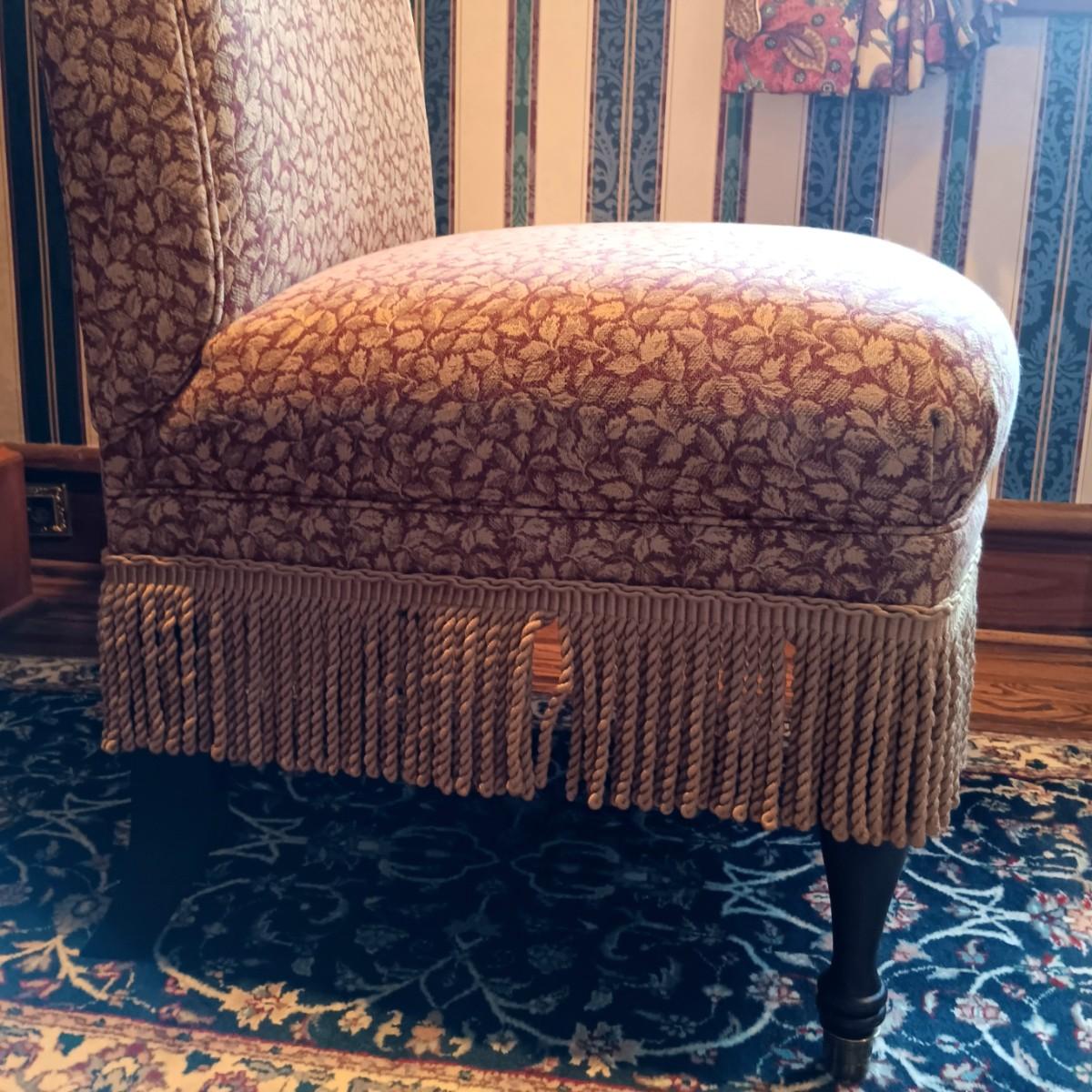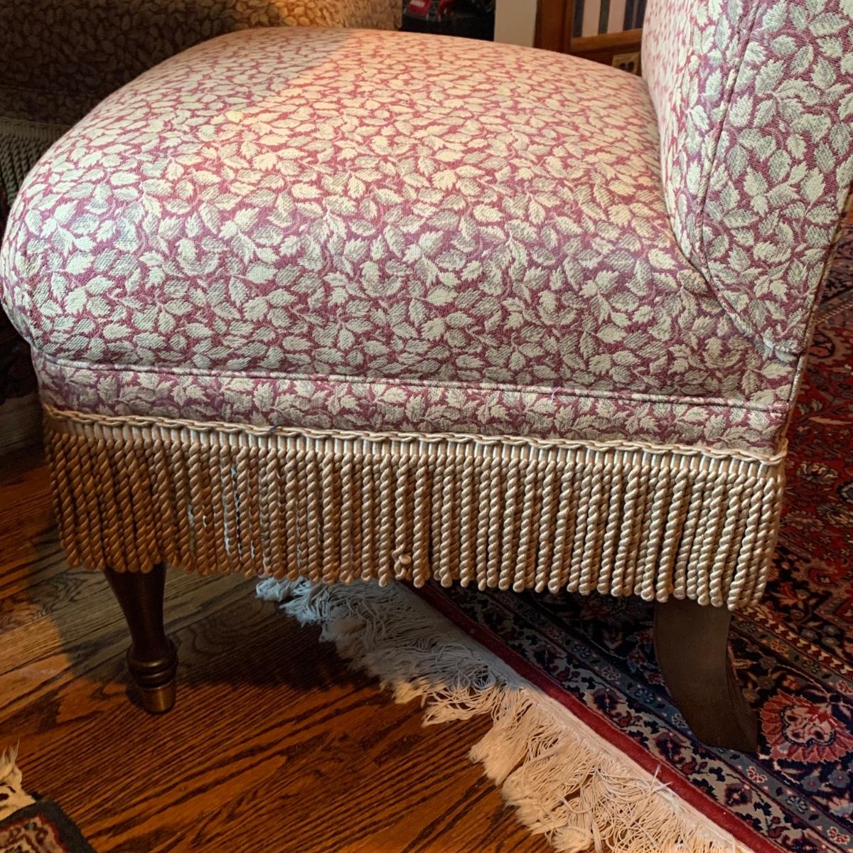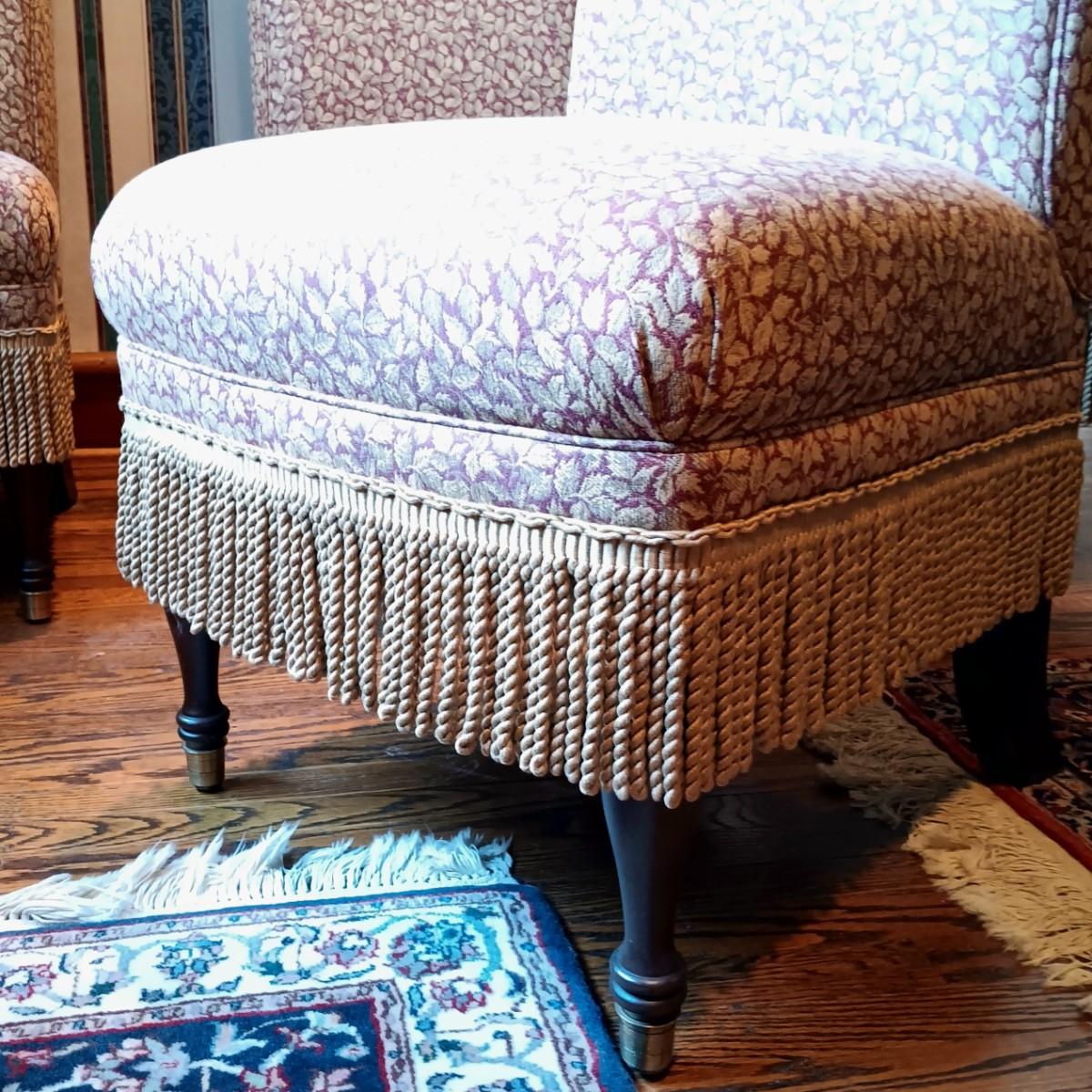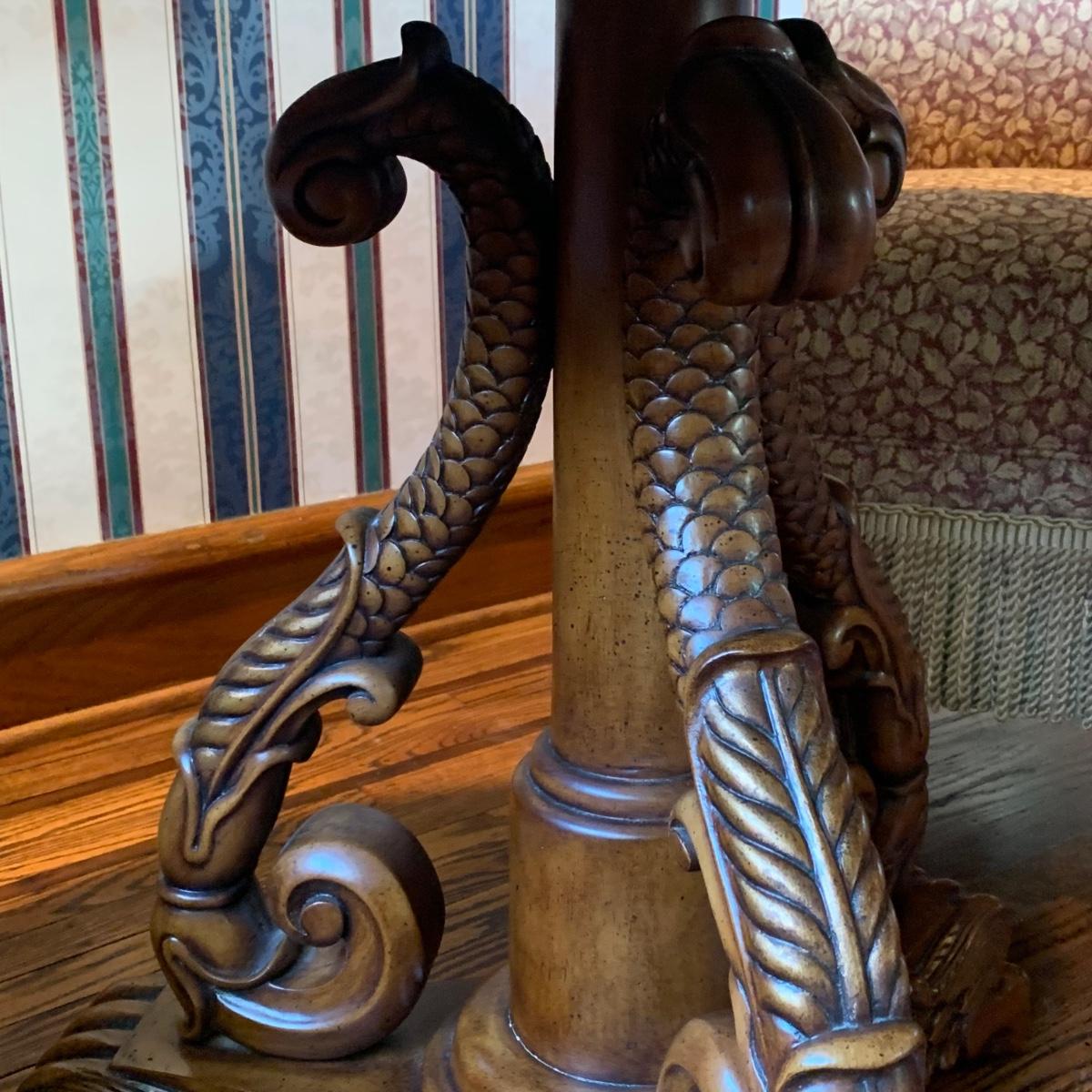 LOT 1: Lillian August Collection Upholstered Chairs & Round Pedestal Table w/Faux Inlaid Feature