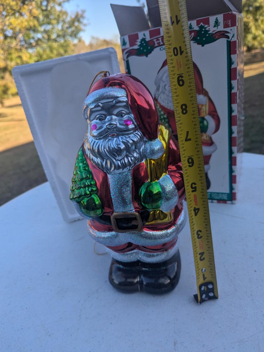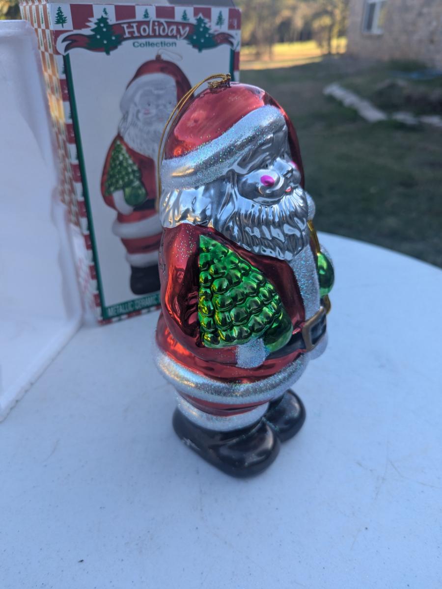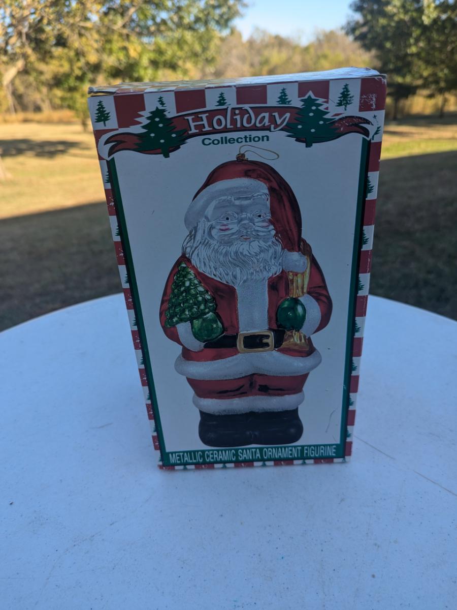 Metallic Ceramic Santa figurine see photos for size. it might be a little bigger than you expect,. not an ornament size more like the height of an insulated cup.