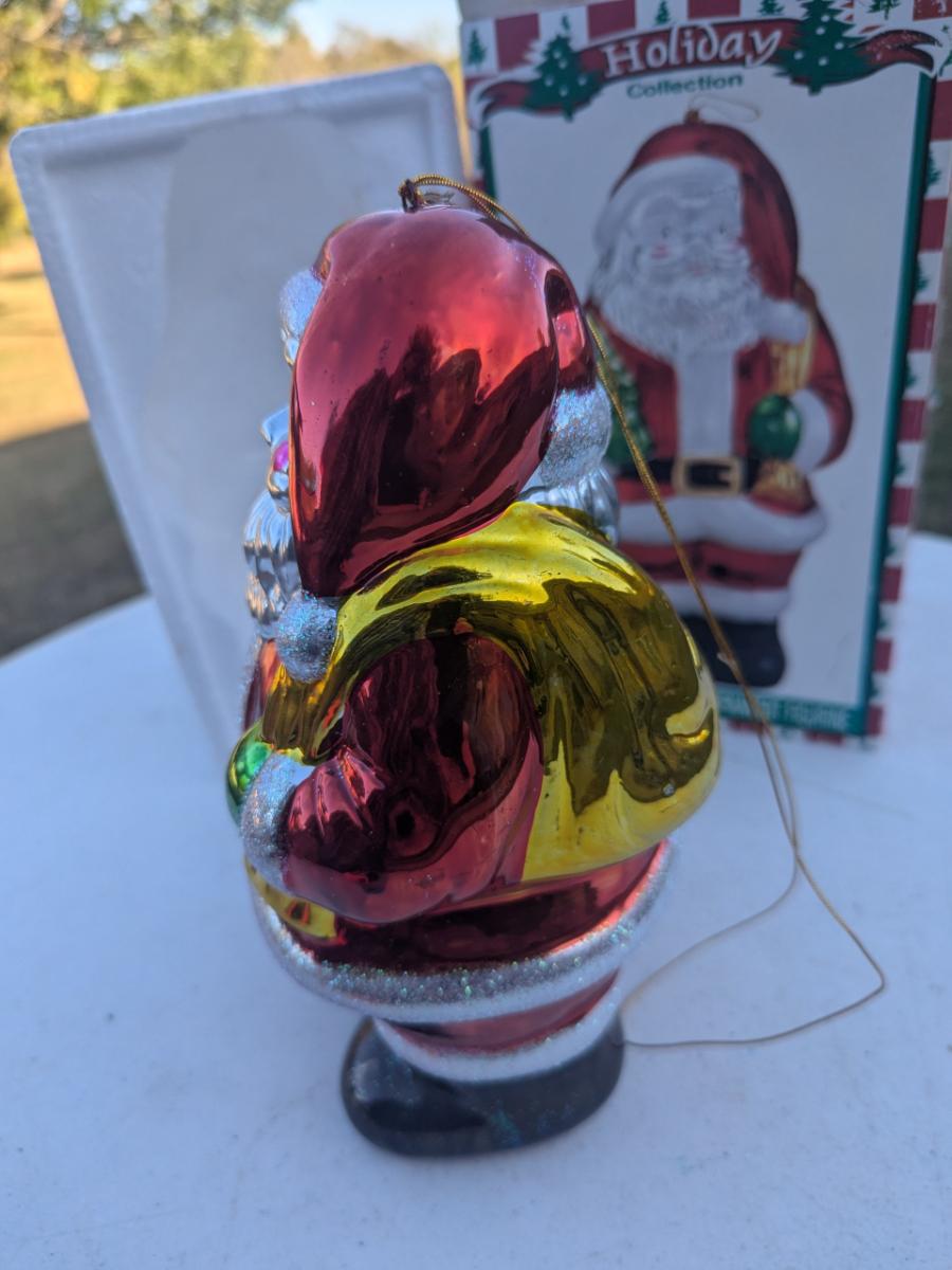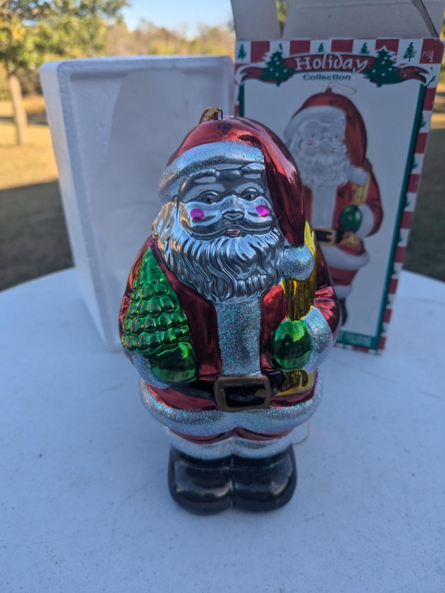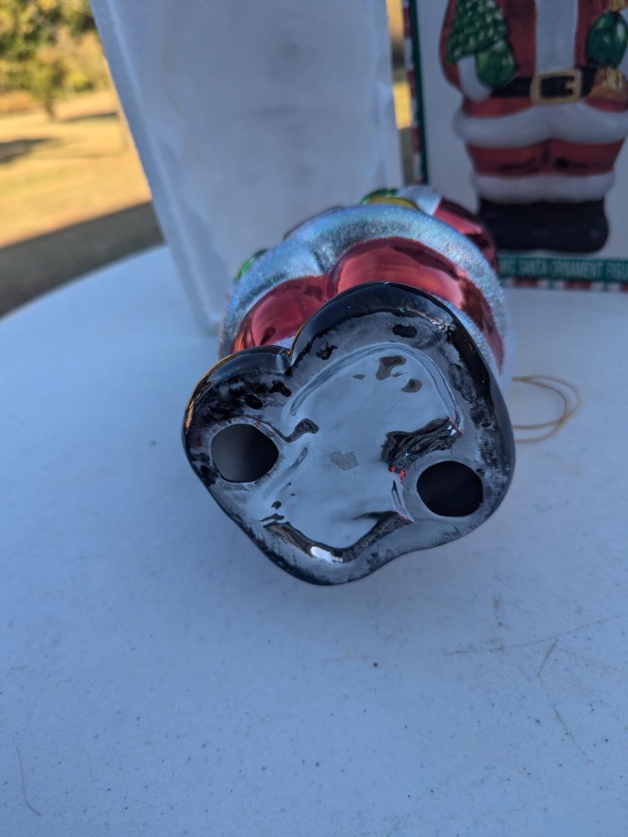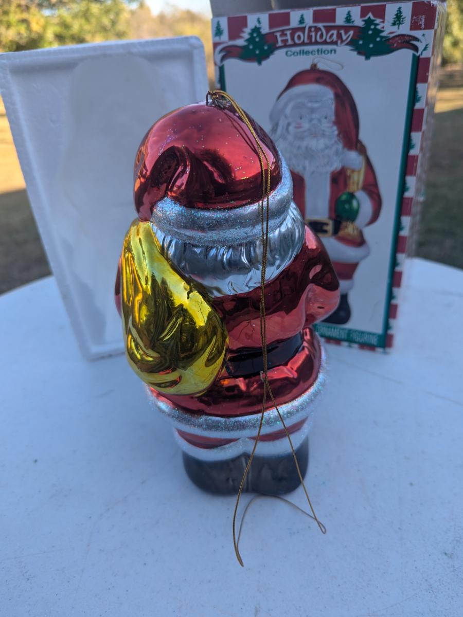 Metallic Ceramic Santa figurine see photos for size. it might be a little bigger than you expect,. not an ornament size more like the height of an insulated cup.