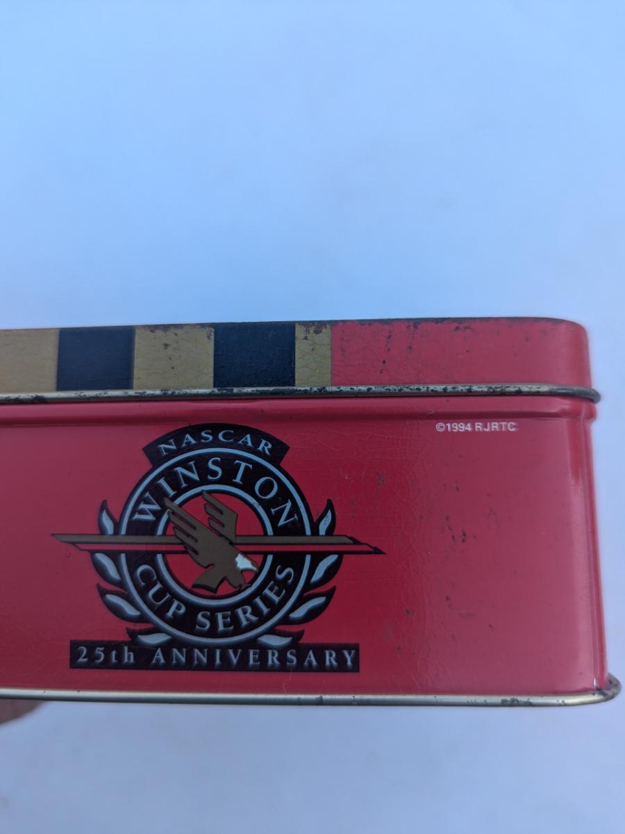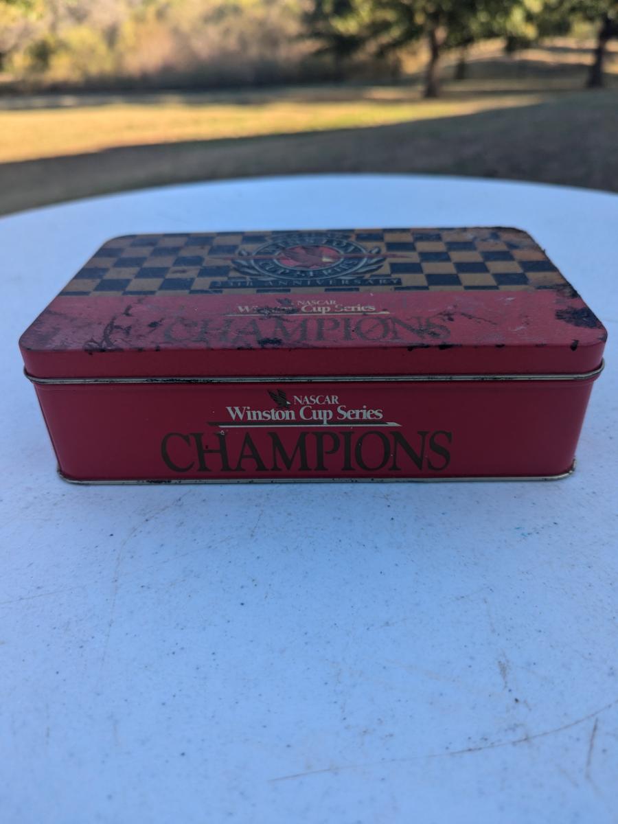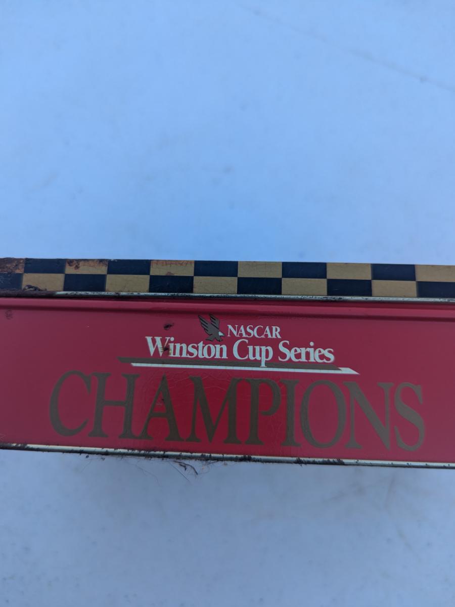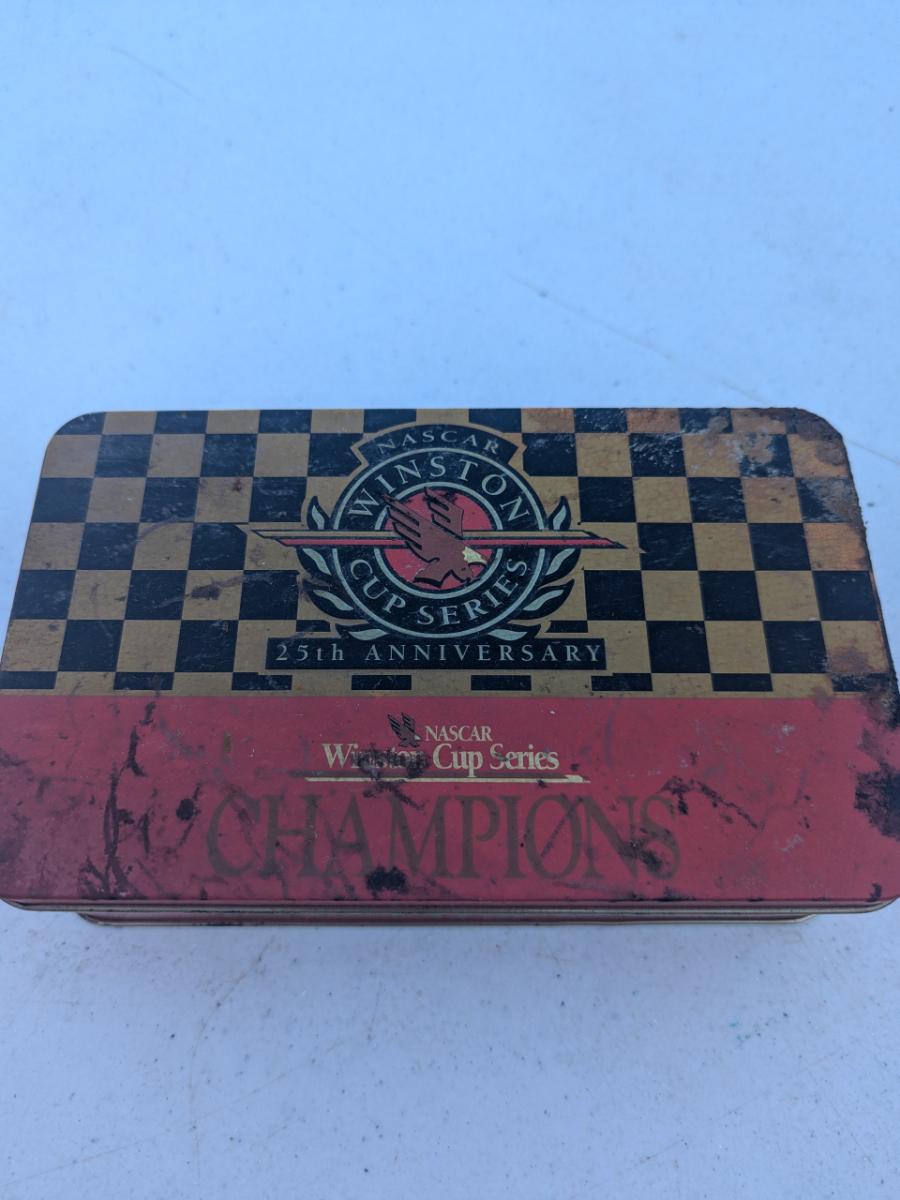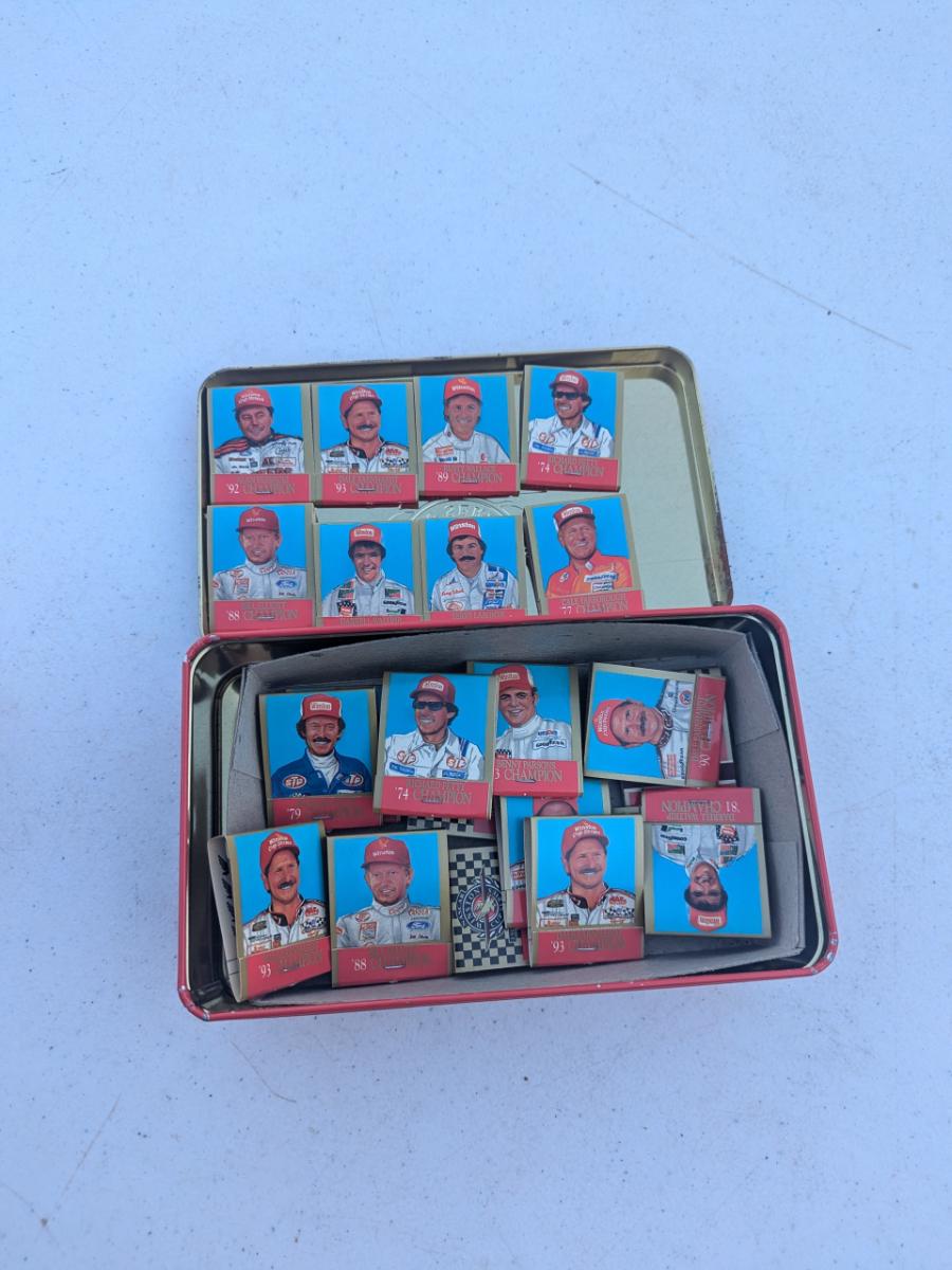 vintage Naskar Winston cup tin with various drivers books of matches