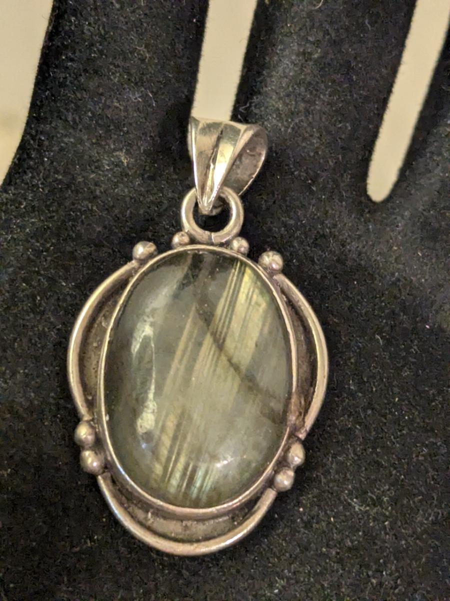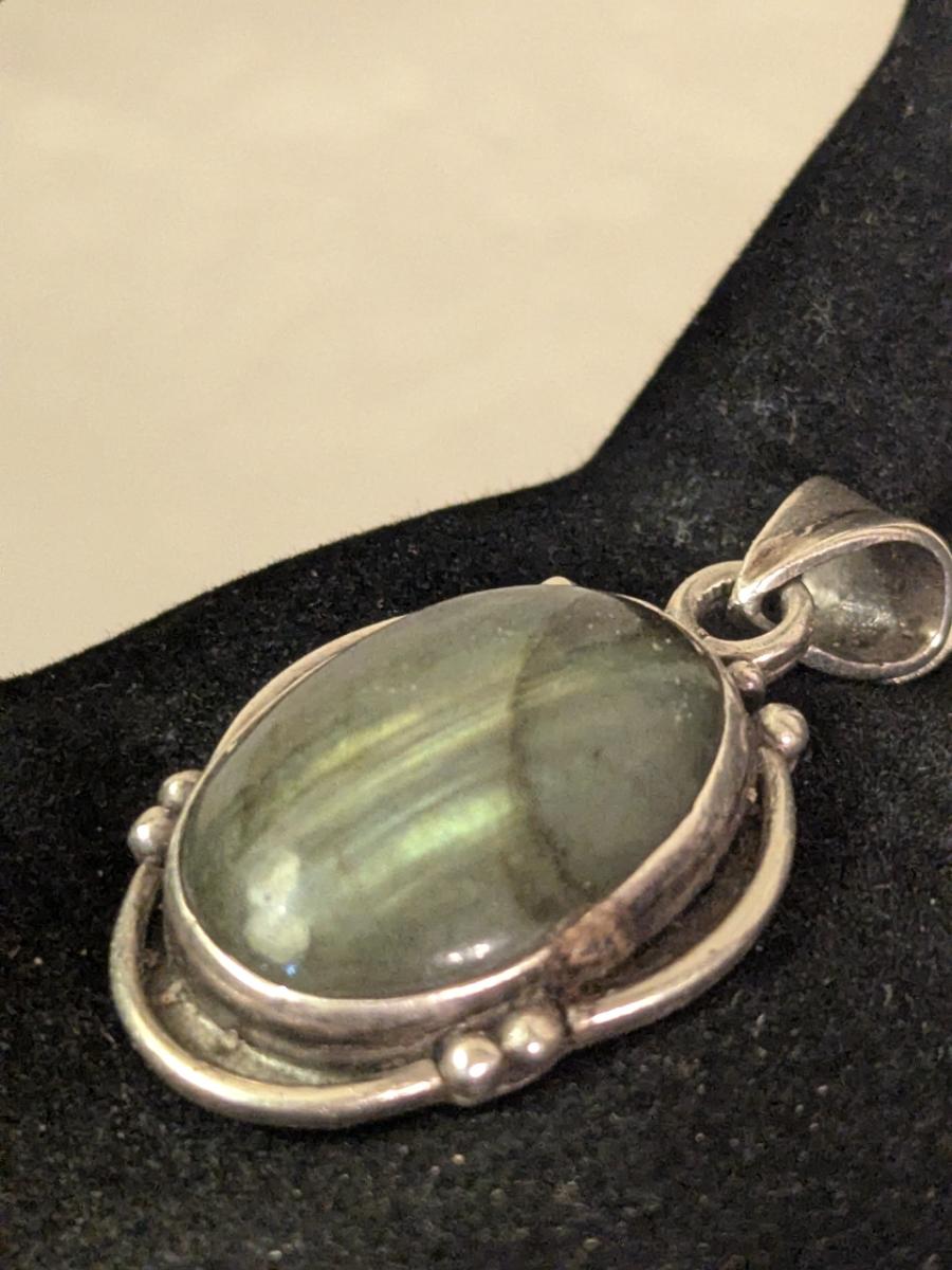 Vintage sterling silver oval natural labradorite pendant