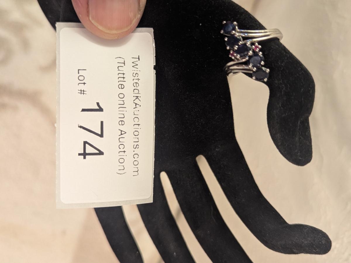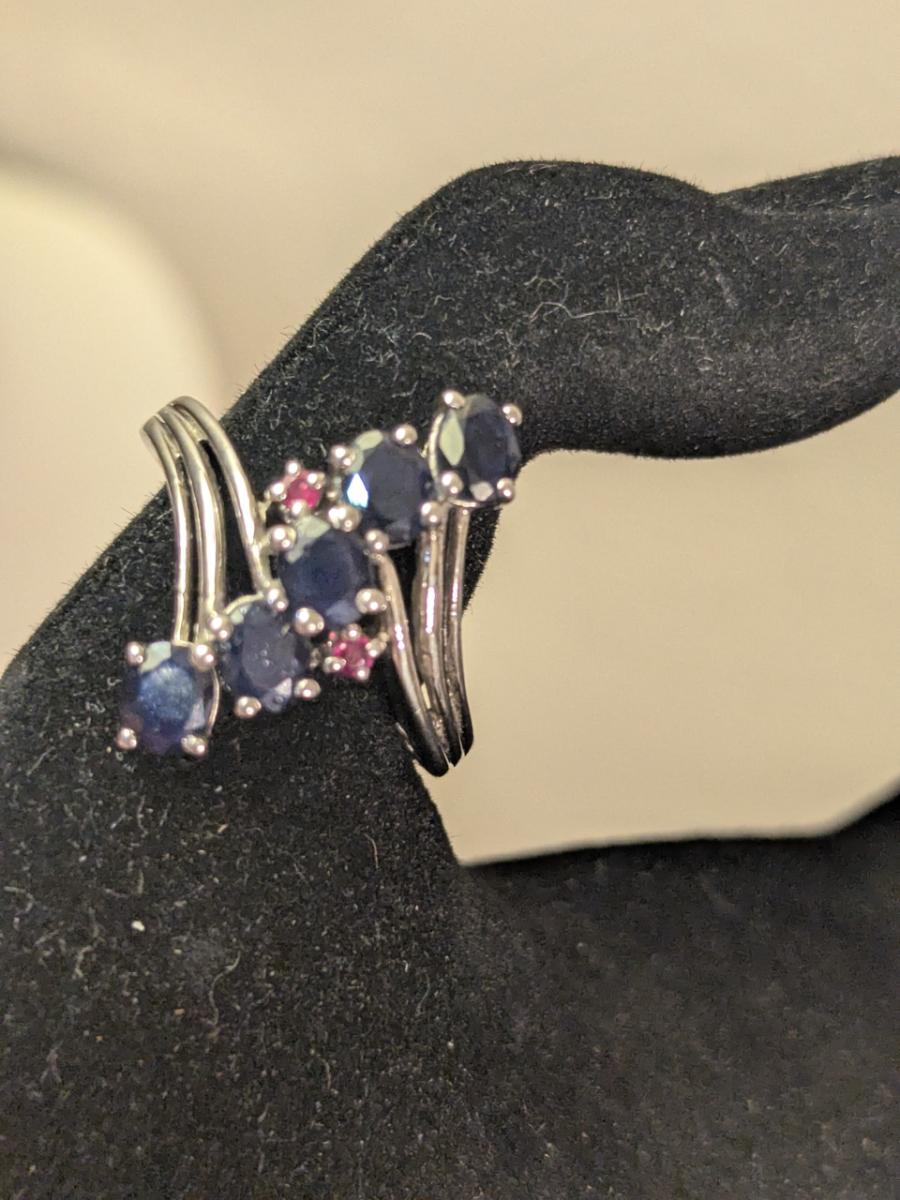 925 silver sts ring size 8.25 dark blue stones