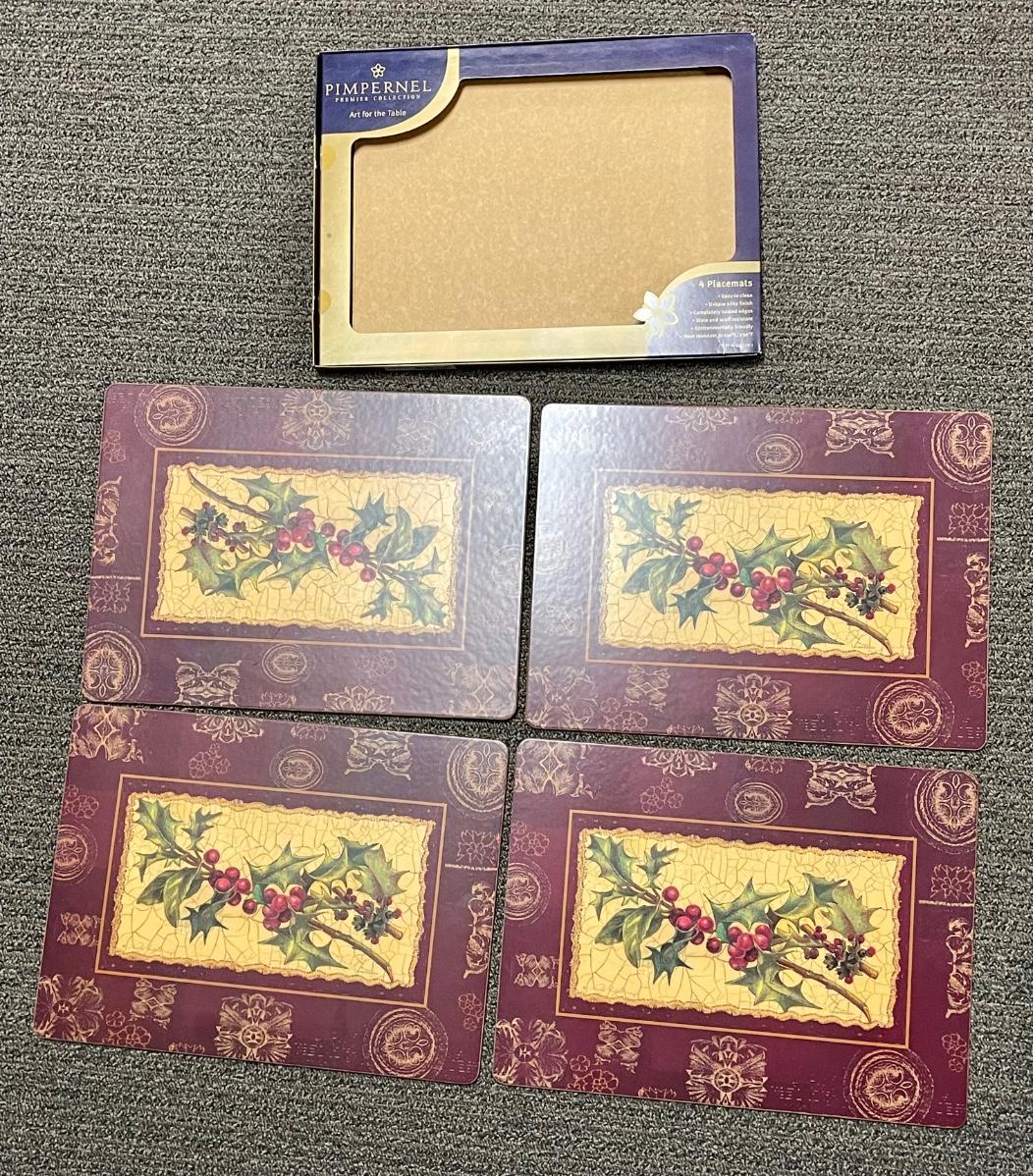 Placemats, Christmas Holiday holly  pimpernal new with box