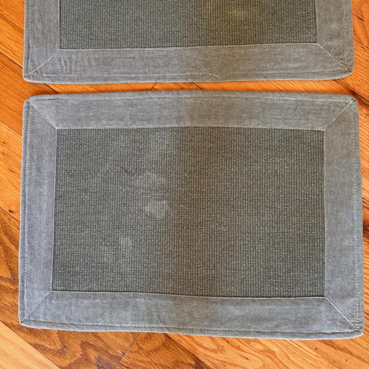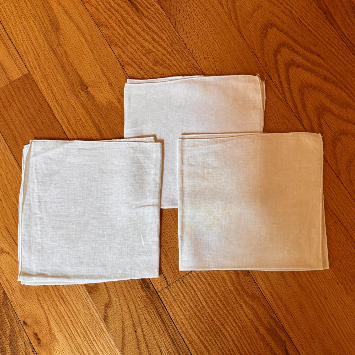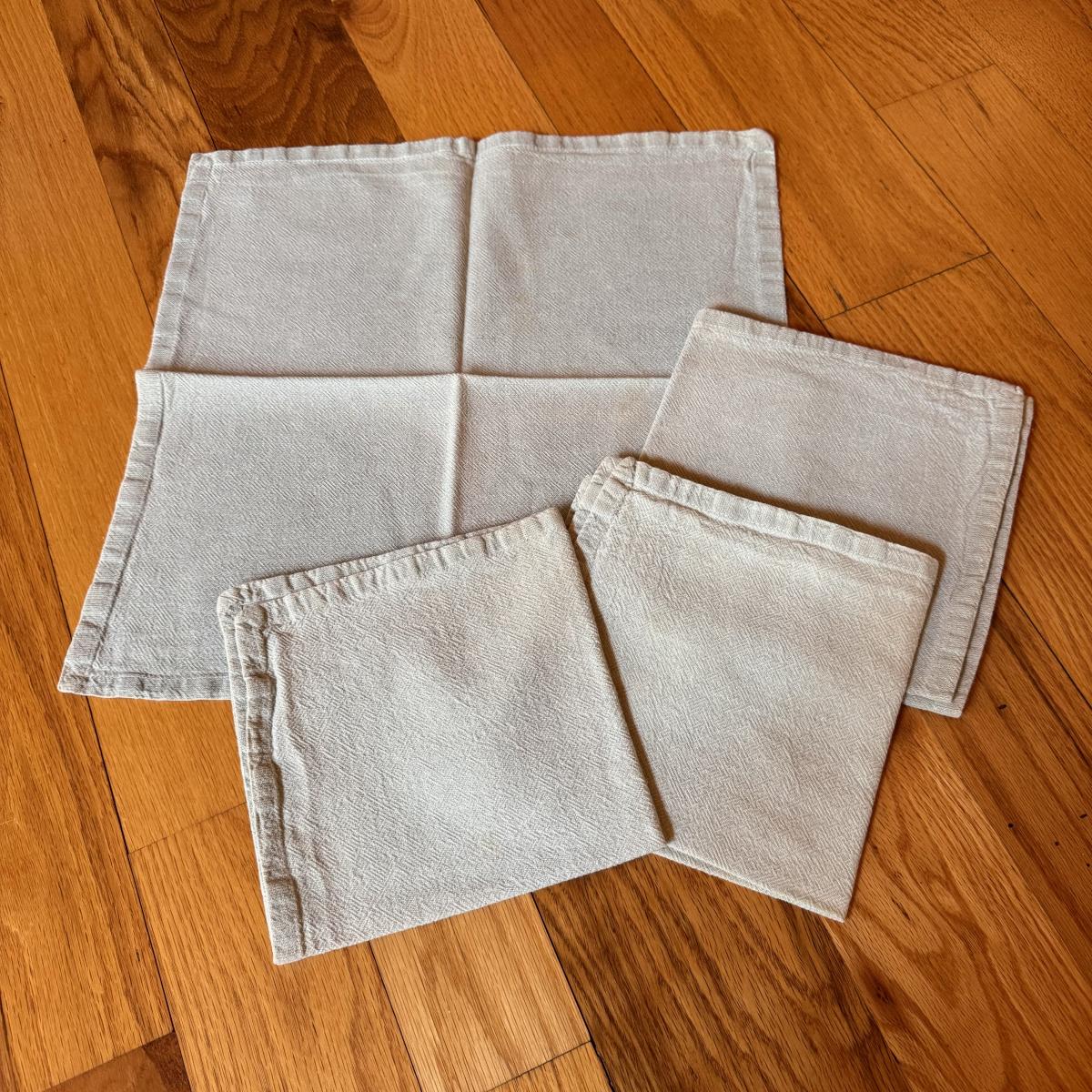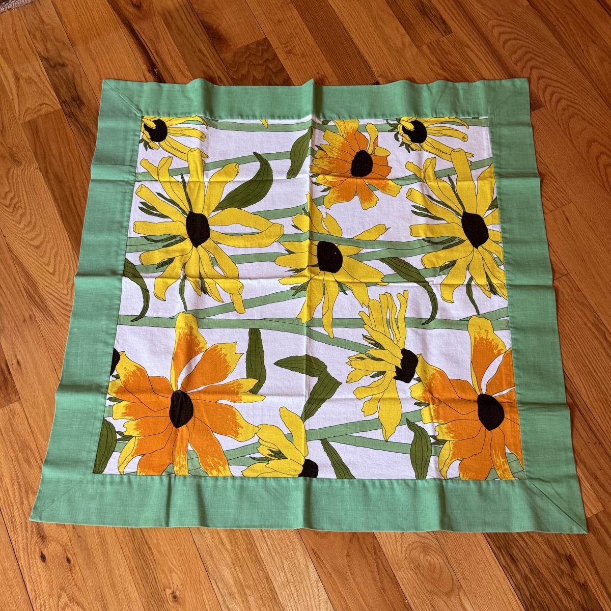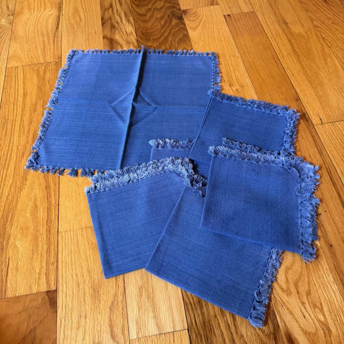This lot includes six blue, purple, and green placemats, six white with red and green stripes placemats, five white placemats with green stripes at the end, four grey/blue placemats, five purple and red placemats, four white, green, and blue striped placemats, four blue and purple placemats, one blue table runner, several linen napkins in various colors, four floral placemats, one floral tablecloth, and so much more. The floral table cloth with the green trim is a square that measures 41” on all sides. There are four pewter napkin rings in the lot. Please note there are a few stains on some of the placemats - see pictures included. Shipping available.