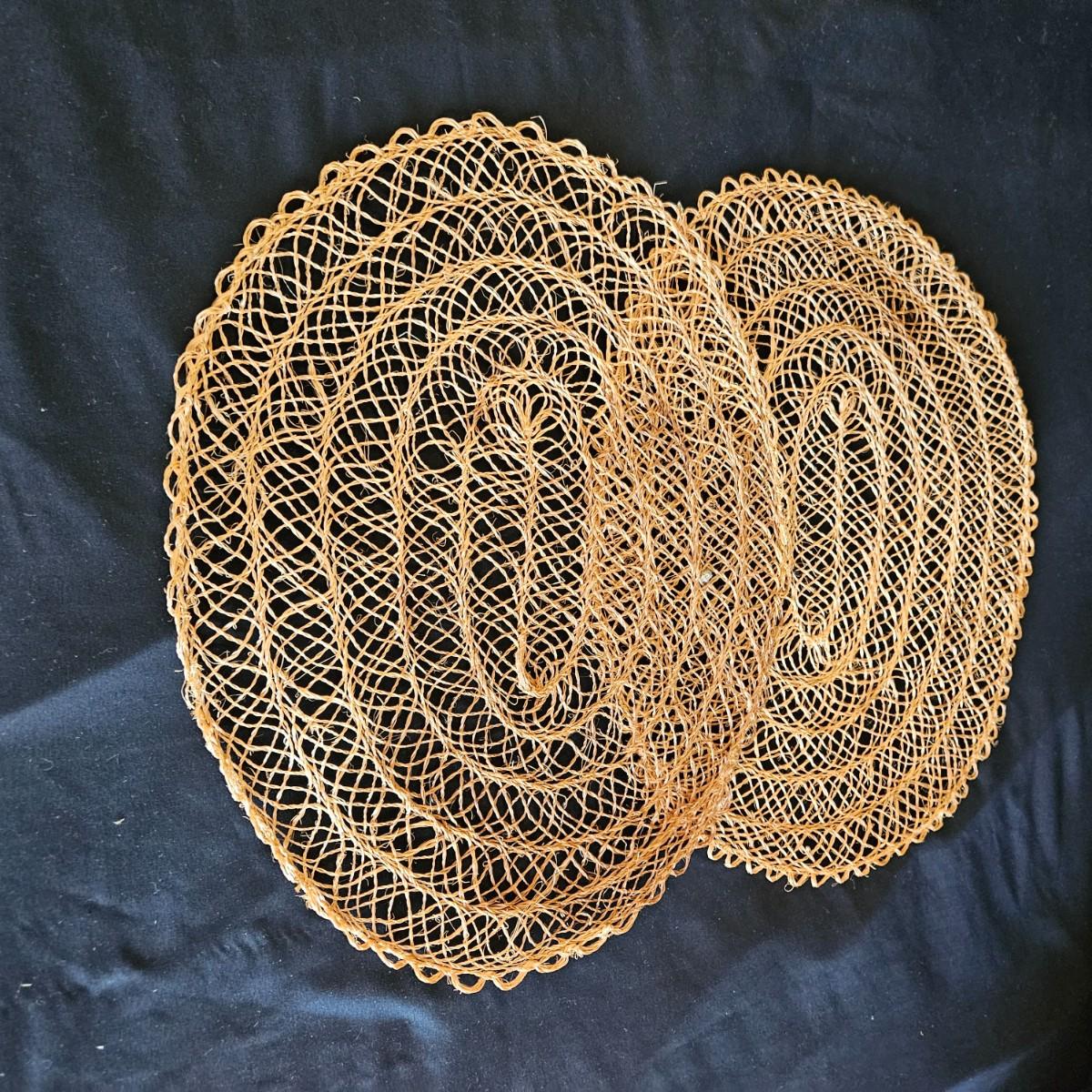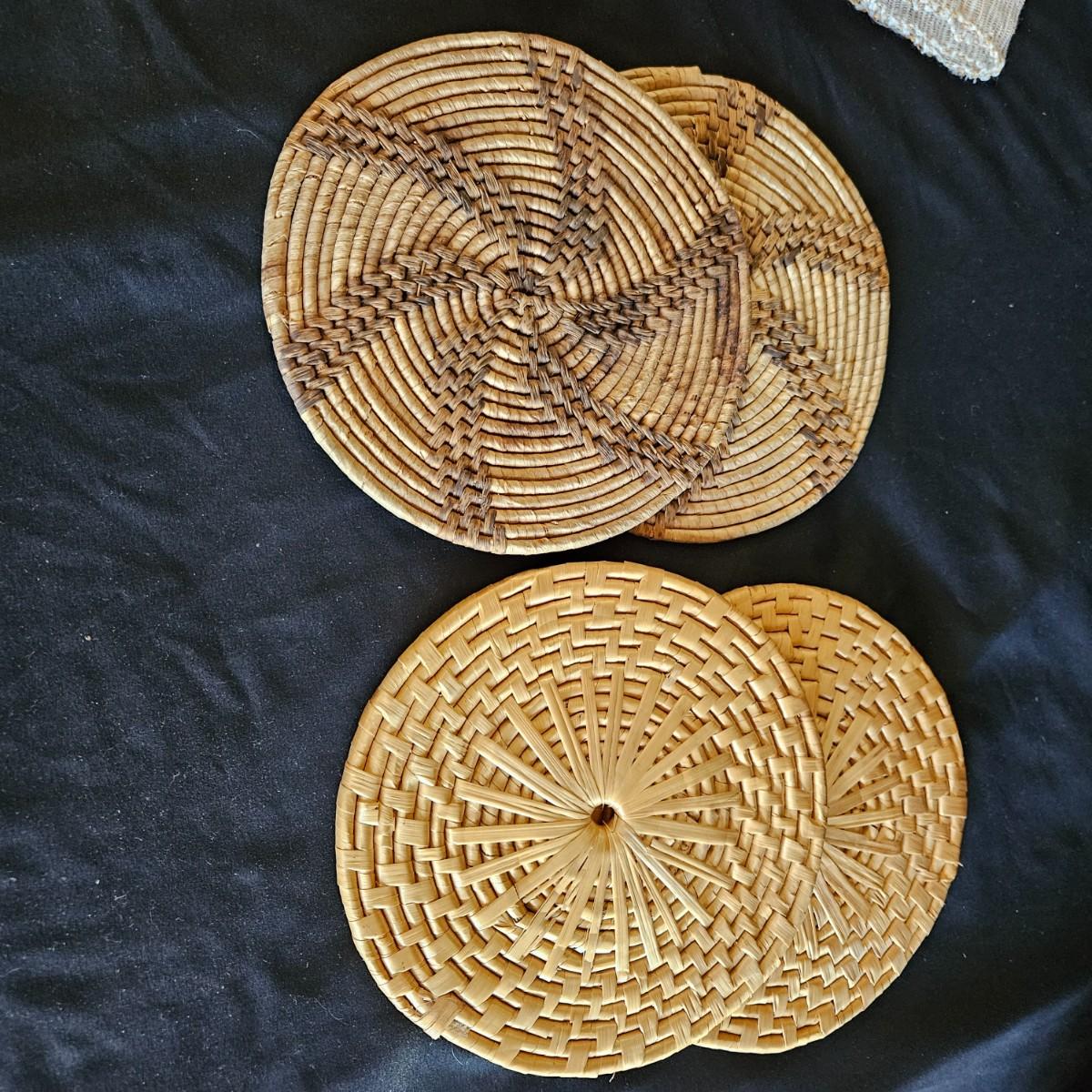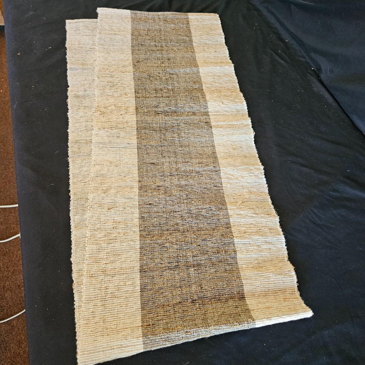 An assortment of placemats, table runners and trivets in a variety of styles and materials. The average size of the table runners is 72" x 14" and they are linen and bamboo. Also includes a variety of placemats, some are woven rush and grass, linen and fabric. The trivets are made of wood and woven rush. Shipping available