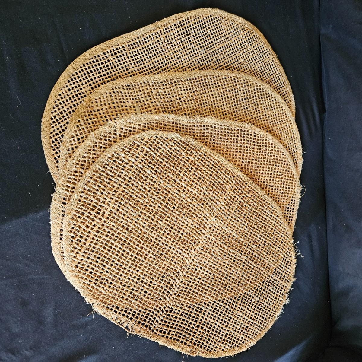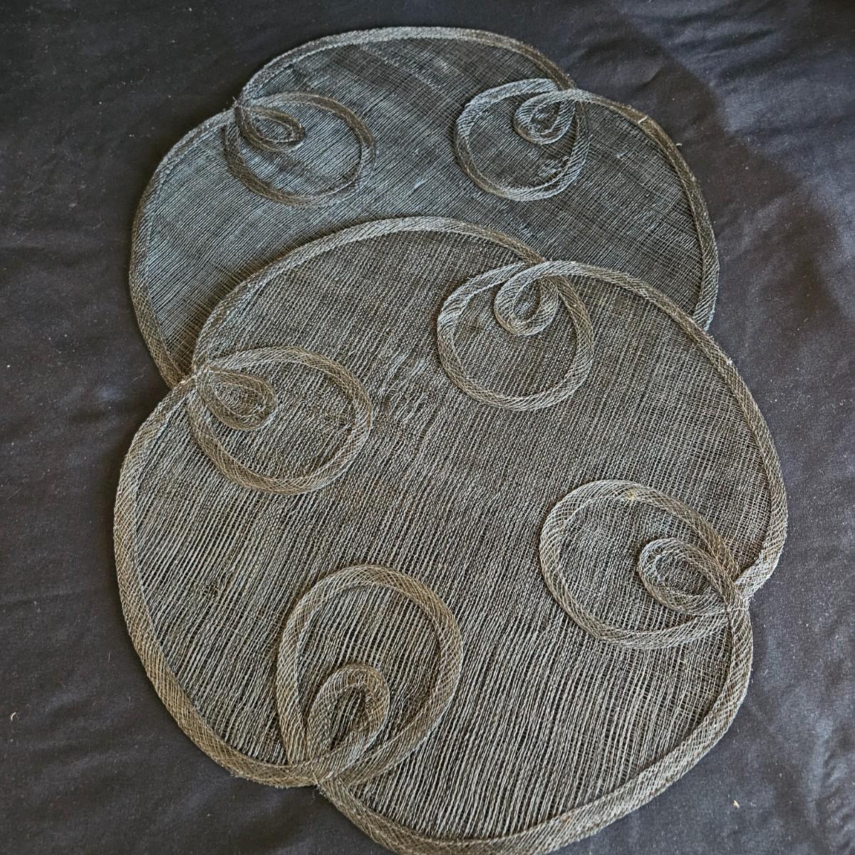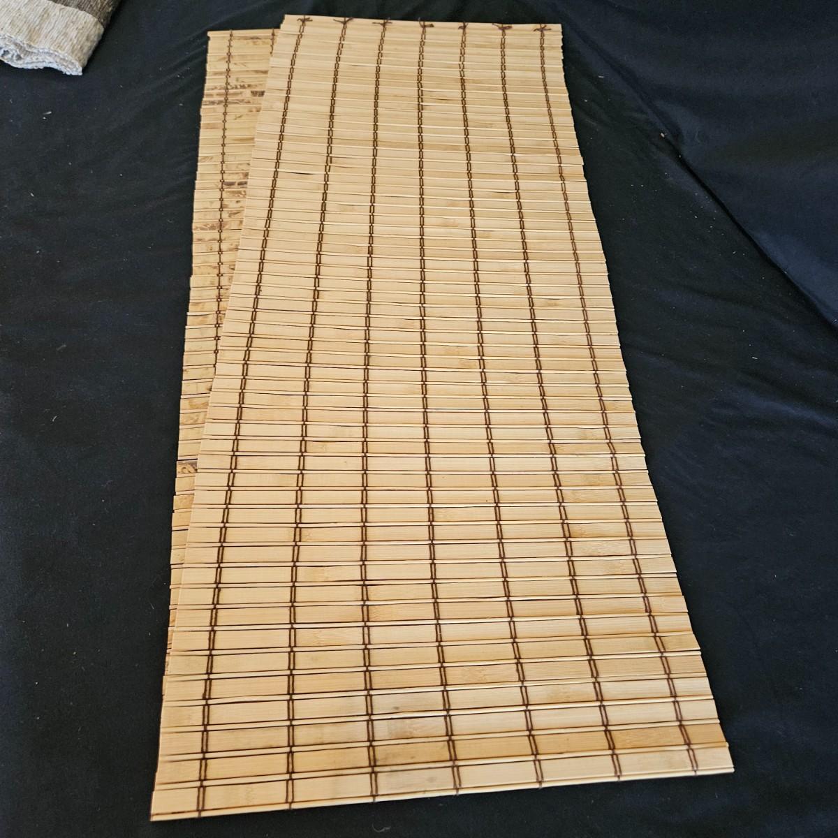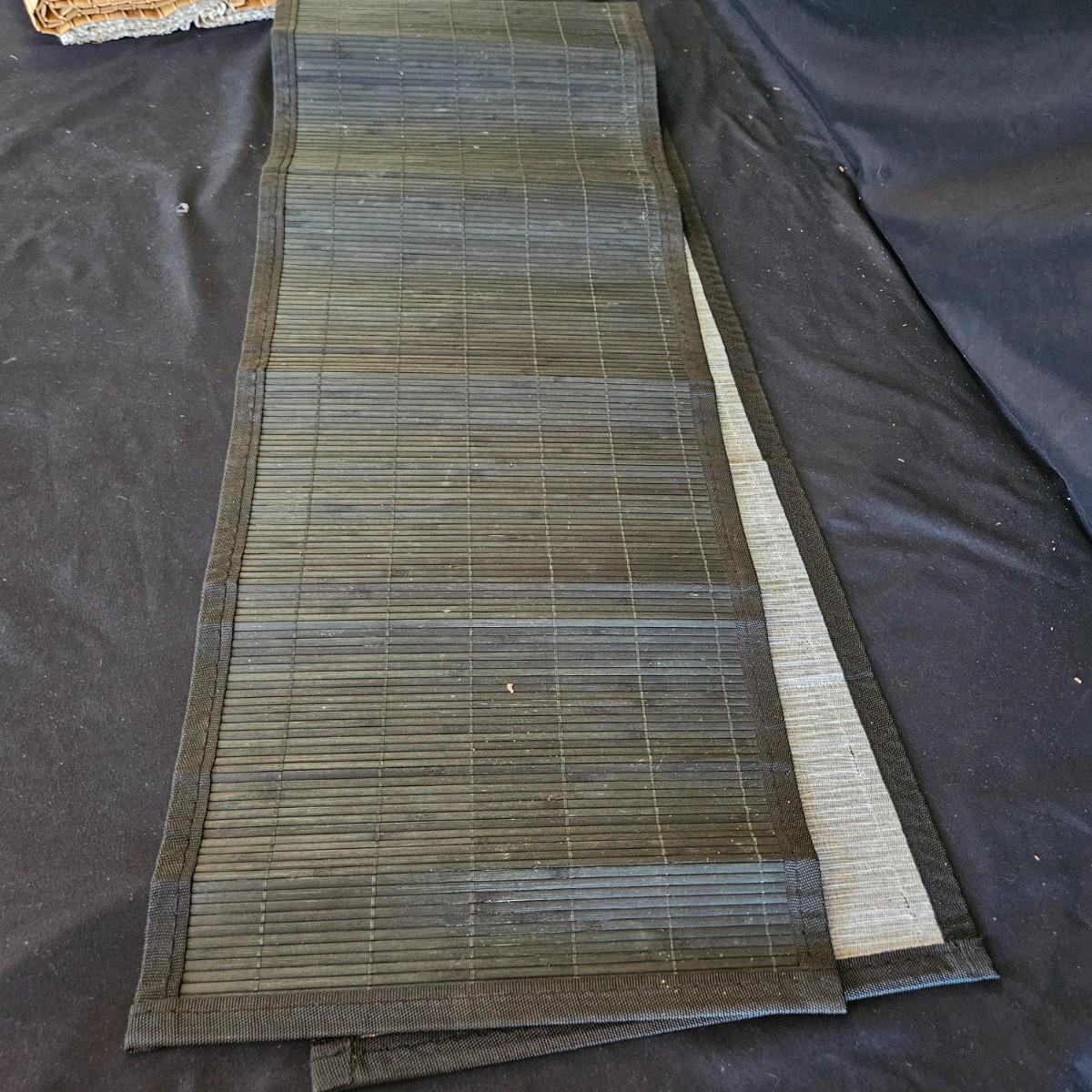 An assortment of placemats, table runners and trivets in a variety of styles and materials. The average size of the table runners is 72" x 14" and they are linen and bamboo. Also includes a variety of placemats, some are woven rush and grass, linen and fabric. The trivets are made of wood and woven rush. Shipping available