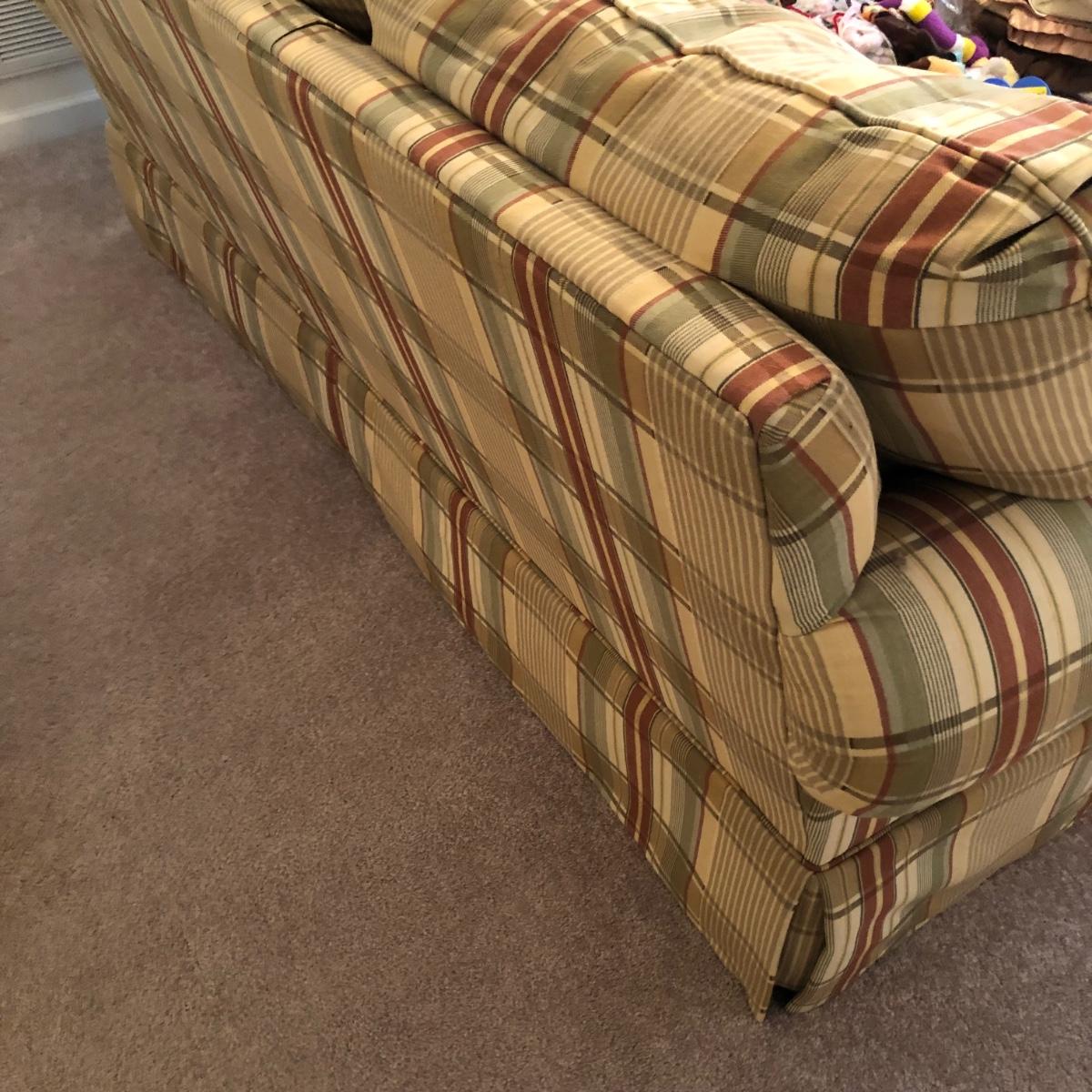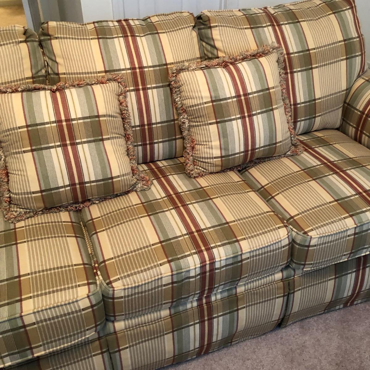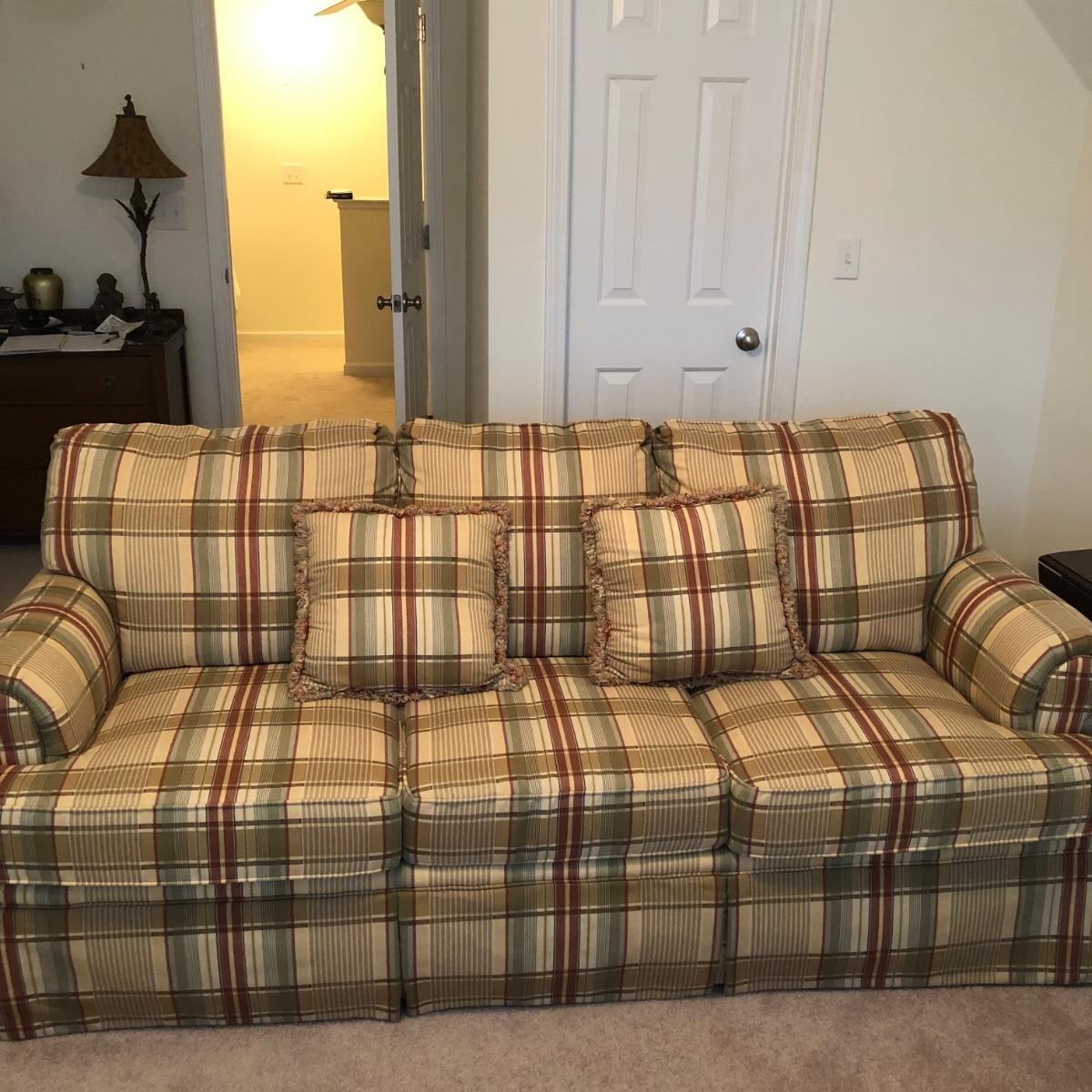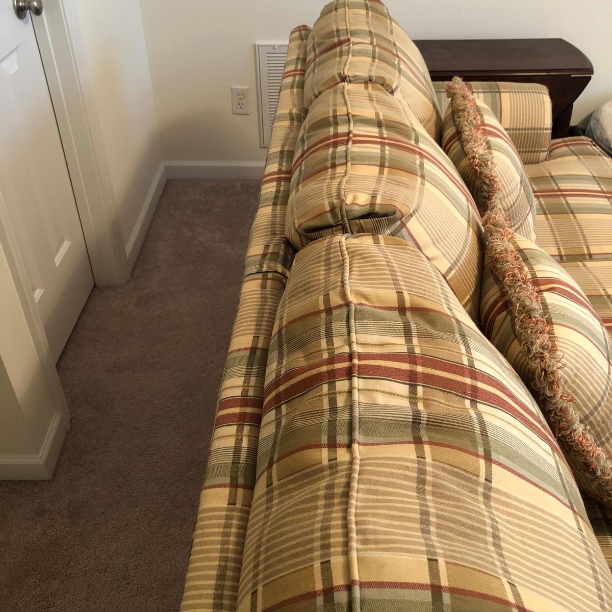 Couch is in excellent condition; there are no stains tears or odors. The couch comes with two throw cushions and measures 81” x 36” x 35”. Note warranty. Couch is located upstairs; please bring help to load it. Local pick up only.
