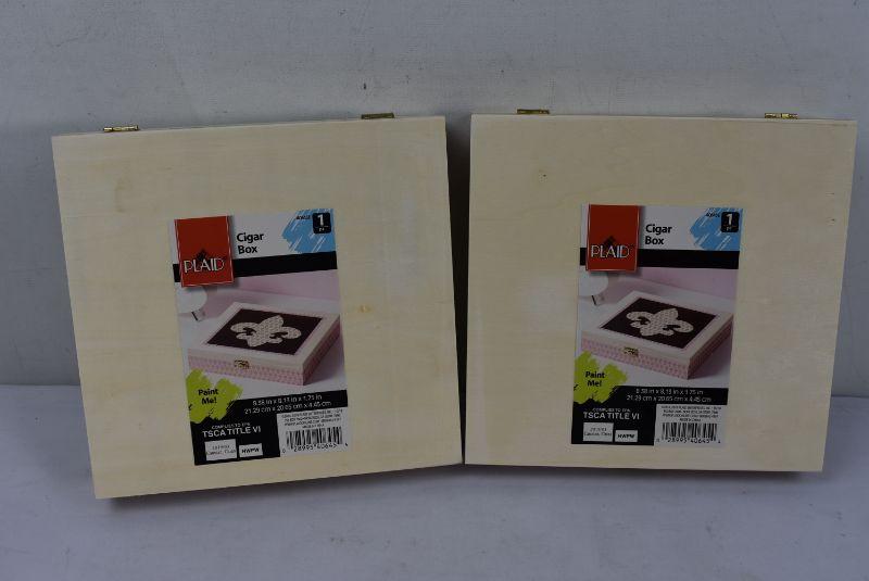 Plaid Wood Surfaces 8.38" x 8.13" x 1.75" Hinged Cigar Boxes, Quantity 2 - New