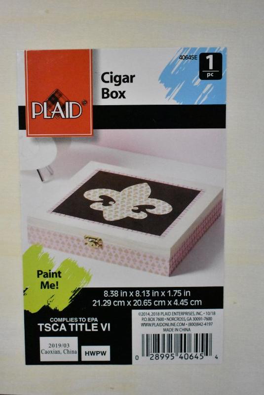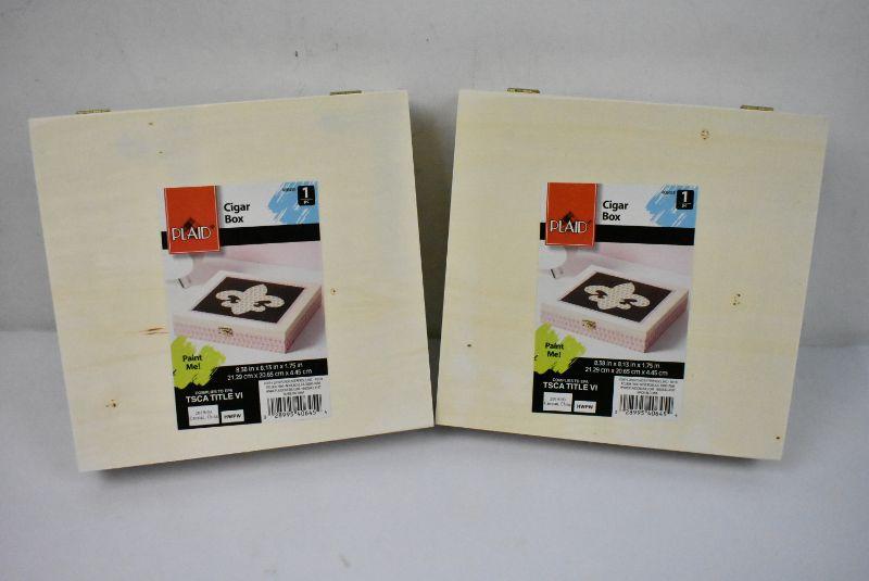 Plaid Wood Surfaces 8.38" x 8.13" x 1.75" Hinged Cigar Box, Qty 2 - New