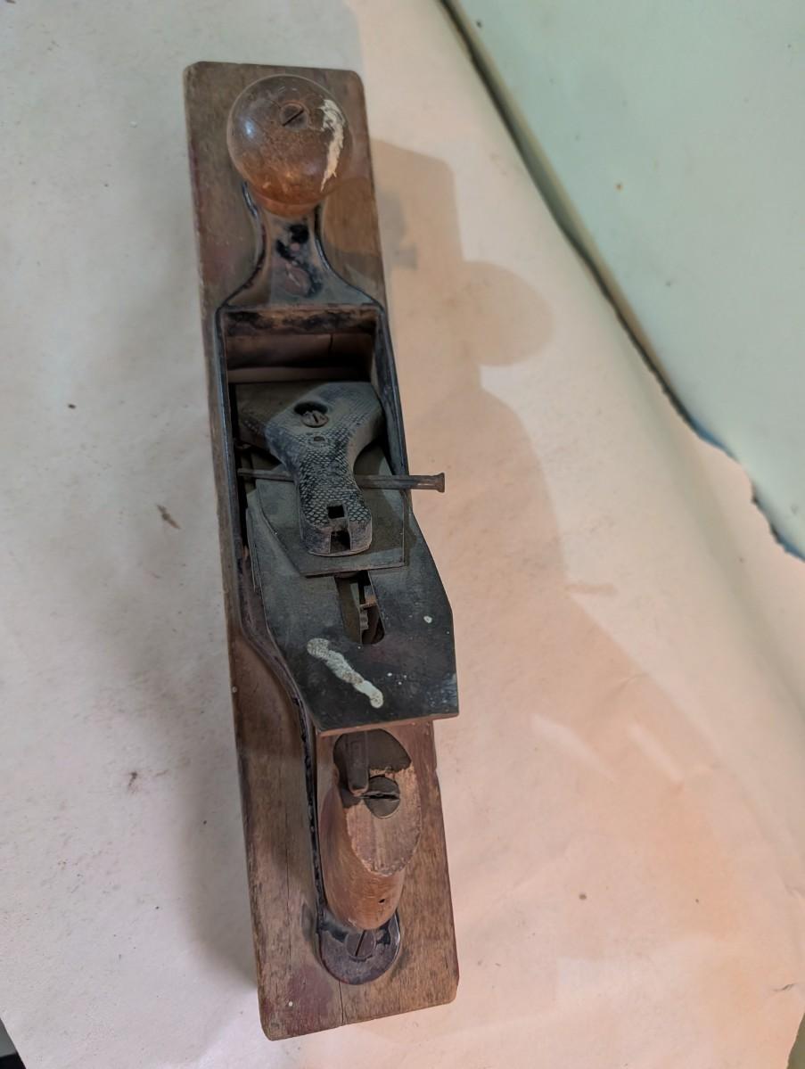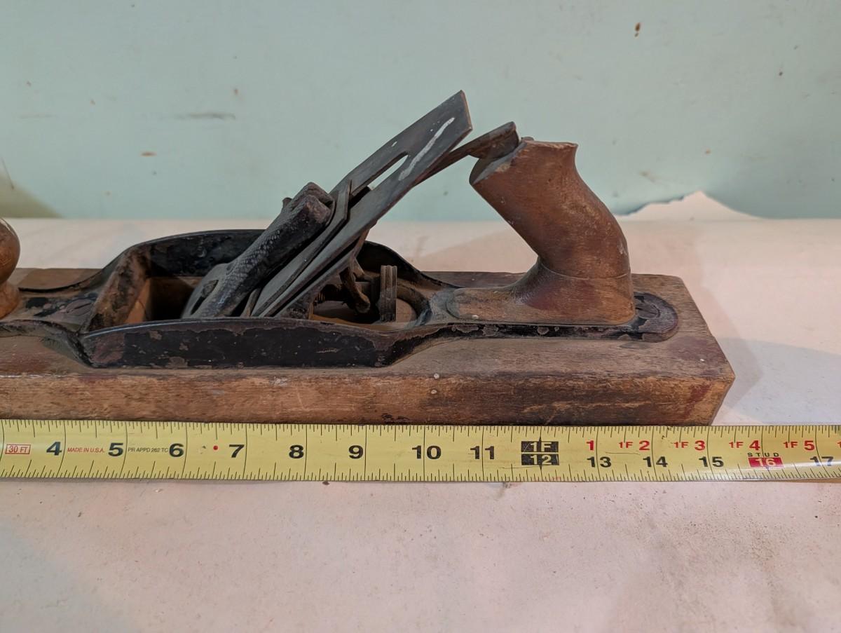 Vintage wood plane, Antique primitive carpentry tool, wood block plane.