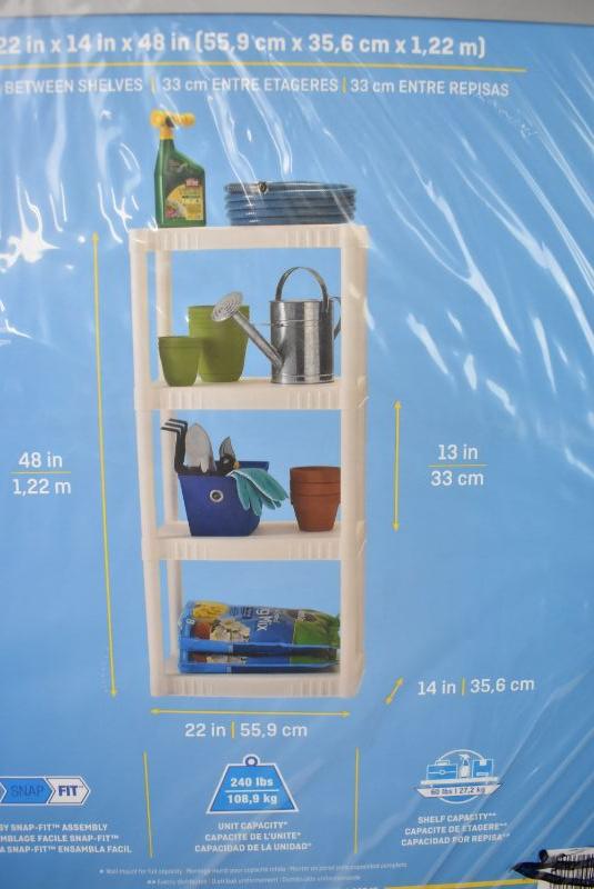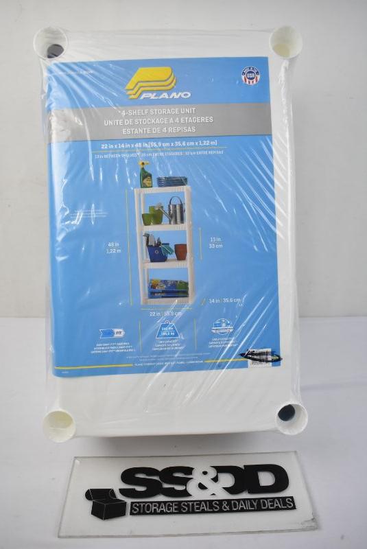 Plano 22"W x 14"D x 48"H 4-Shelf Shelving Unit, White, $15 Retail - New