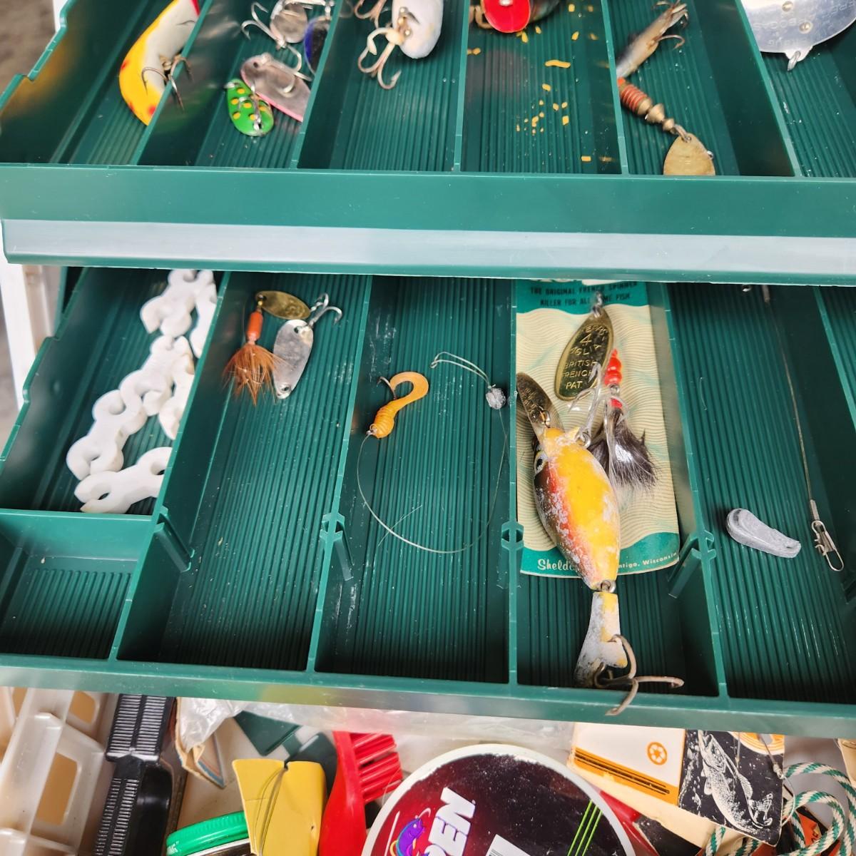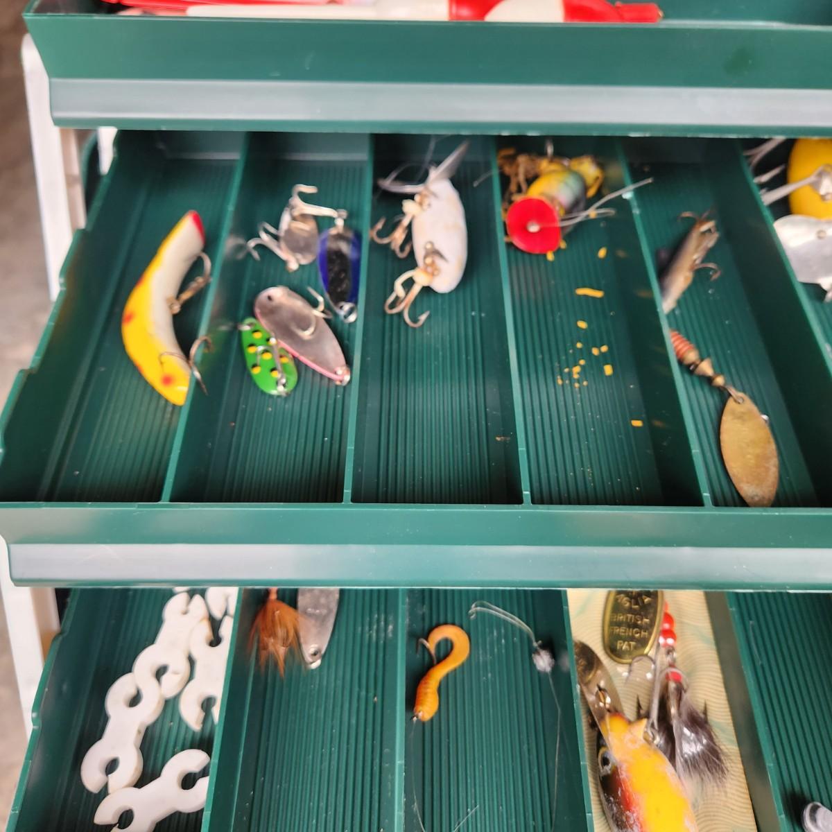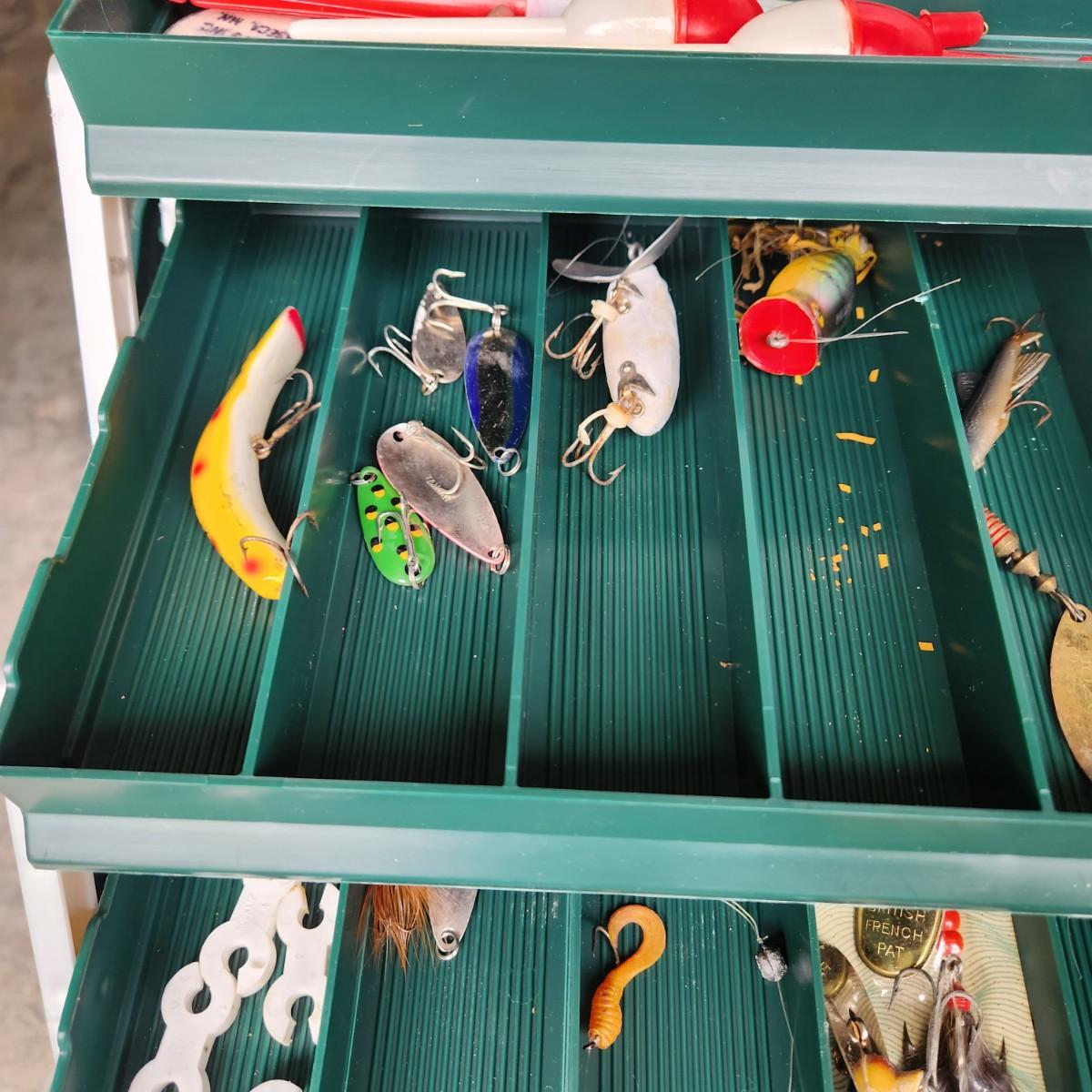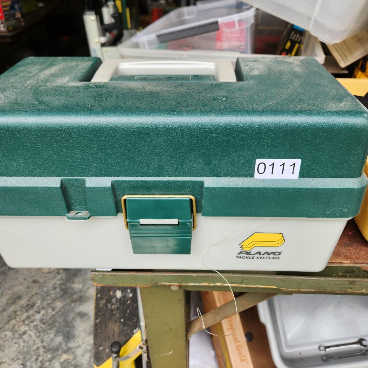 Plano Fishing Tackle Box with Contents Lures, Spinners, Bobbers