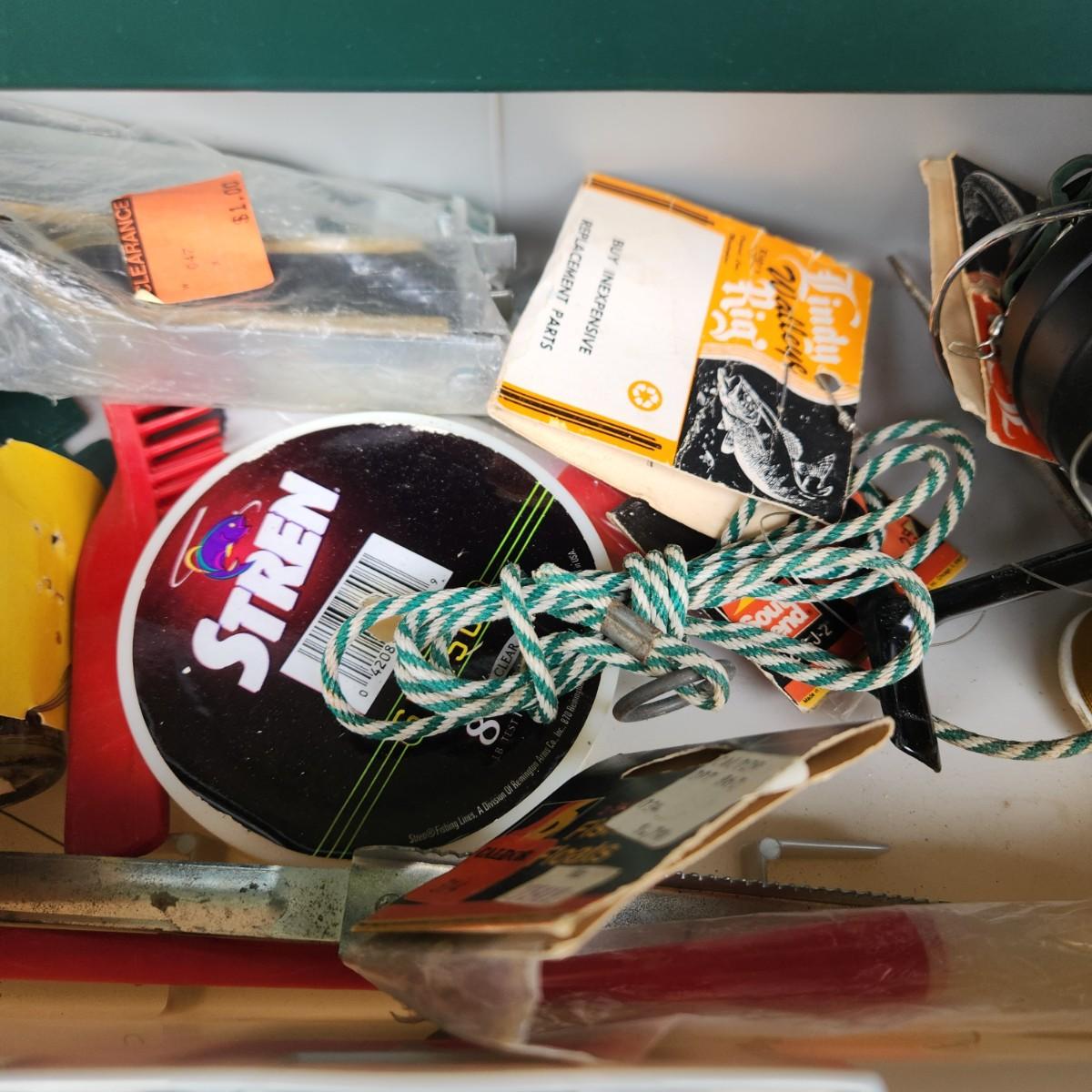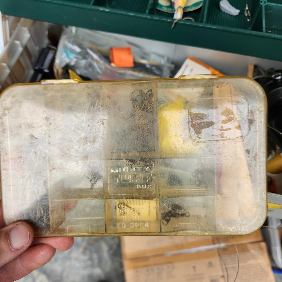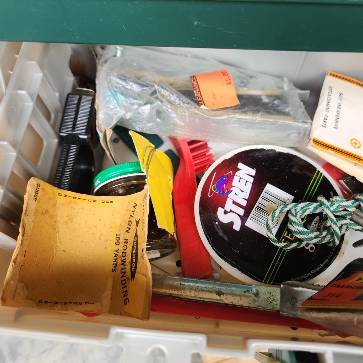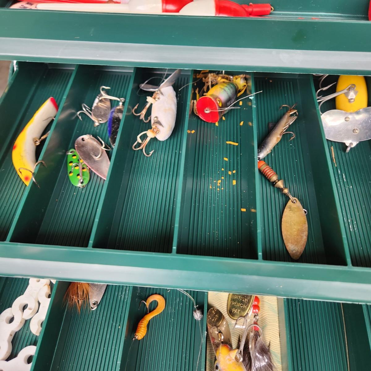 Plano Fishing Tackle Box with Contents Lures, Spinners, Bobbers