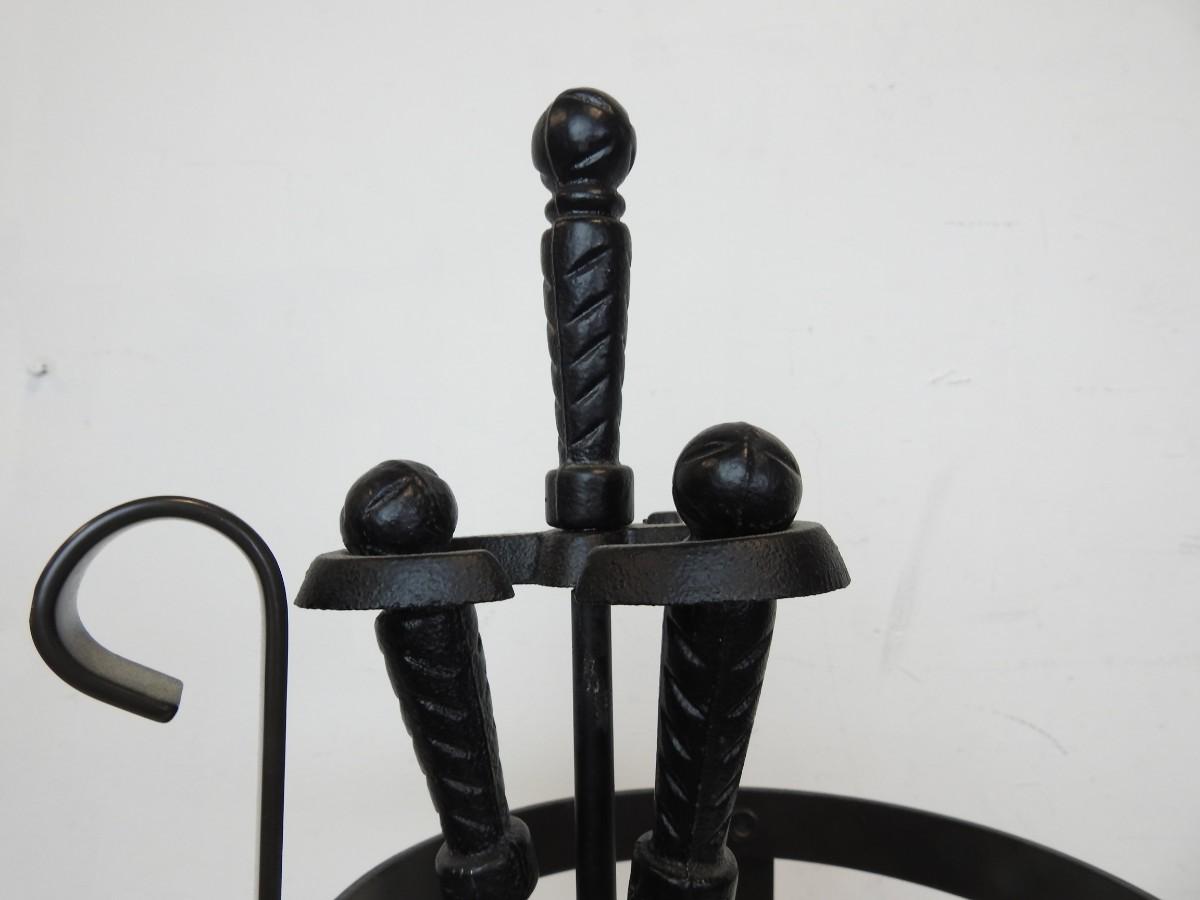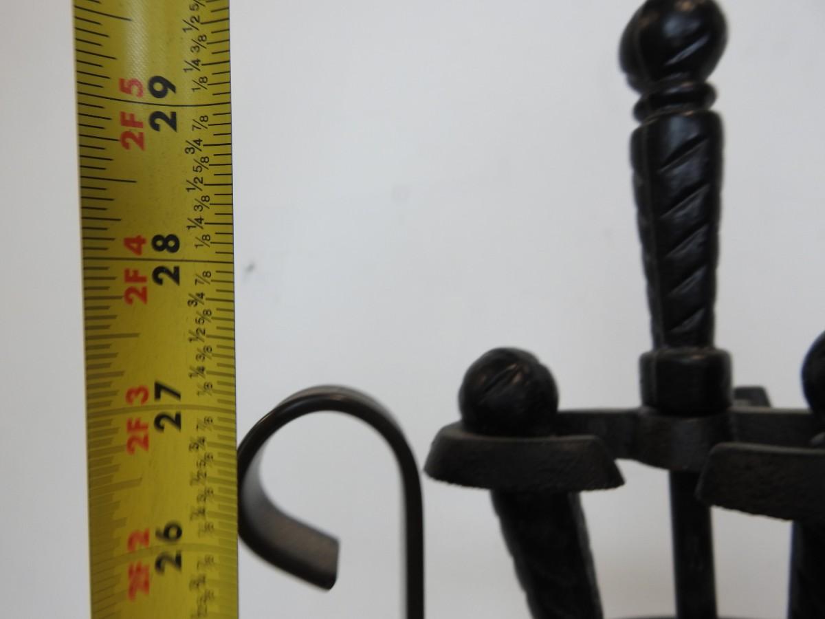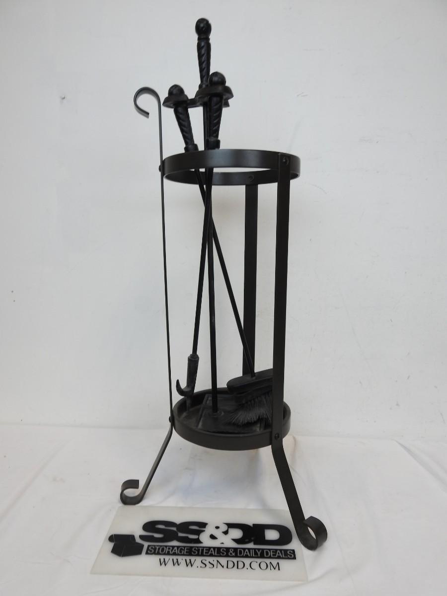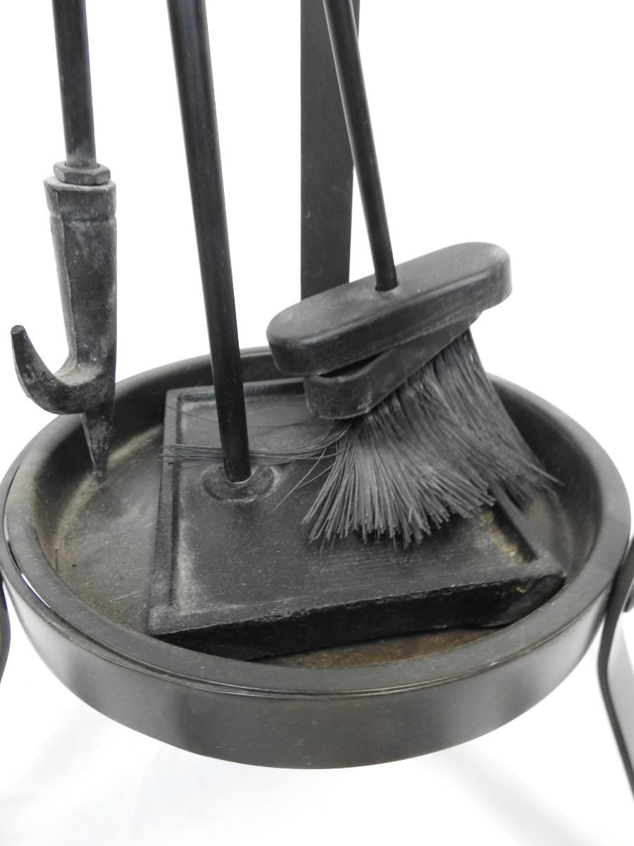 Plant Holder/Fireplace Tools Set, Black Metal, Poker, Broom, Scoop, Good Condition