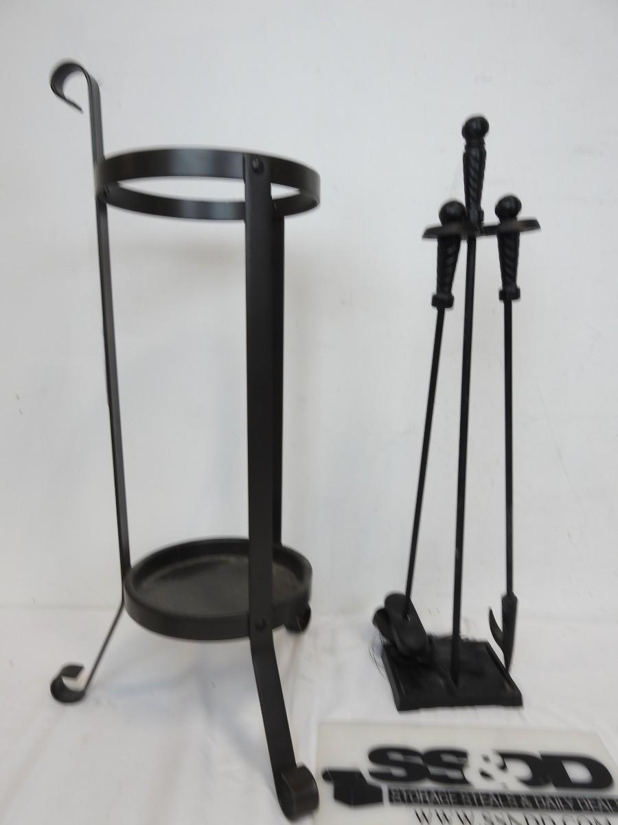 Plant Holder/Fireplace Tools Set, Black Metal, Poker, Broom,Scoop,Good Condition