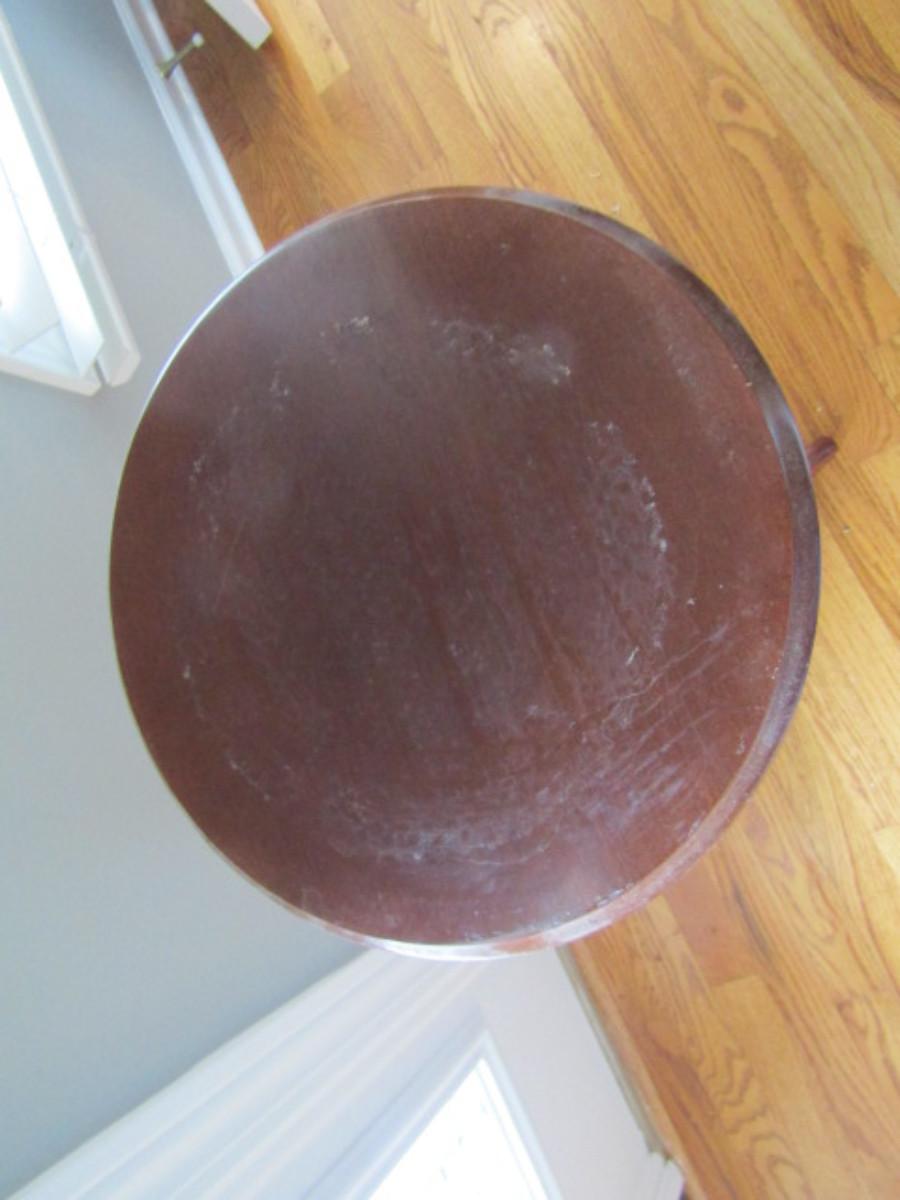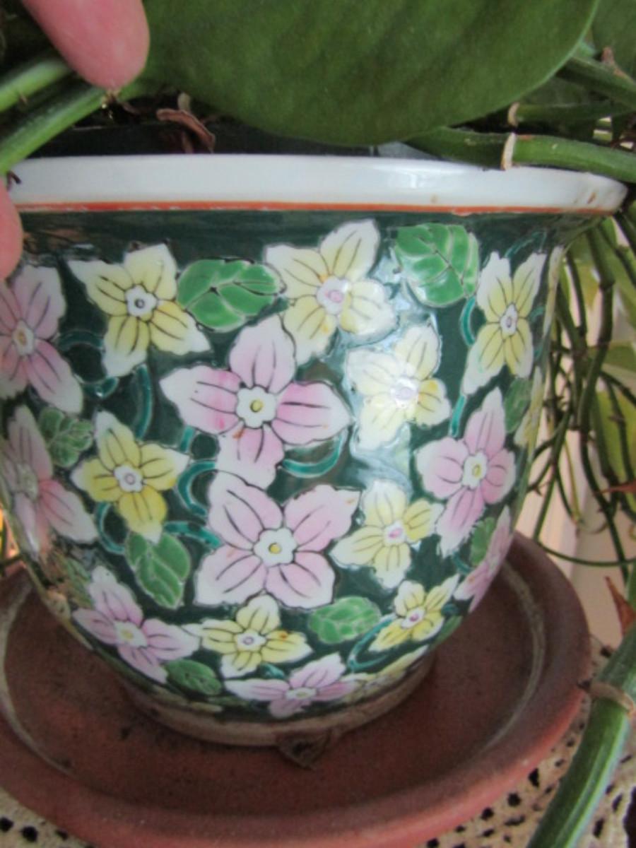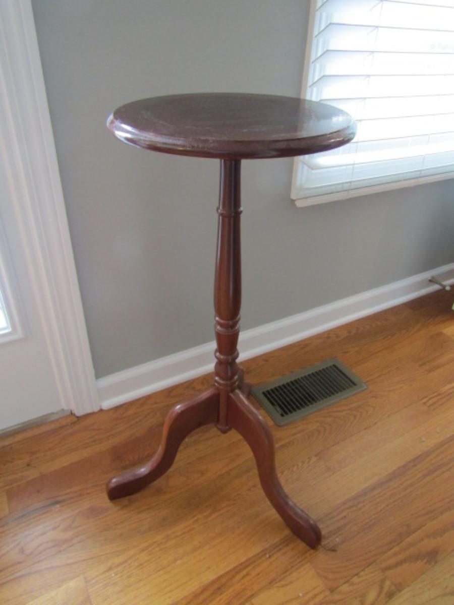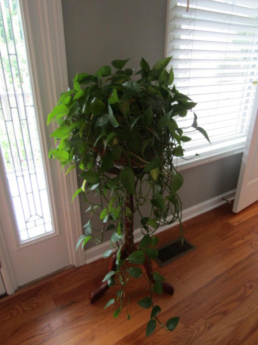 Plant in Ceramic Pot with Wood Finish Stand. Top of stand has water damage- please see all pictures.