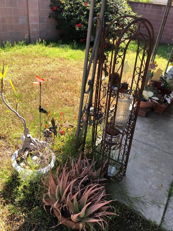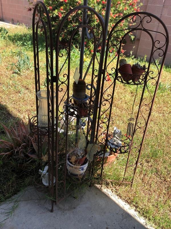 Lot of potted plants. Included is a folding plant stand that can hold 6 pots.