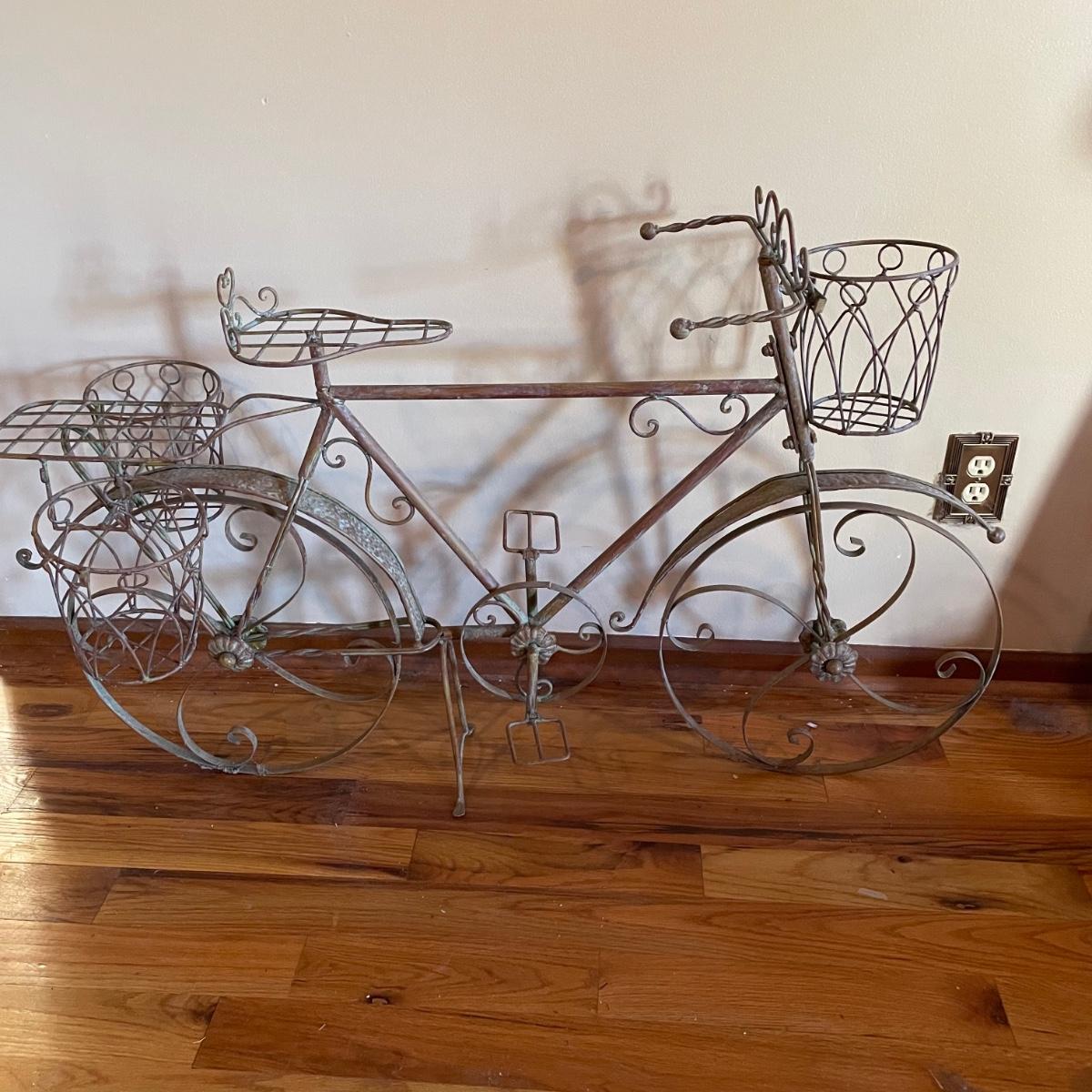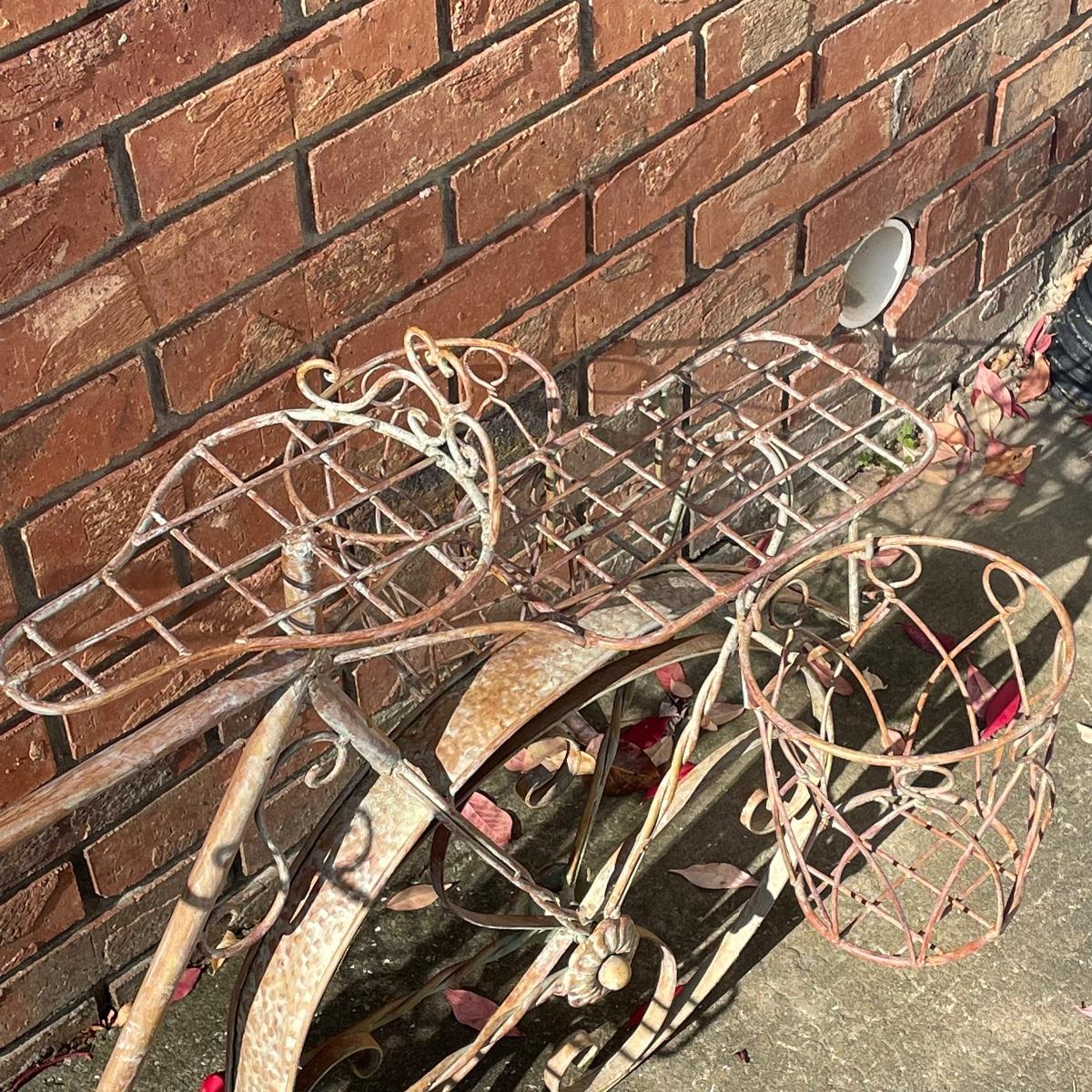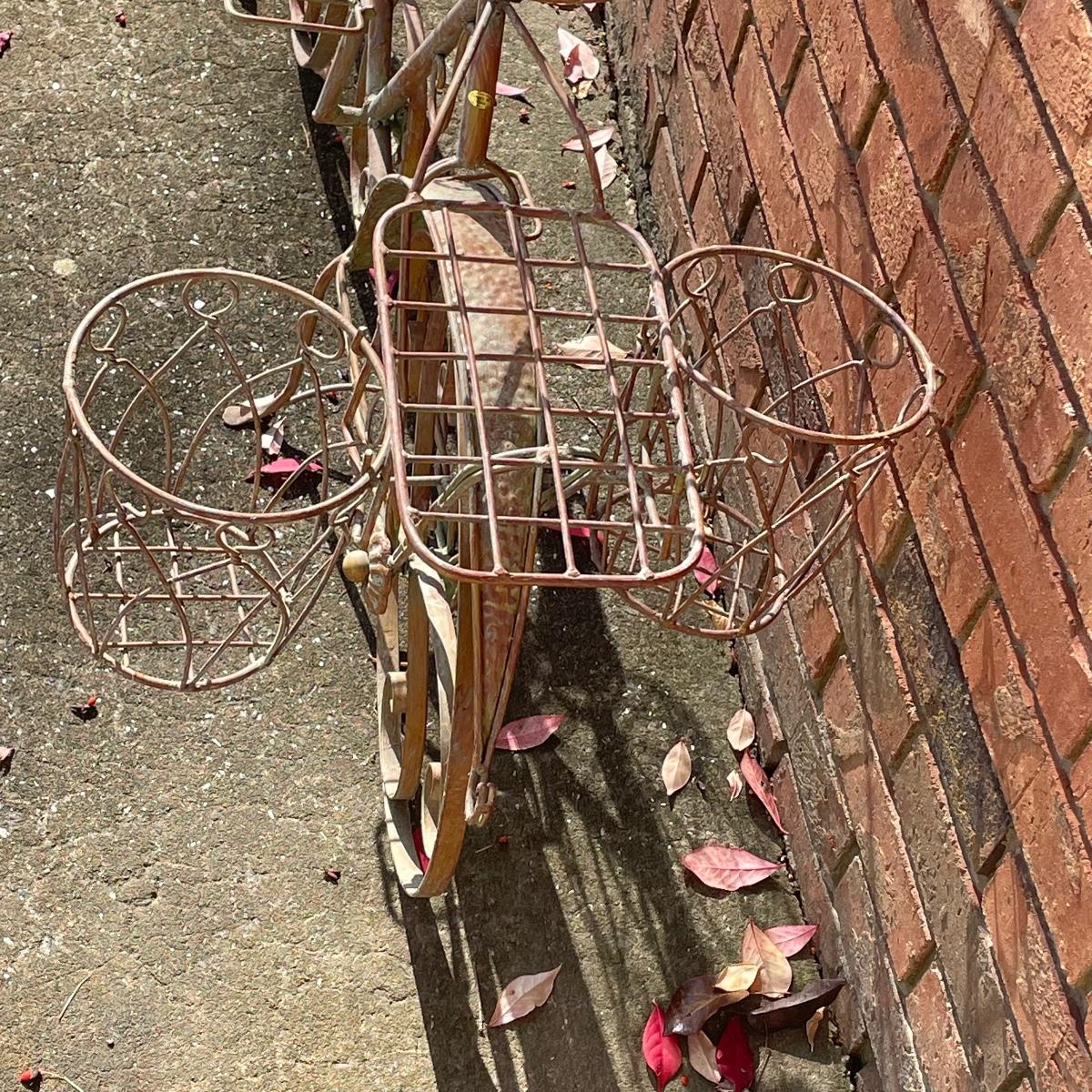 This fun vintage-like bicycle isn’t made for the roads! It contains three baskets for plant pots plus a further four areas to place more pots. It measures 45” long x 29” high and has a rustic brown and green (similar to an oxidized copper) design.