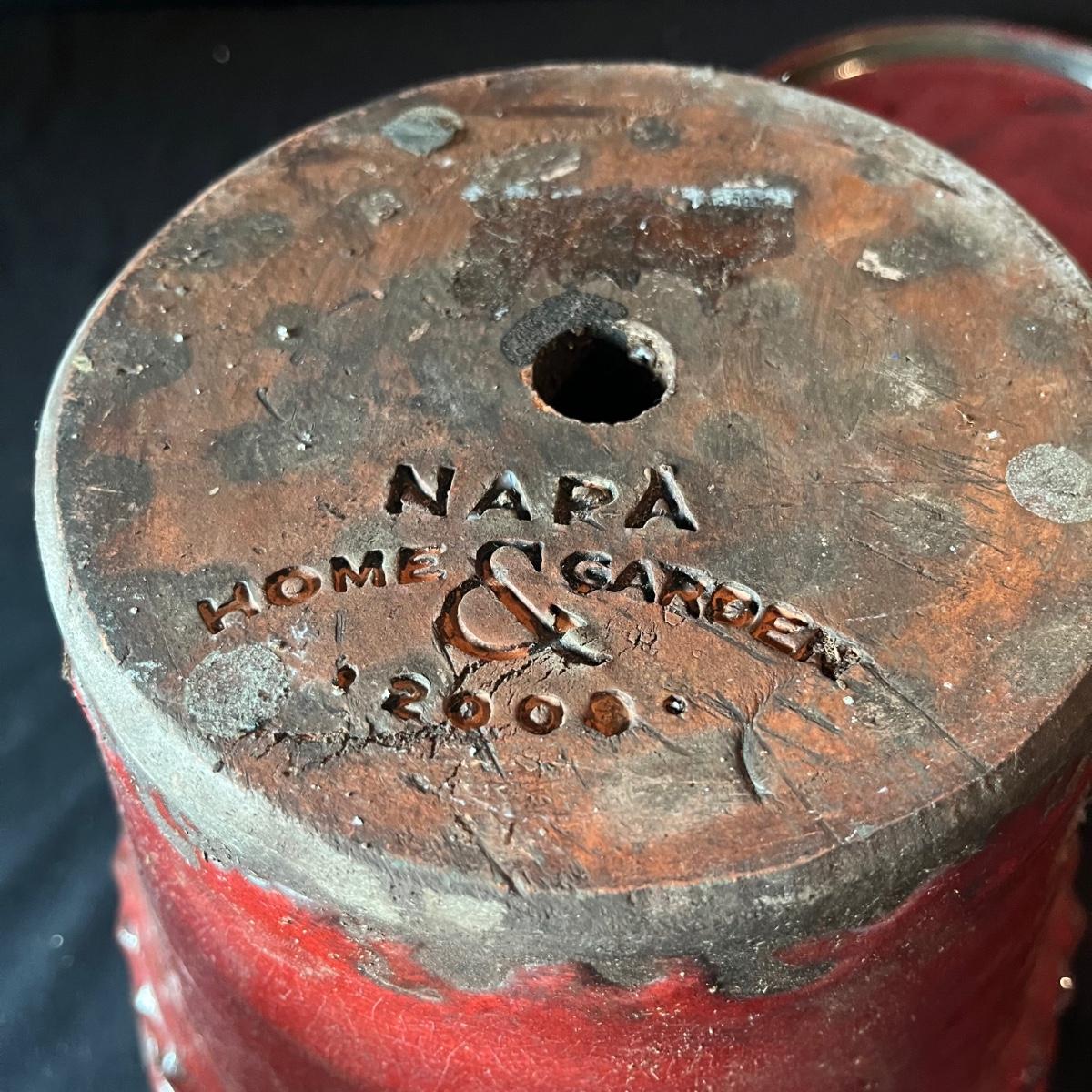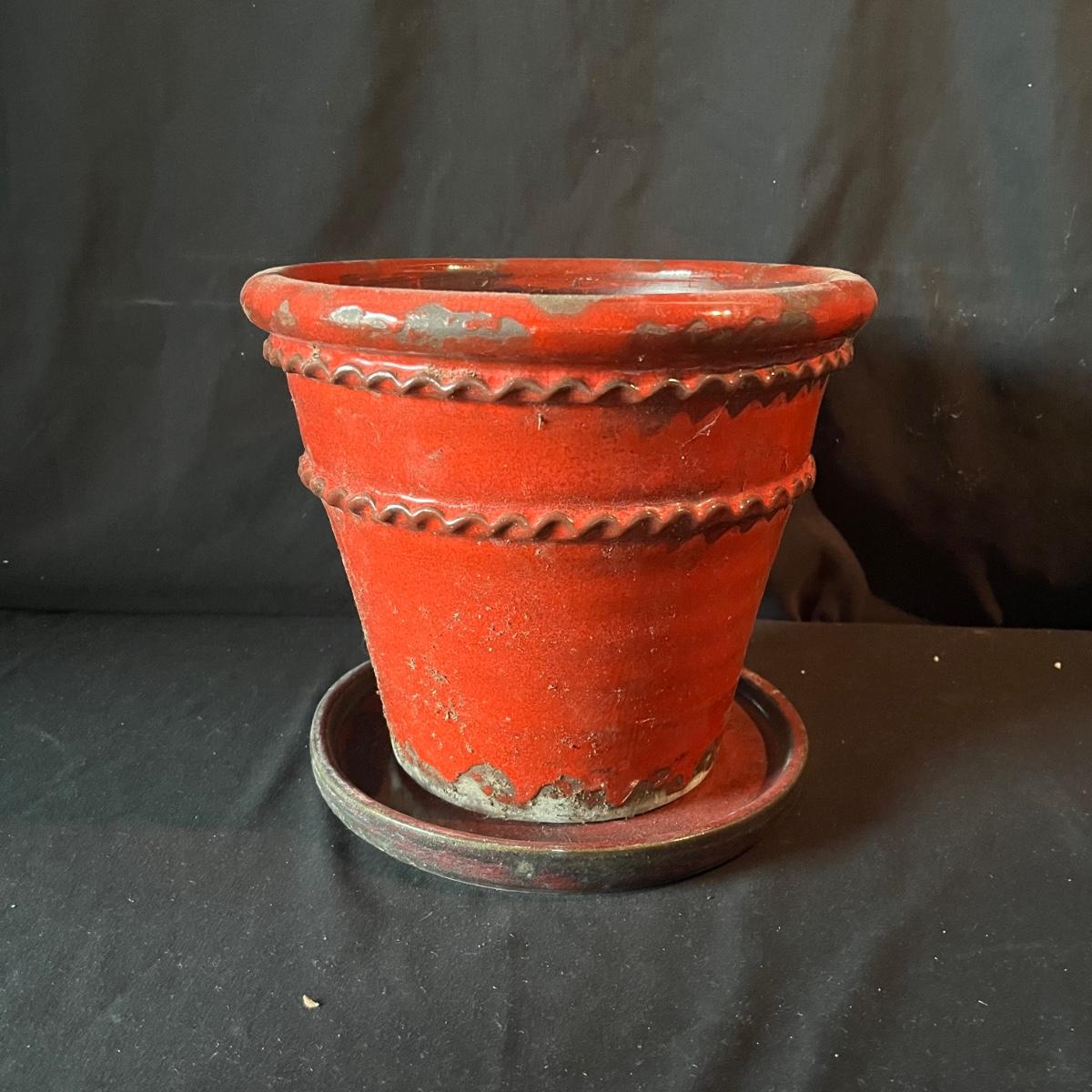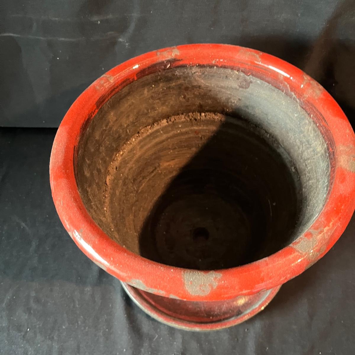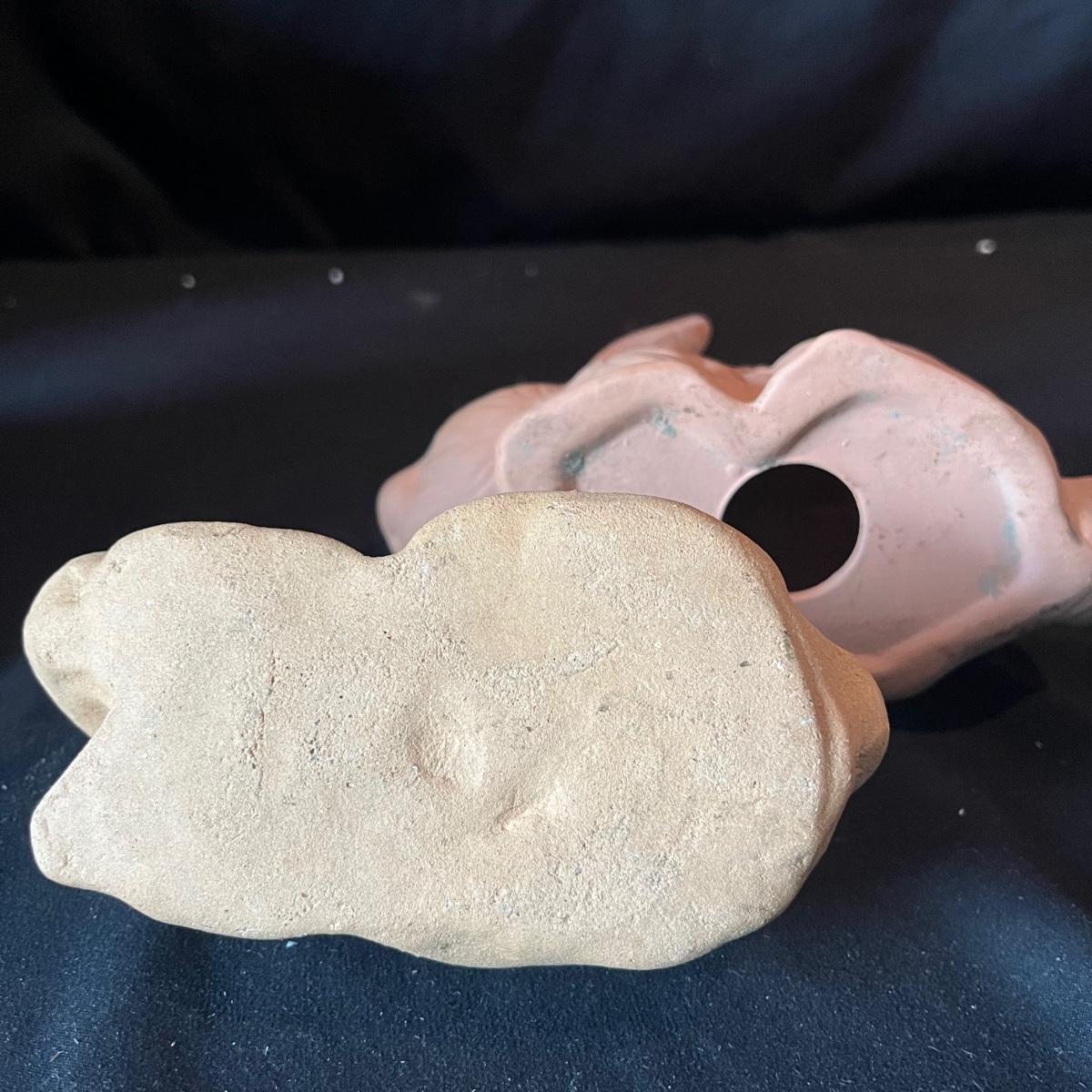 Lot includes pot from Napa home and garden with plate, unmarked blue plant pot with plate, sheep decoration, and two rabbits for decoration. Blue pot measures 9”D x 9.6” tall.