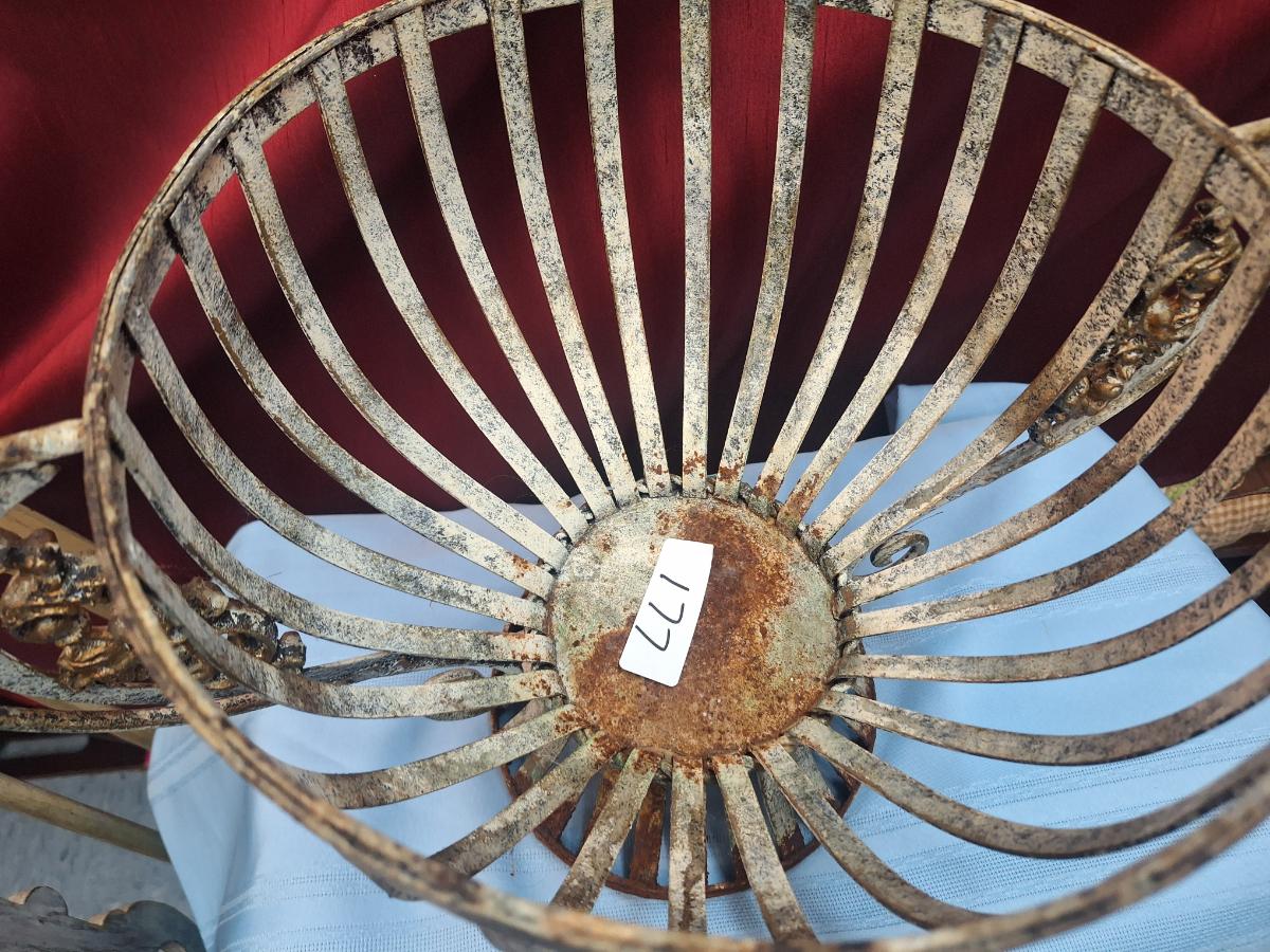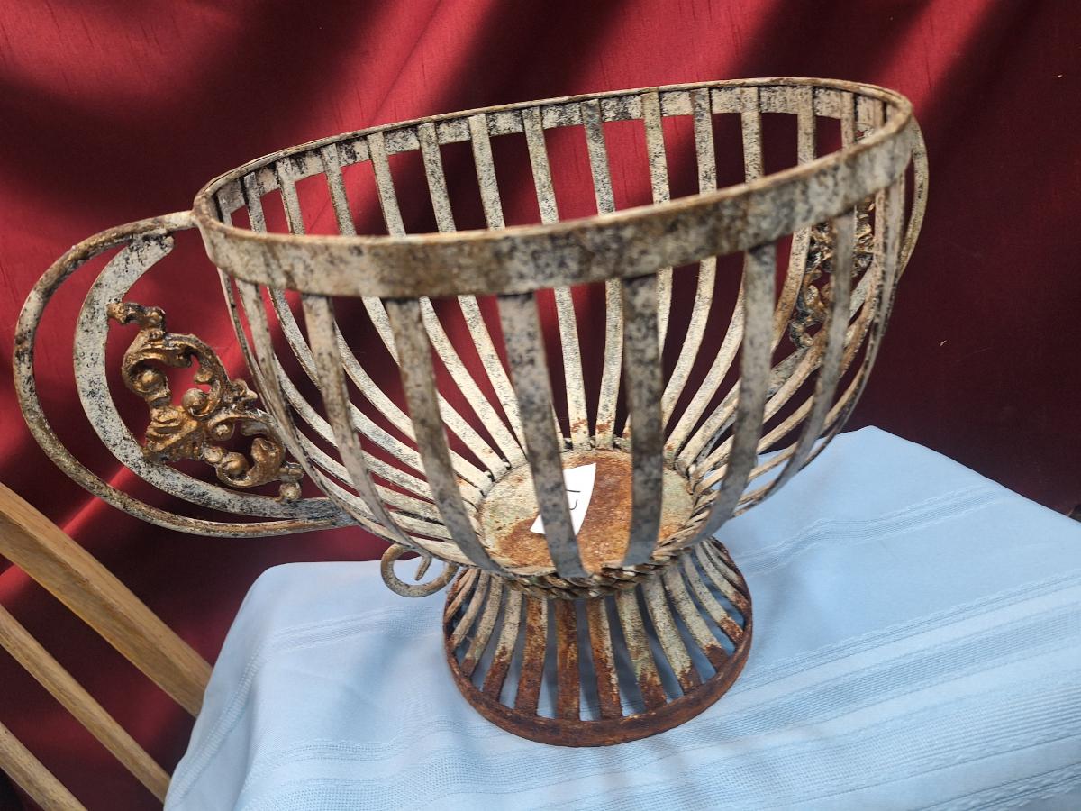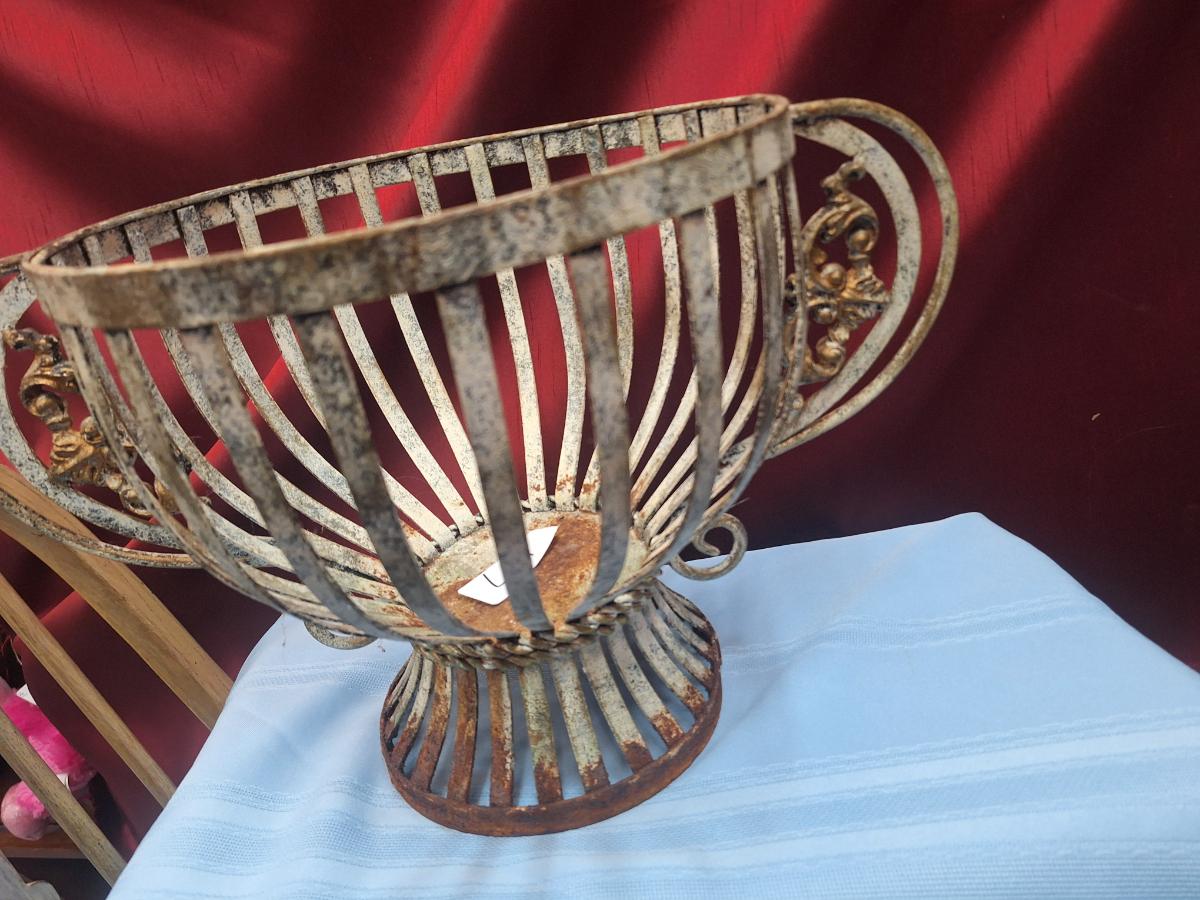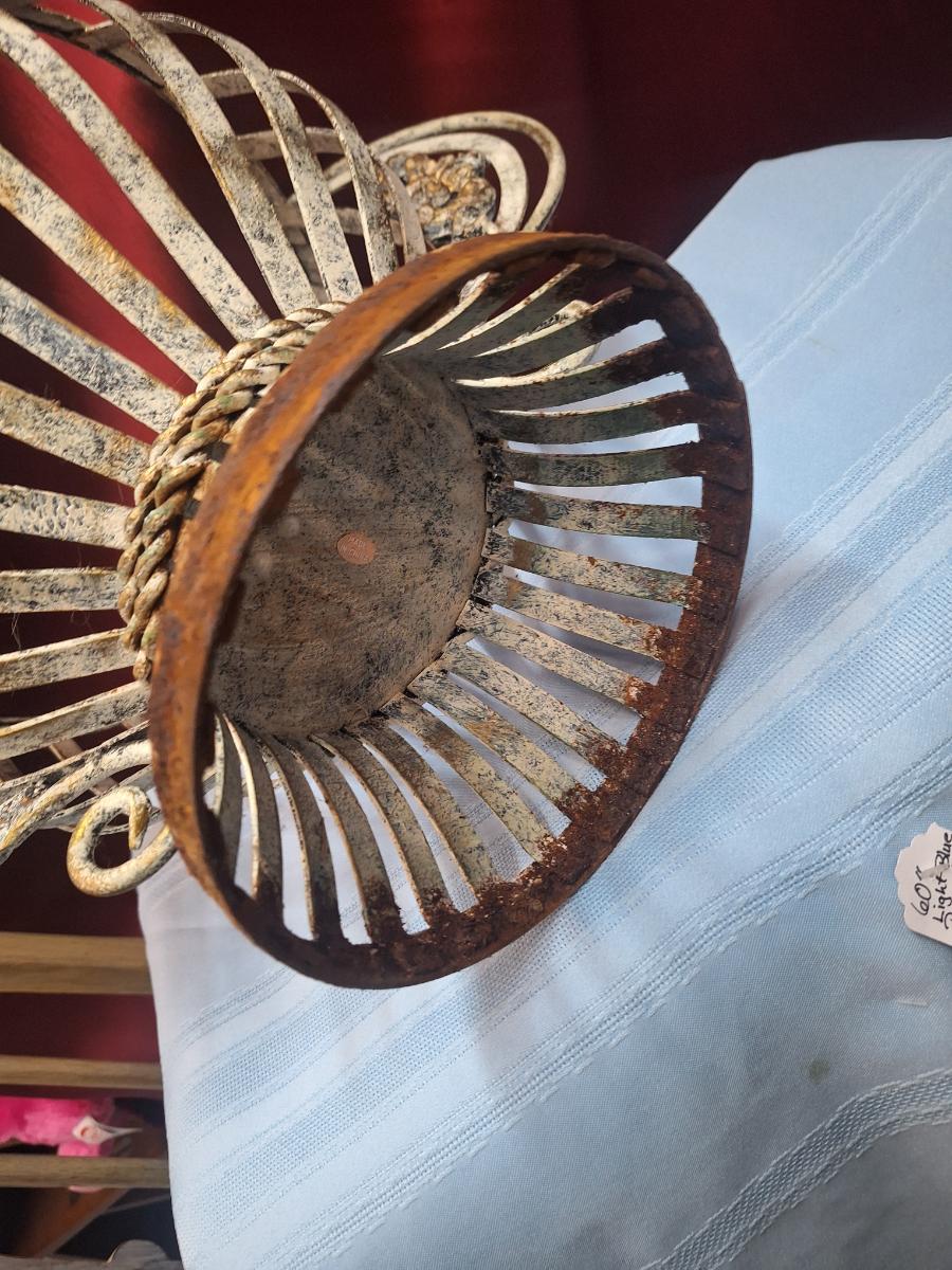 rusty mental plant stand for a large pot. A hanging plant would look amazing in this.