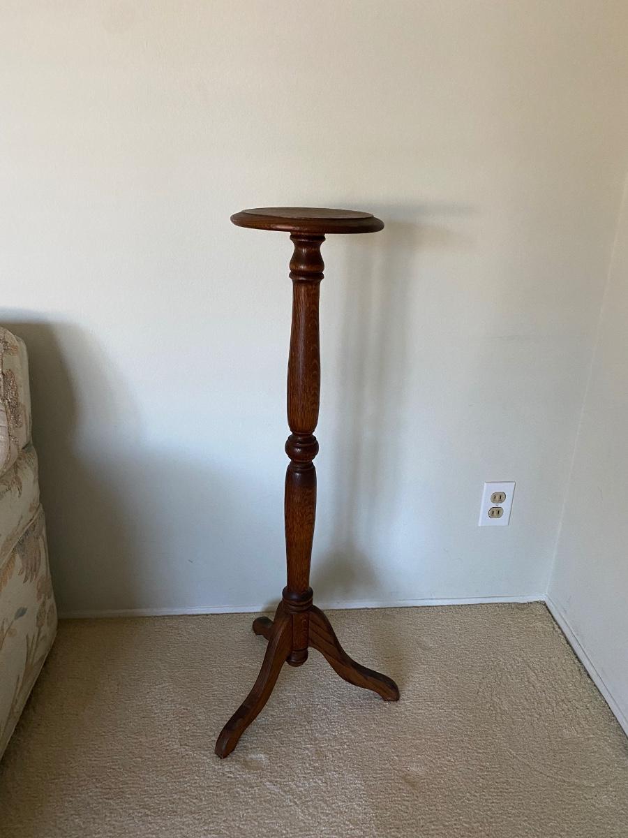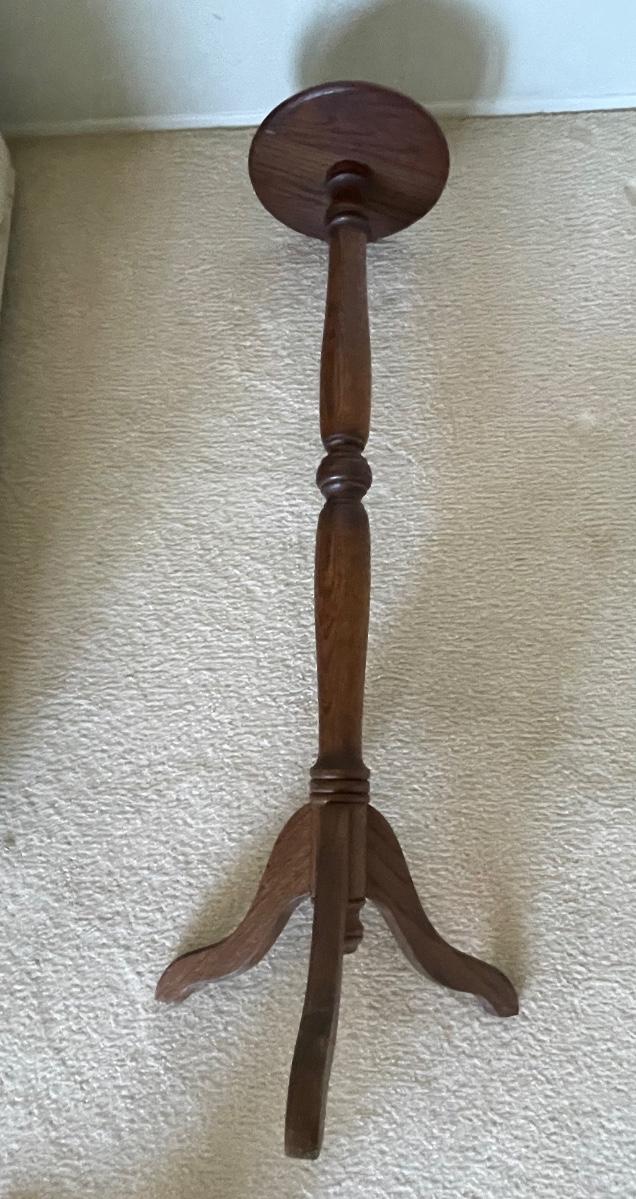 Spindel Style Wood Three Leg Plant Stand Table. About 3’ height.