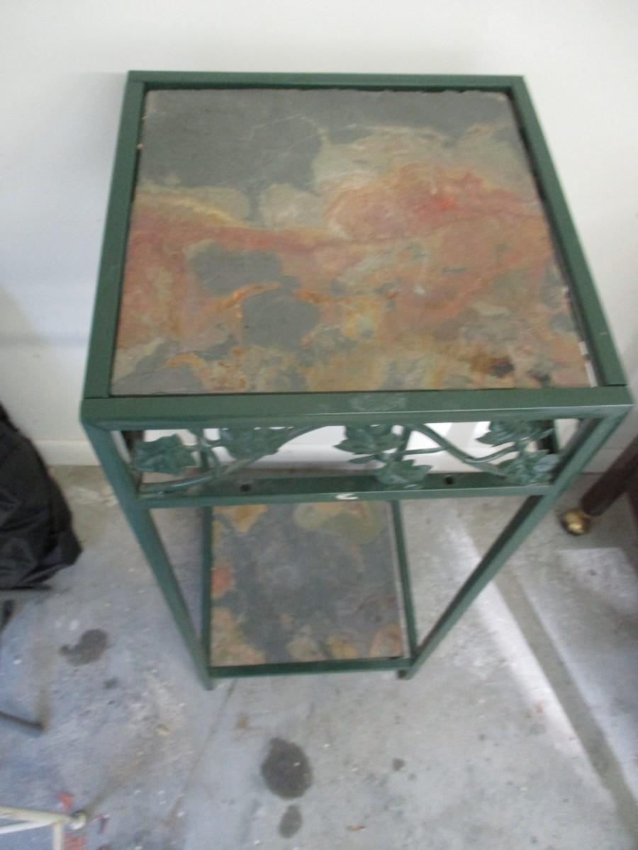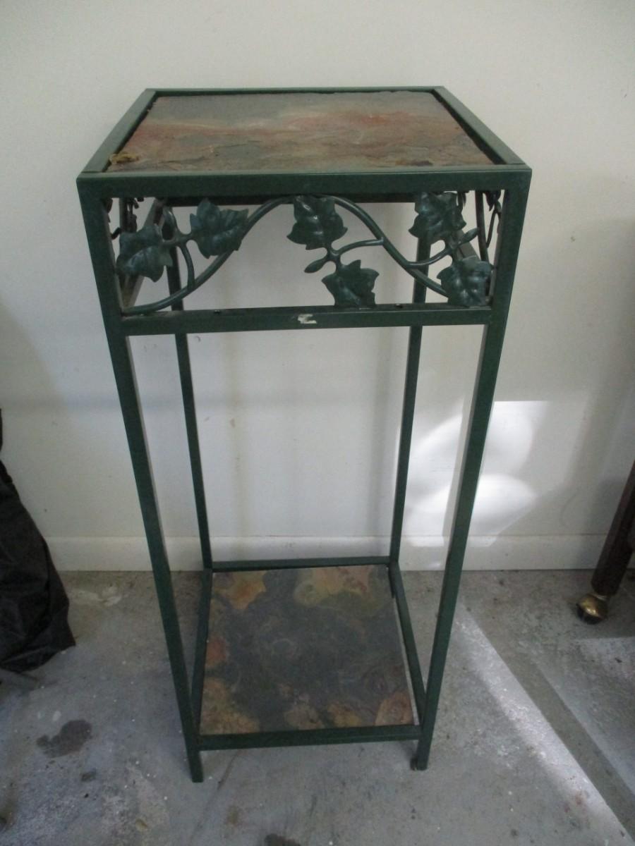 Metal Plant Stand with Inlaid Tile Top- Approx 13 1/2" Square, 34" Tall