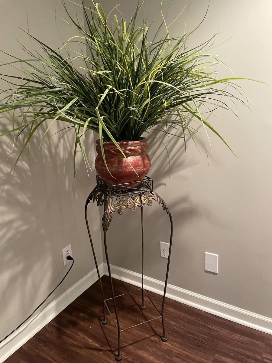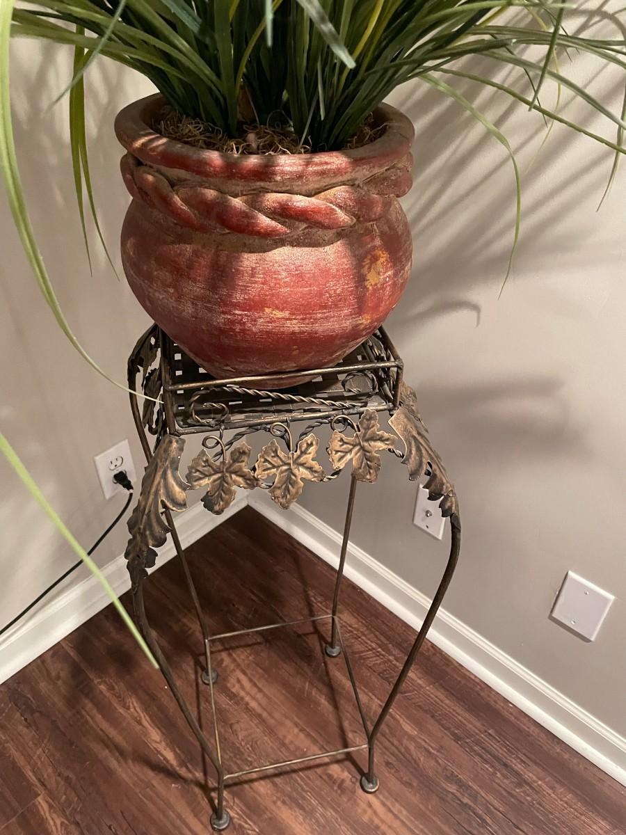 Plant Stand, Clay Pot, Artificial Plant. Plant stand is 38'T x 13" x 13"