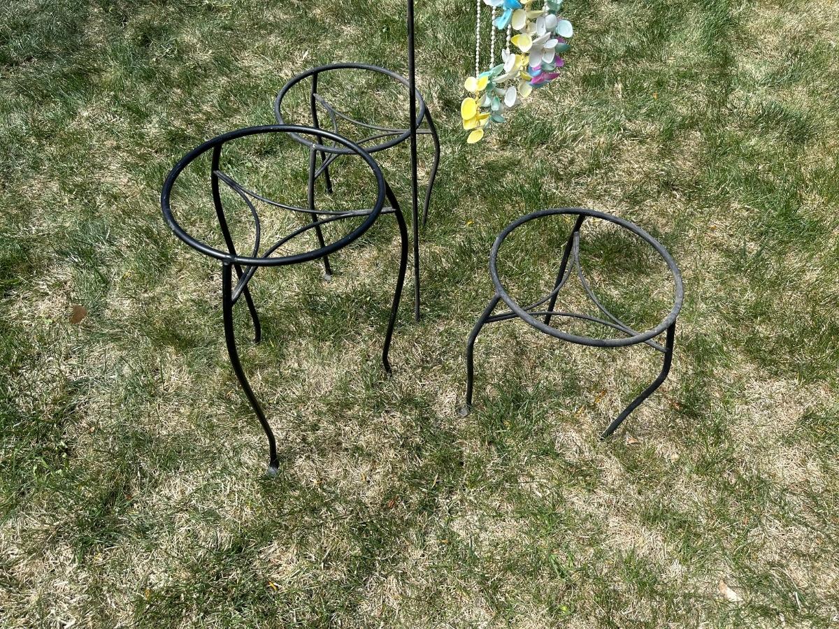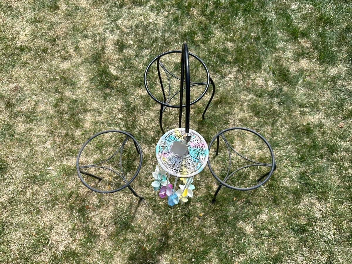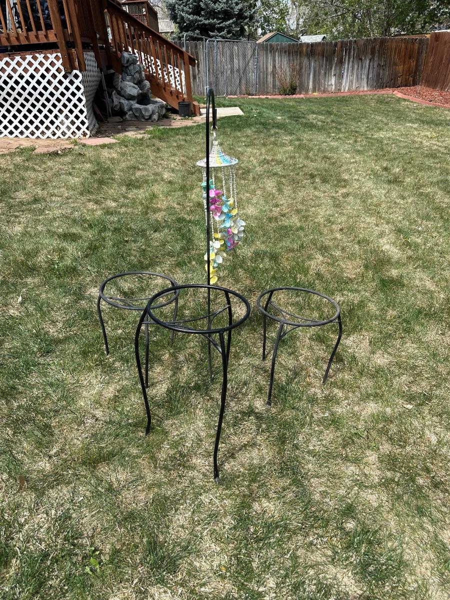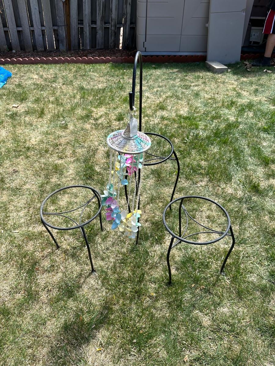 PLANT STANDS, SHEPHERD HOOK AND WINDCHIME