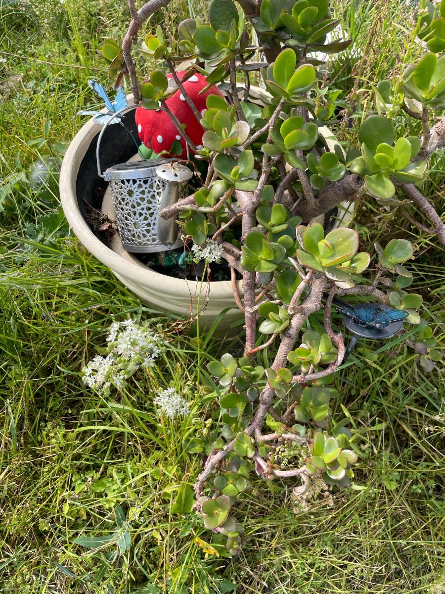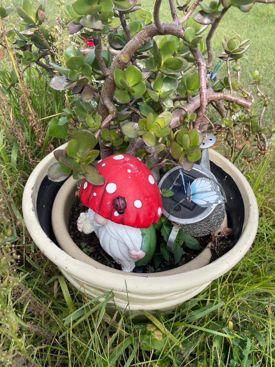Plant with gnome decor