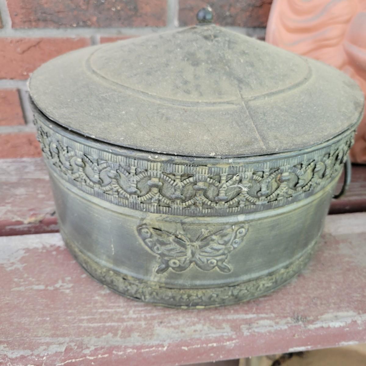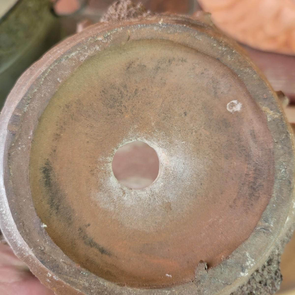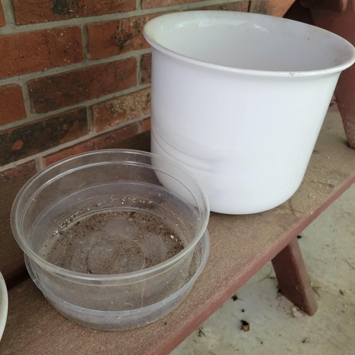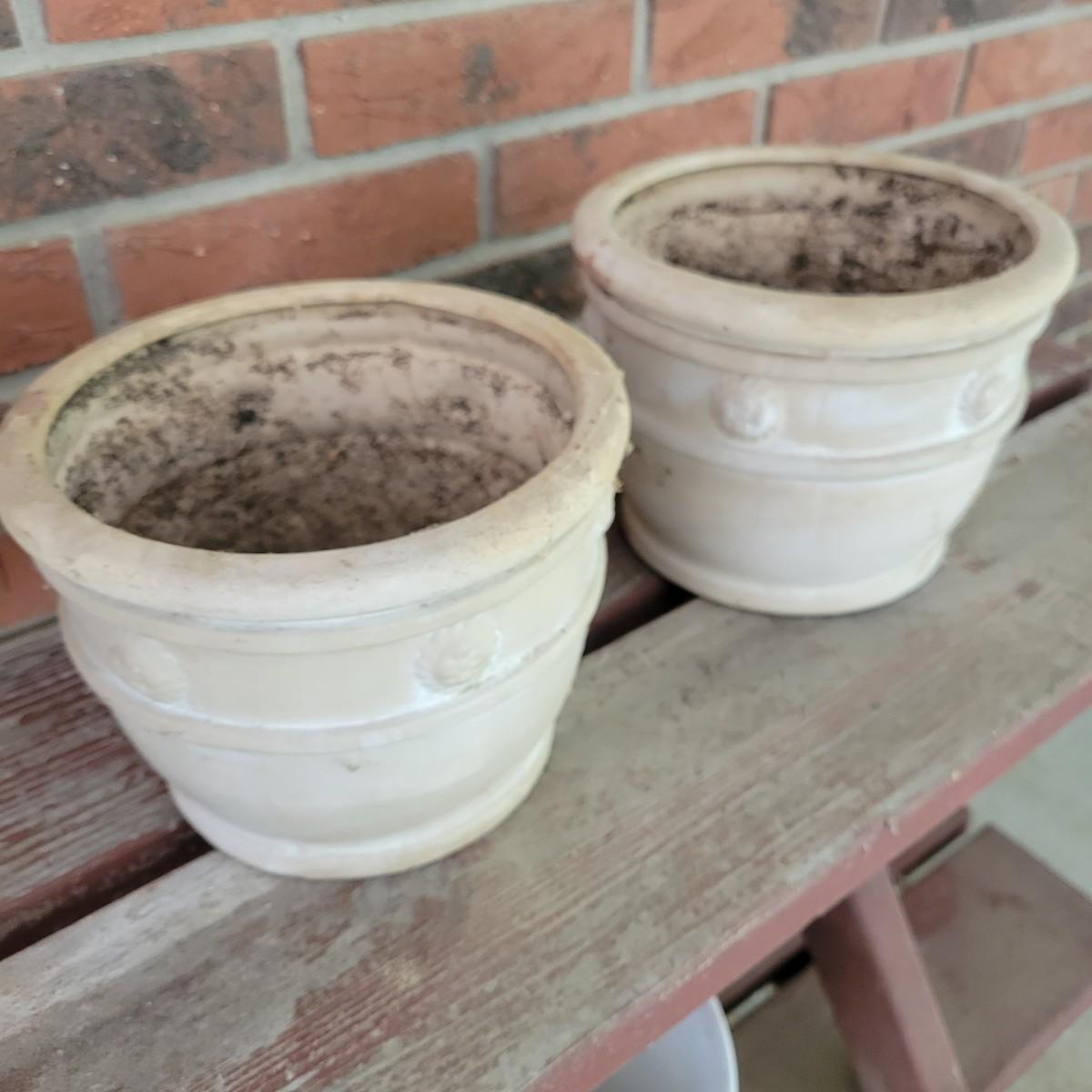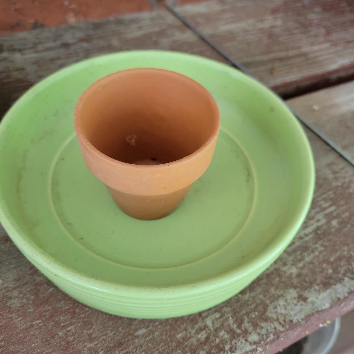 An assortment of planters, all of which is terracotta or ceramic, except for one piece that is metal. This lot also includes a terracotta sun and a small dragonfly. The decorative metal planter measures approximately 12"D x 7"H. Local pickup only