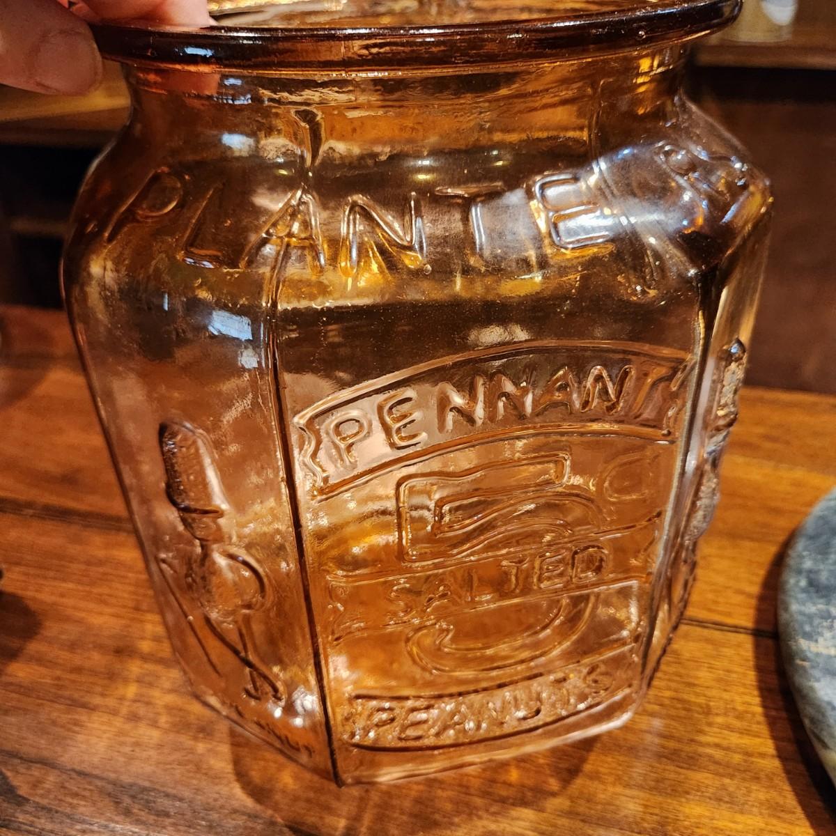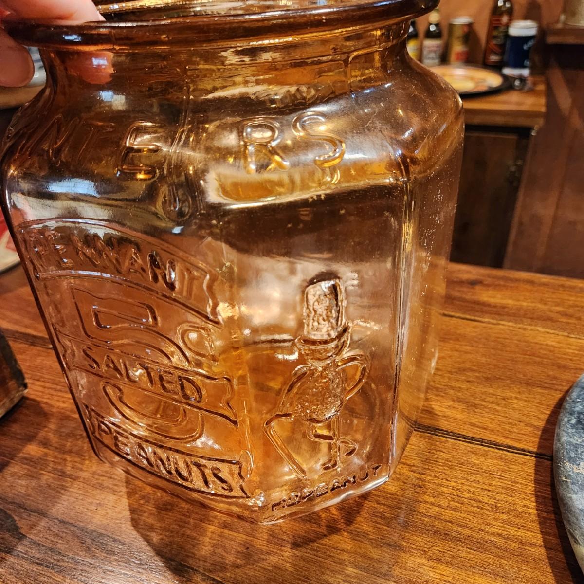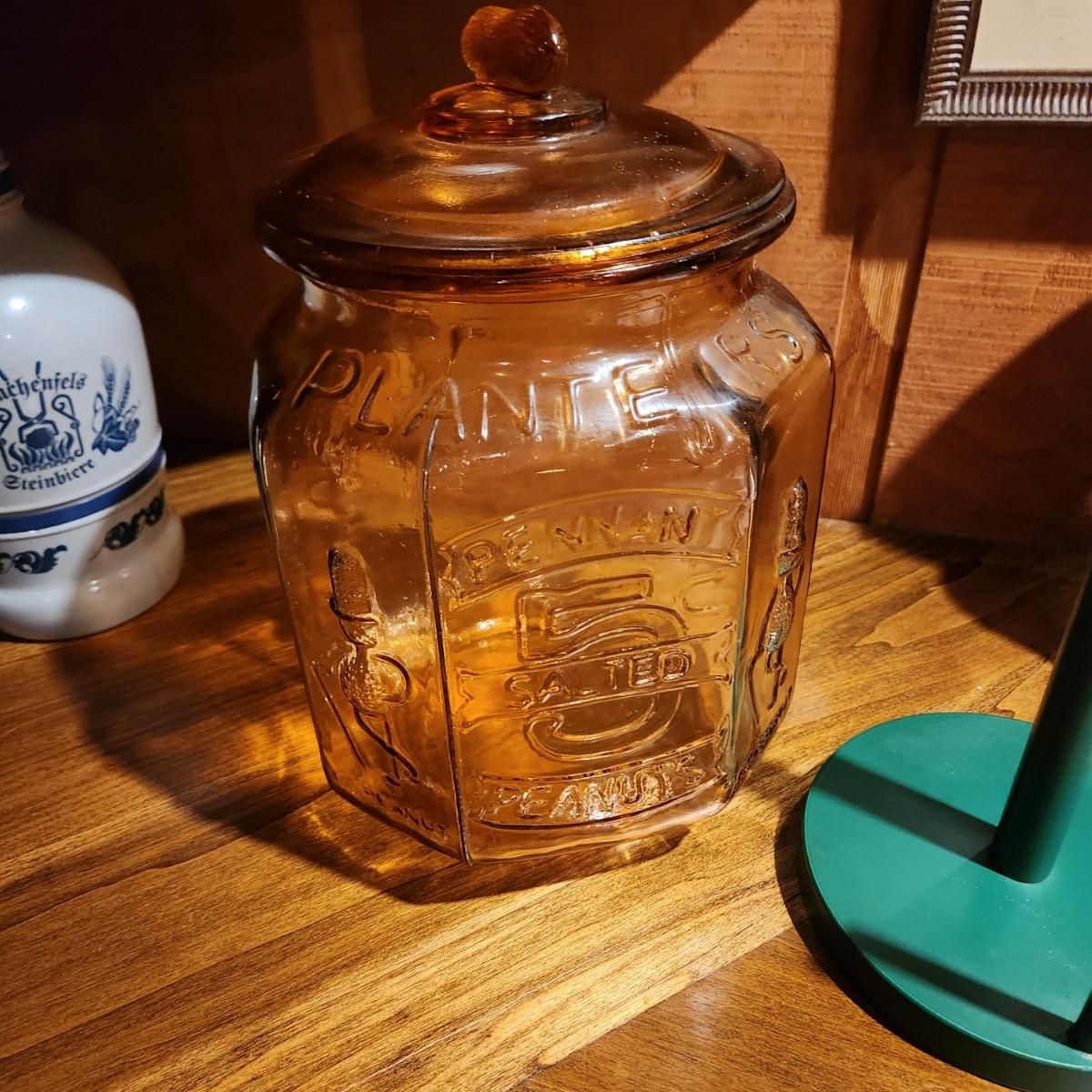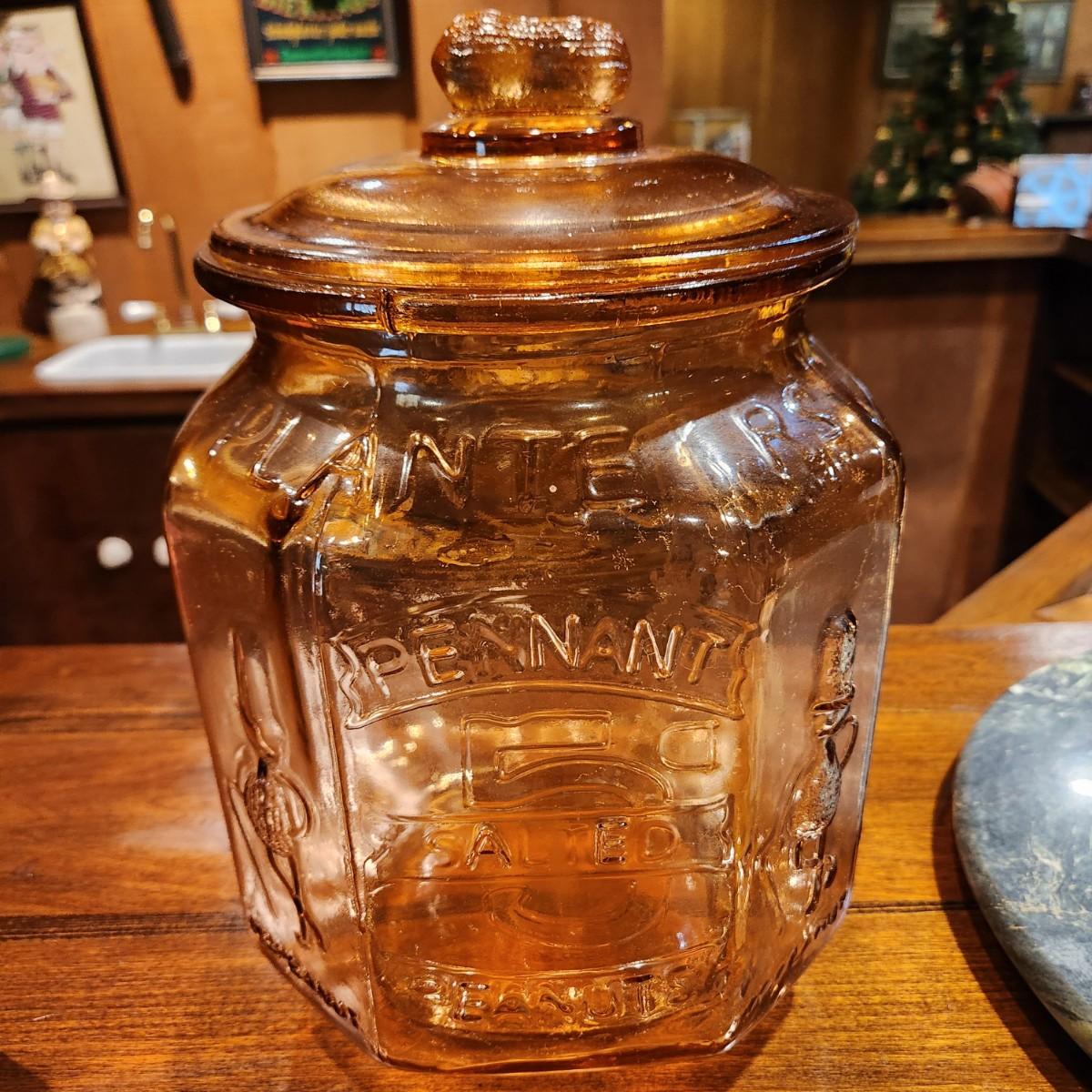Planters Peanuts 5 cent Depression Era Glass Canister w Lid