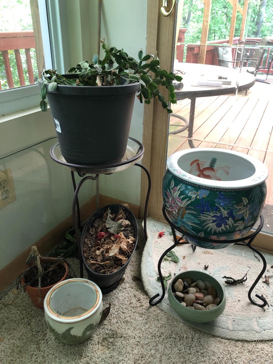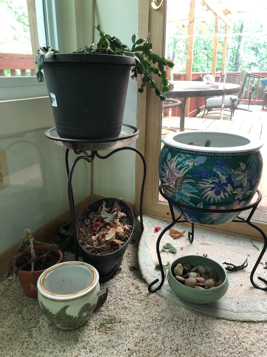 We have added many quality photos for each lot showing content, condition, & dimensions. Feel free to e-mail or text any questions. All items are sold as is, as found in the estate. Please see all photos for content, measurements and condition. Plants need TLC!