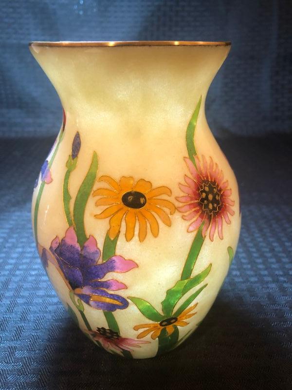 Beautiful William Yee Plique-A-Jour cloisonné vase. Patent no. 6238756